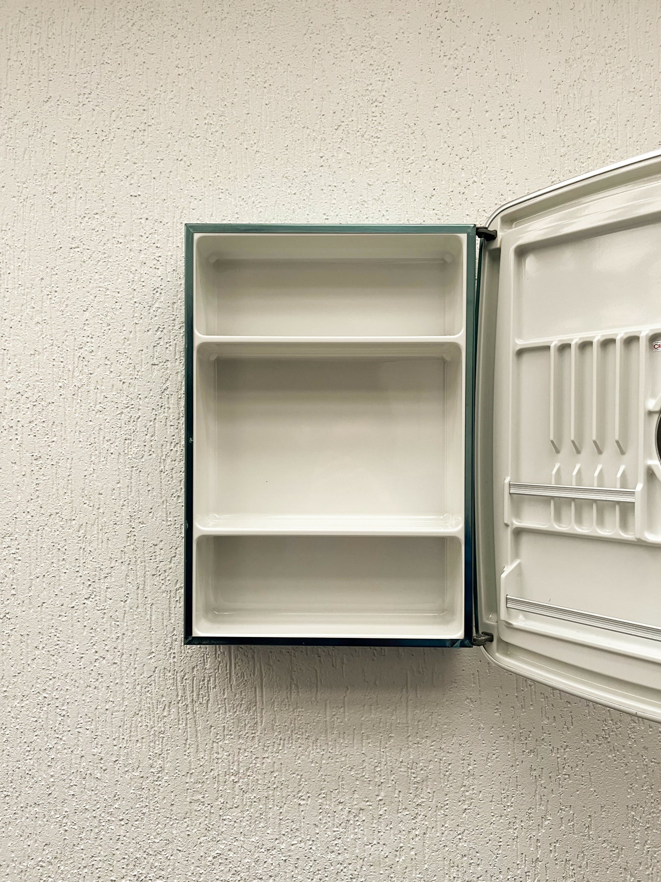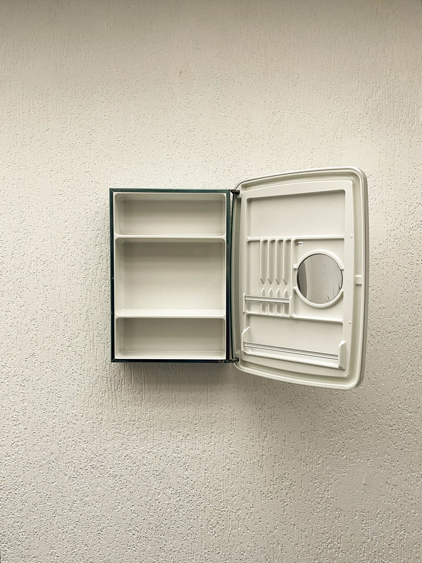 Modelo Cris Titan Silver, é um armário de parede vintage em metal.