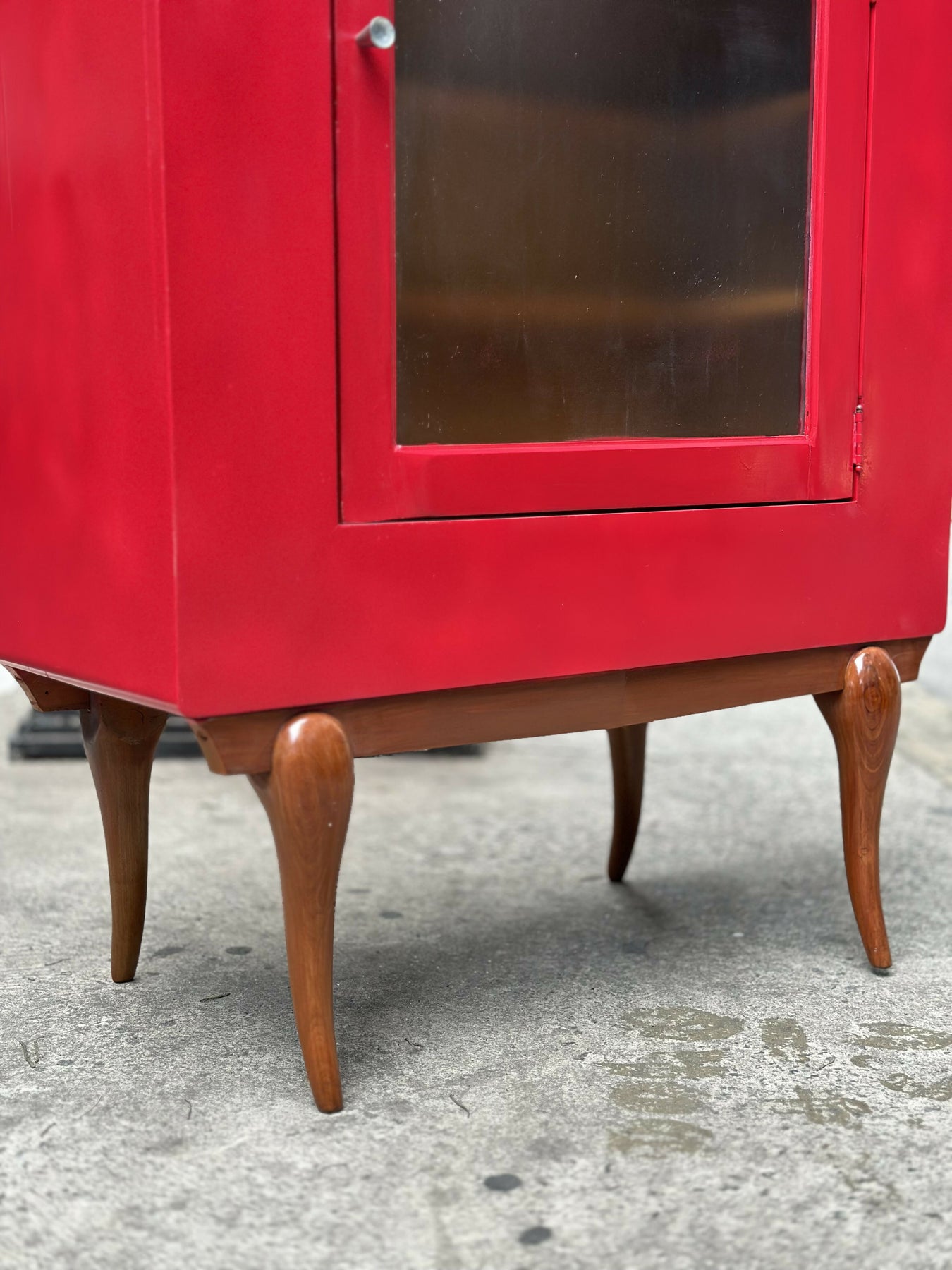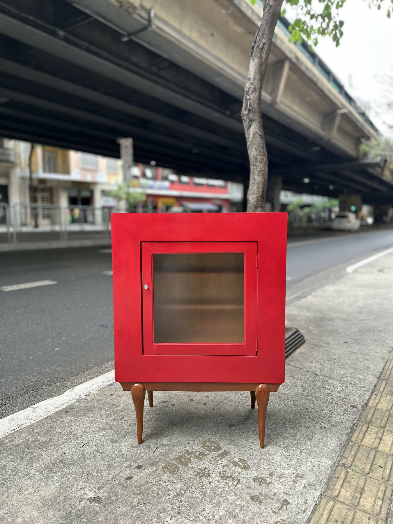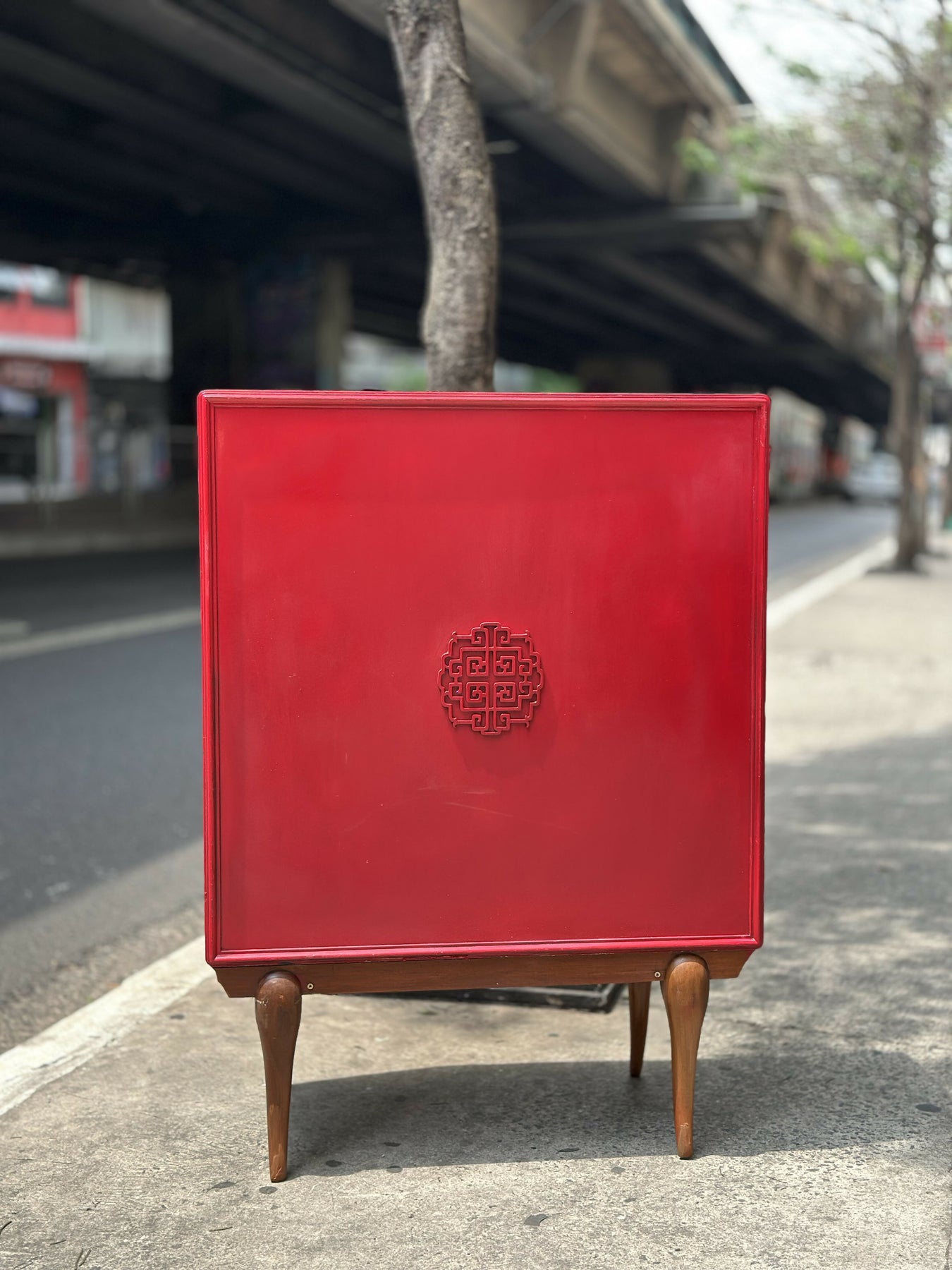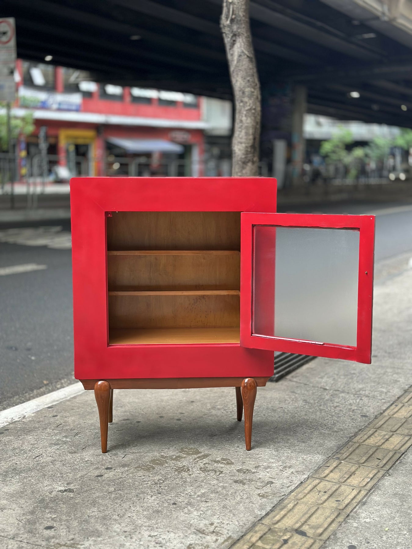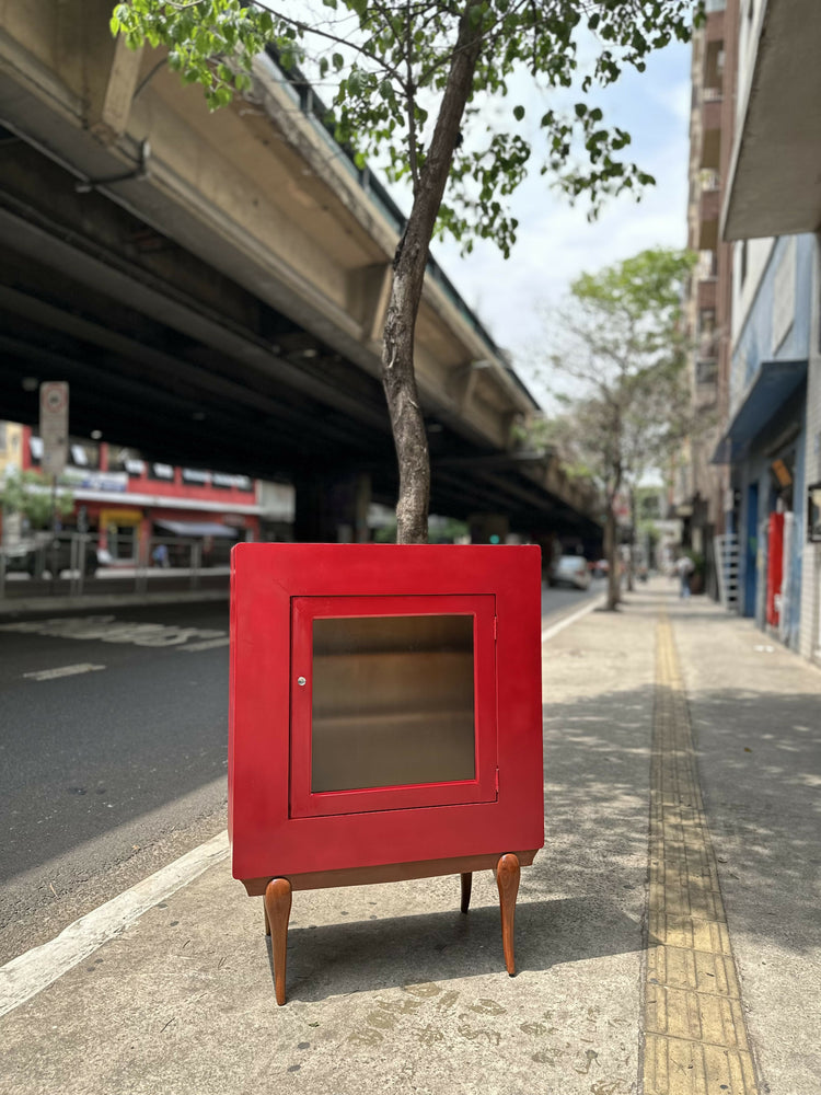 Em madeira com pintura acrílica vermelha e base em Caviúna.