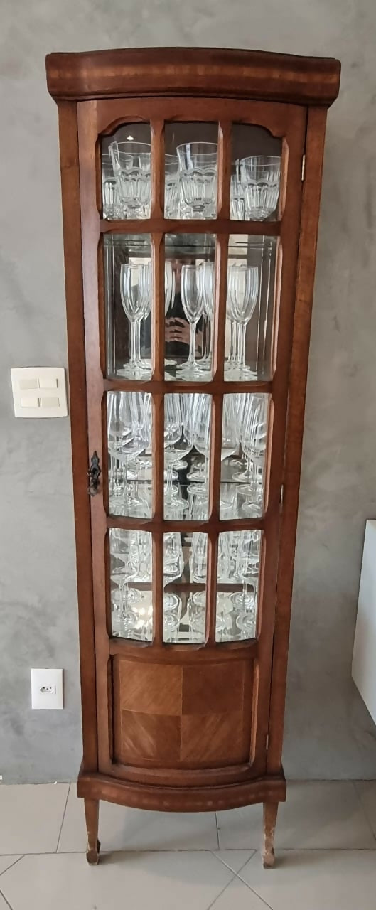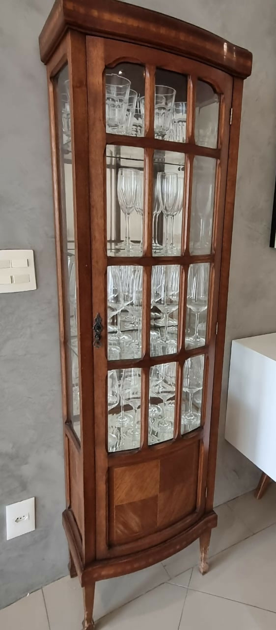 Cristaleira antiga com vidro bisotado e Marchetaria