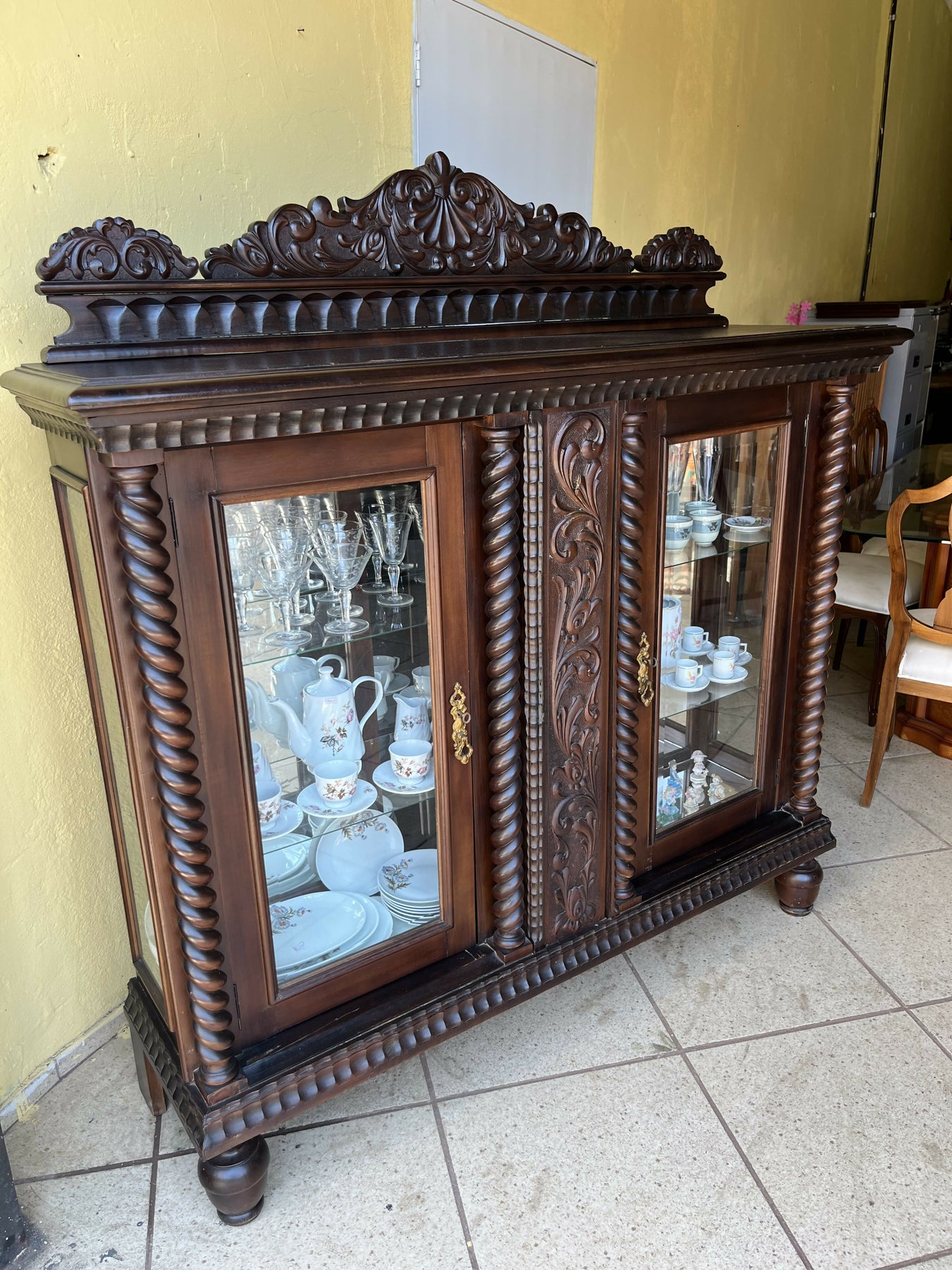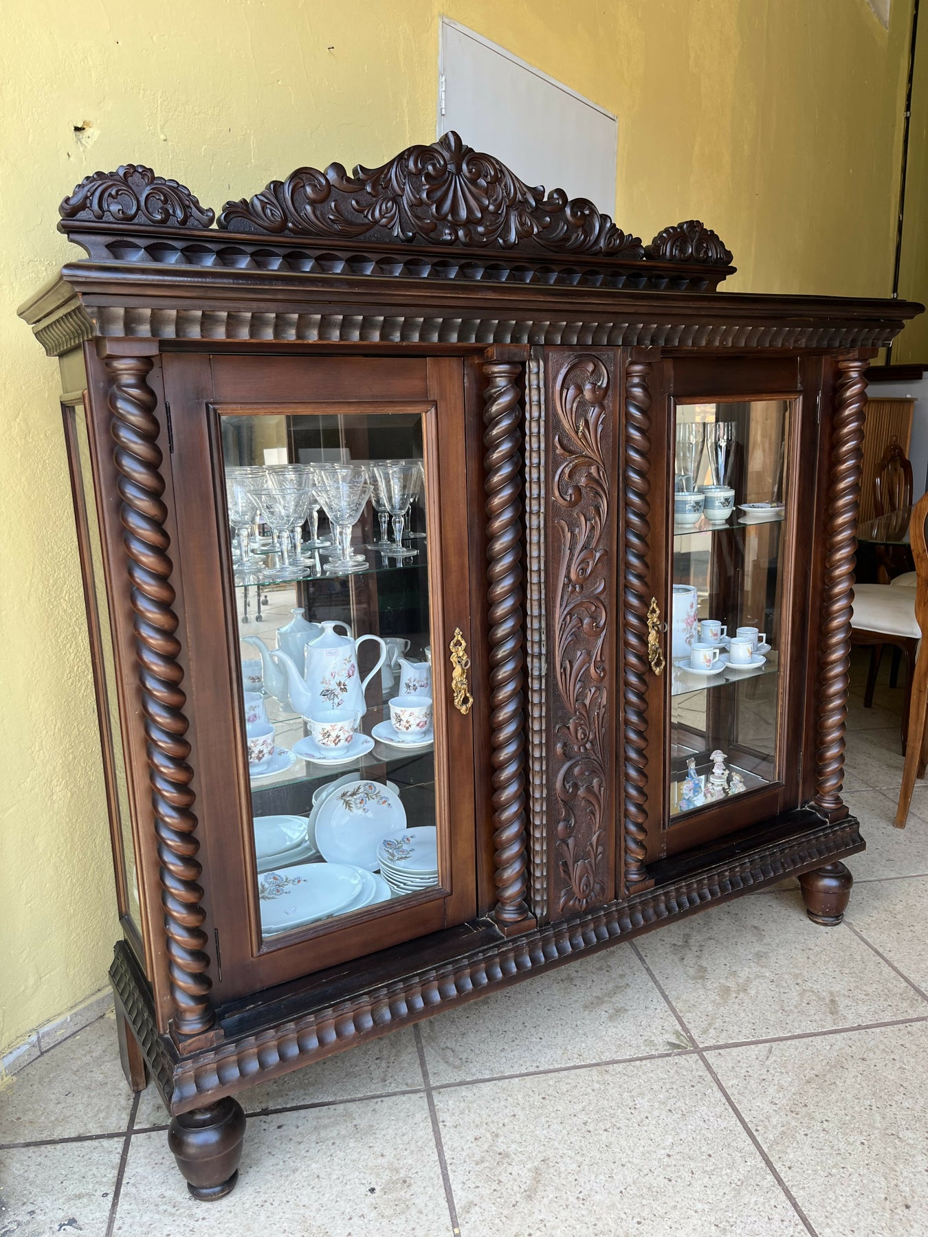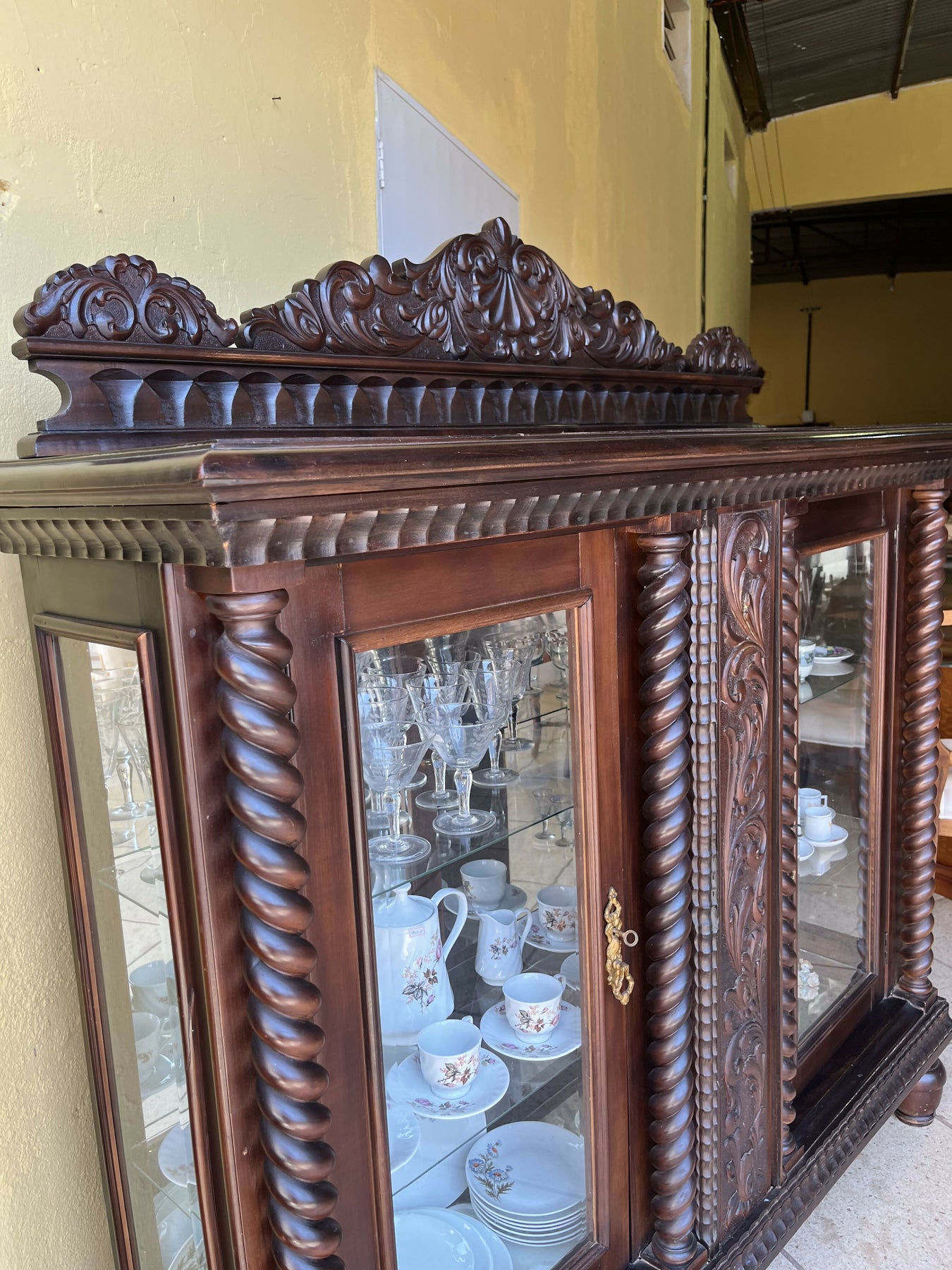 CRISTALEIRA GRANDE MANUELINO EM PERFEITO ESTADO COM VIDRO BISOTÊ