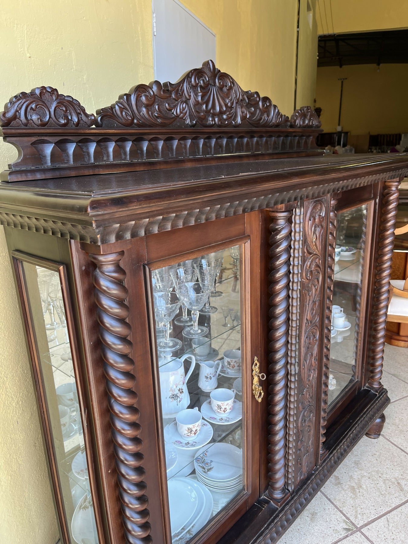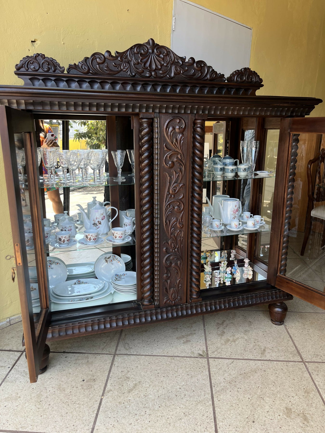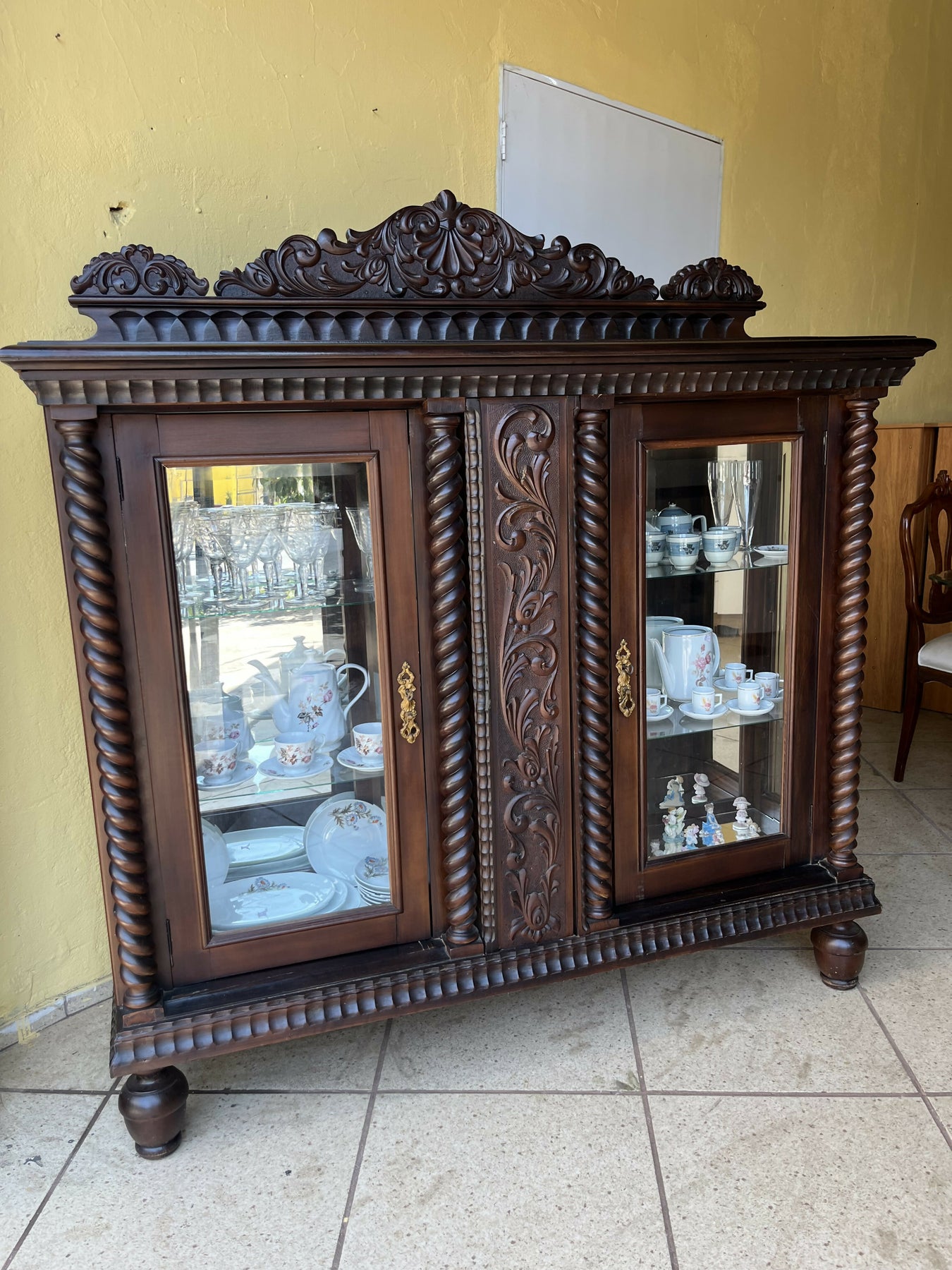 CRISTALEIRA GRANDE MANUELINO EM PERFEITO ESTADO COM VIDRO BISOTÊ