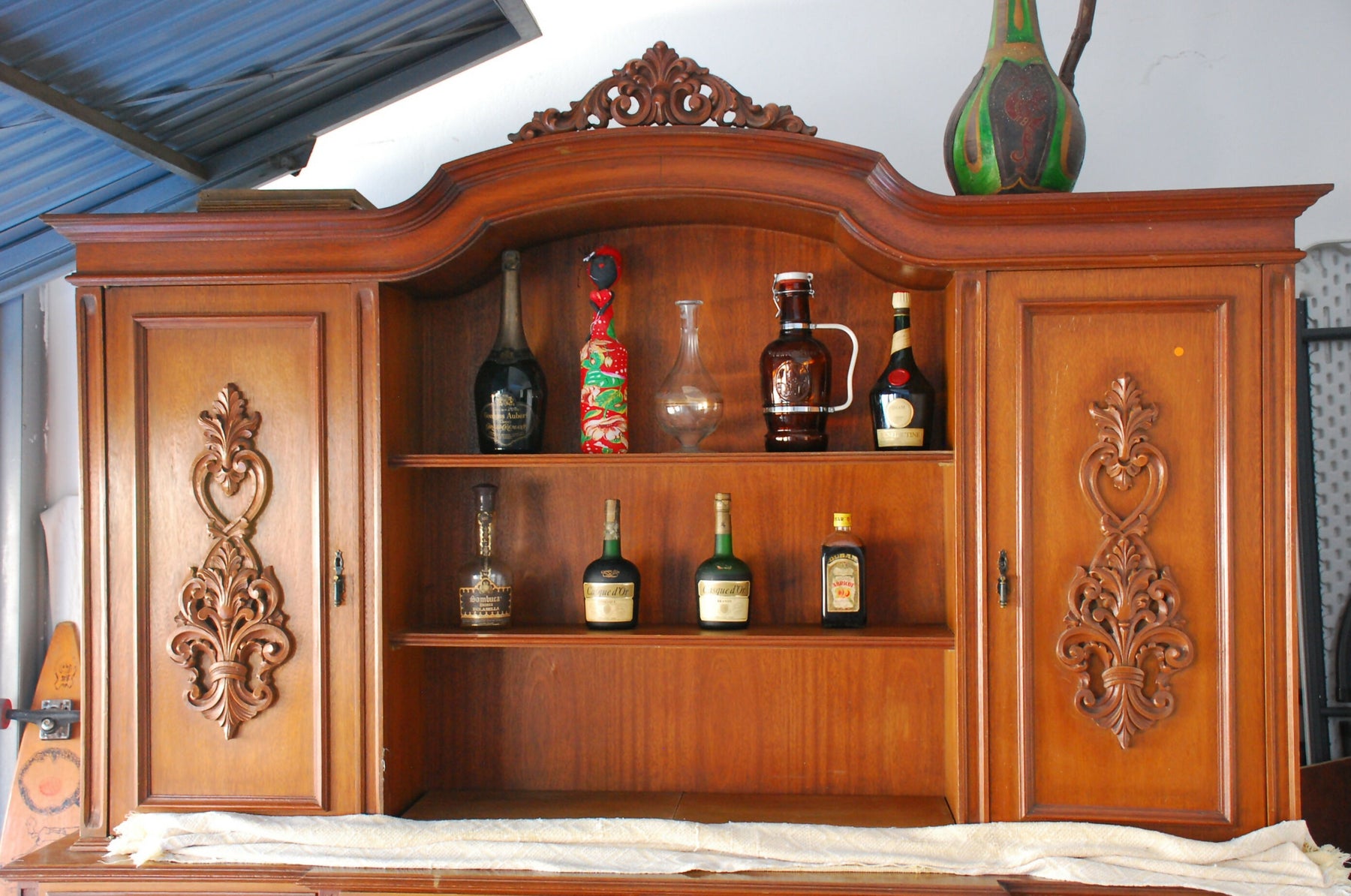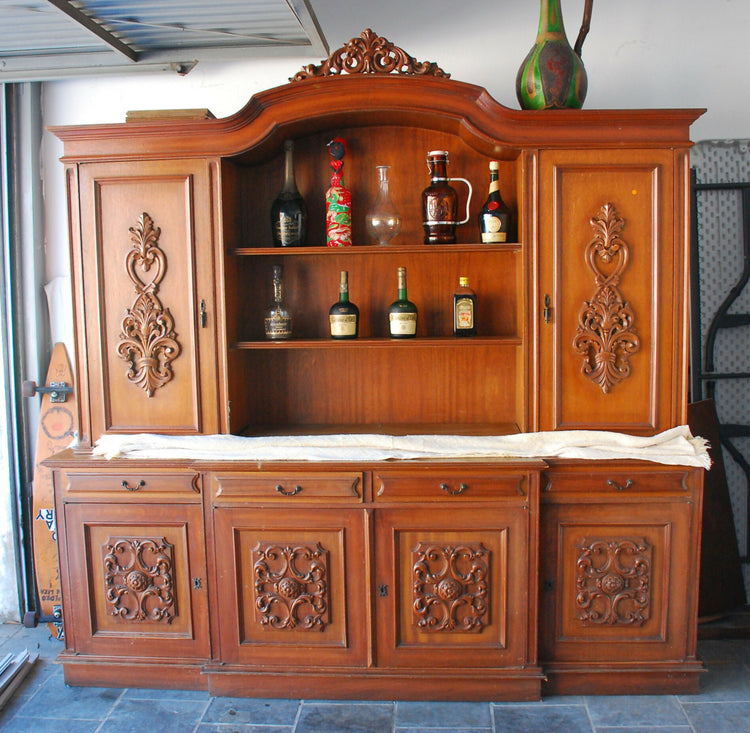 estante , anos 80 , madeira e laminado imbuia , 2,20 x o,80 altura -2,15 x 1,40 . marcas do tempo
