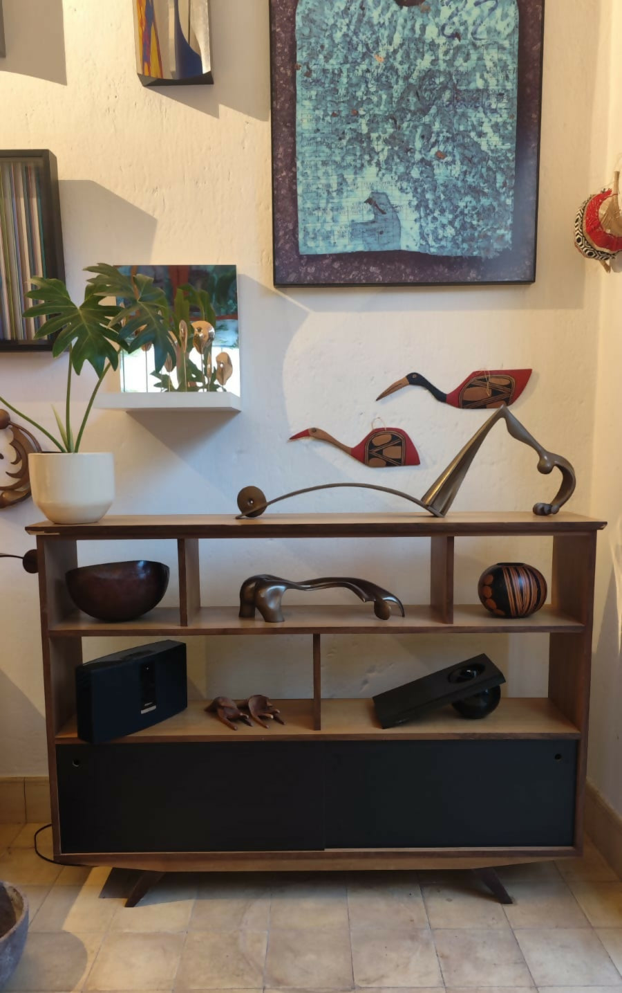 ESTANTE DESMOBILIA em madeira e fórmica preta