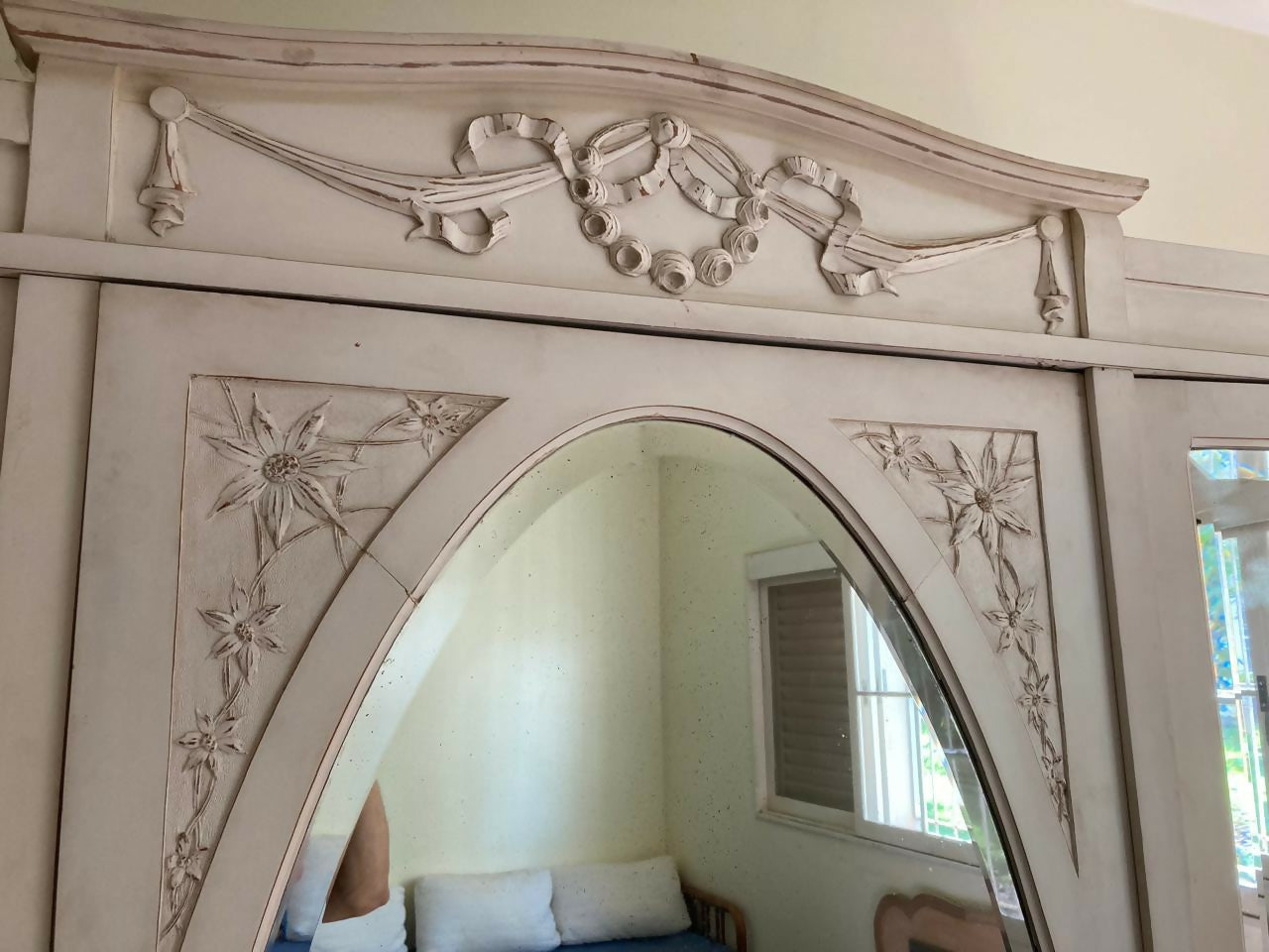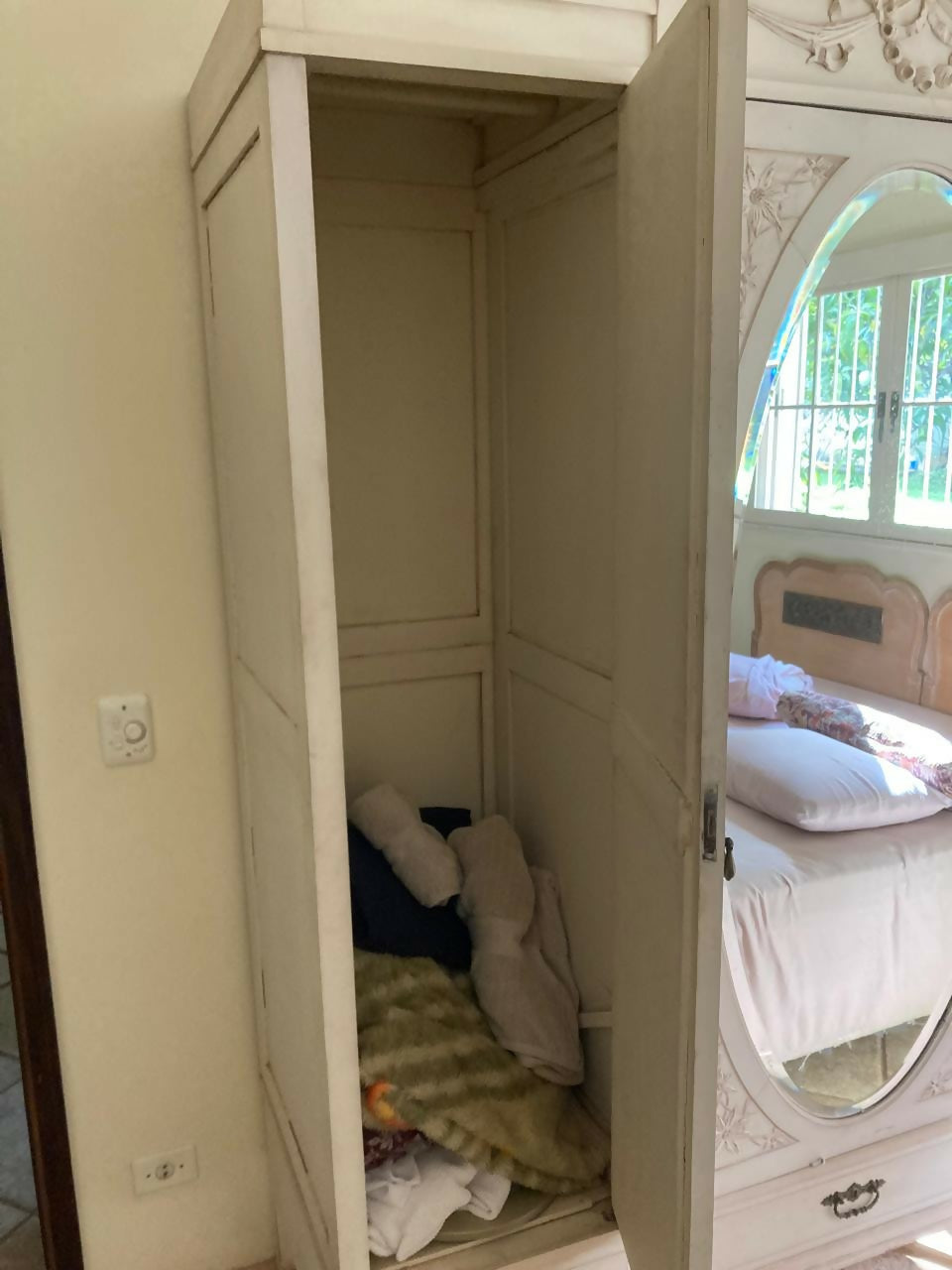 guarda roupa  de madeira de lei antigo sem dobradiças e espelho bisotê 3 portas 2,50x2,00x0,60.