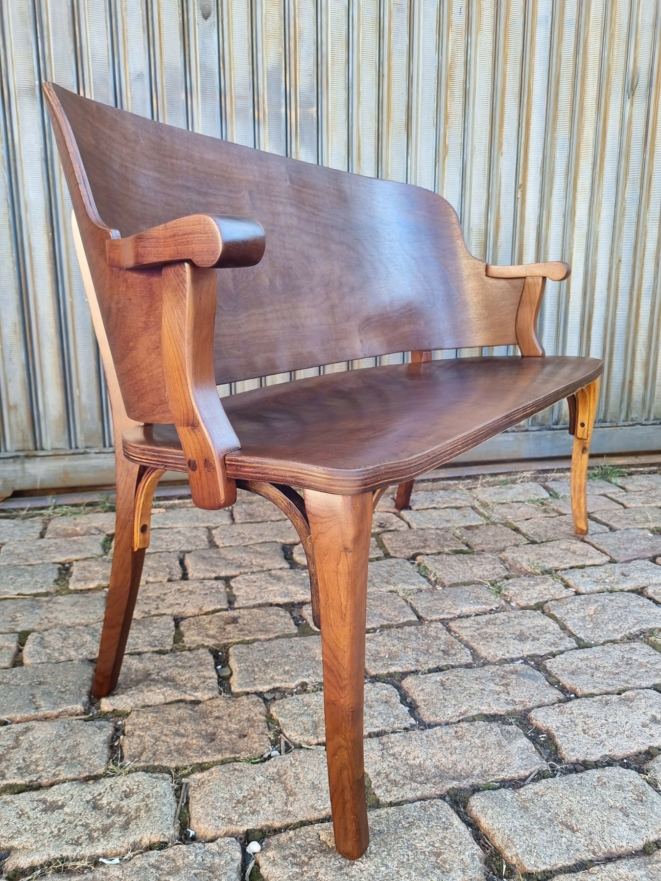 Raro banco móveis Cimo anos 1950, estrutura em madeira imbuia e compensado naval curvado. Restaurado e disponível para venda! D-122cm L x47cm P x84cm A