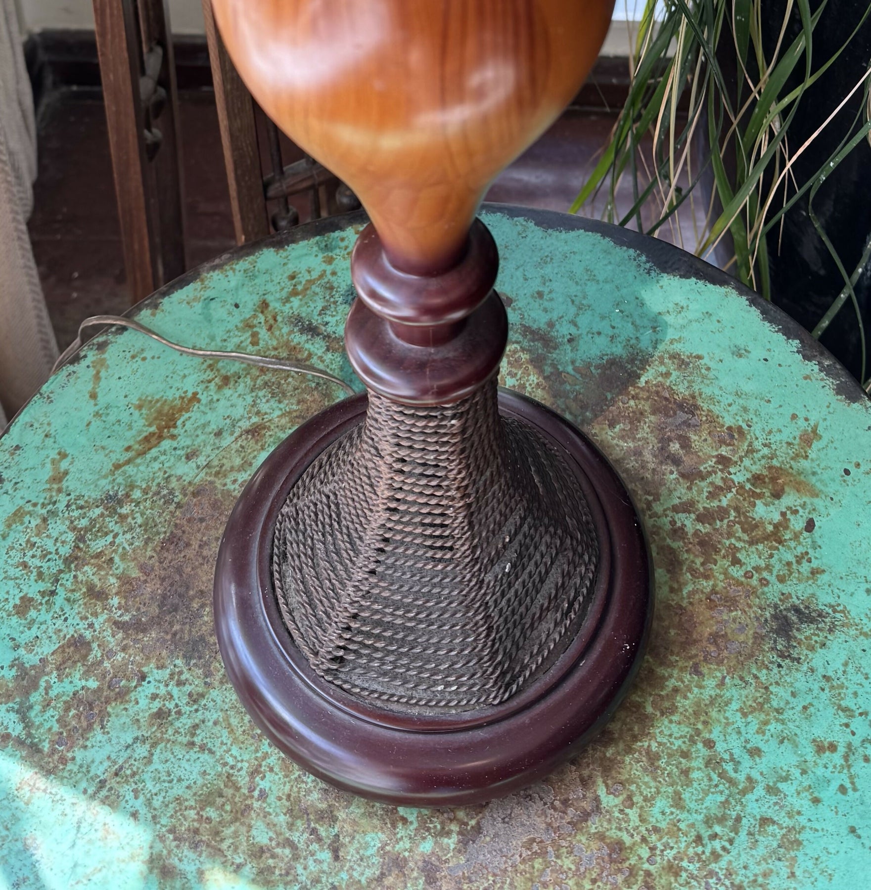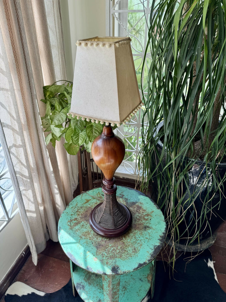 Anos 60 - Abajur luminária de madeiras nobres e cúpula vintage