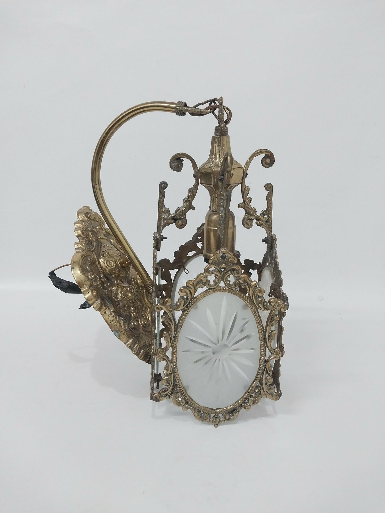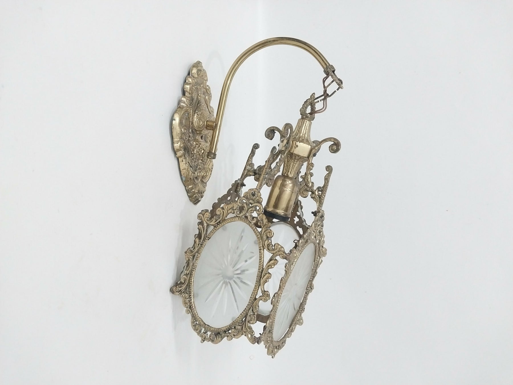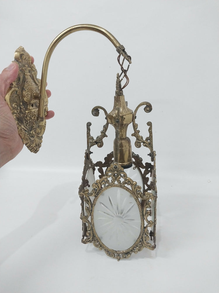Arandela grande em bronze e vidro lapidado, excelente estado! 40x26x13 cm.