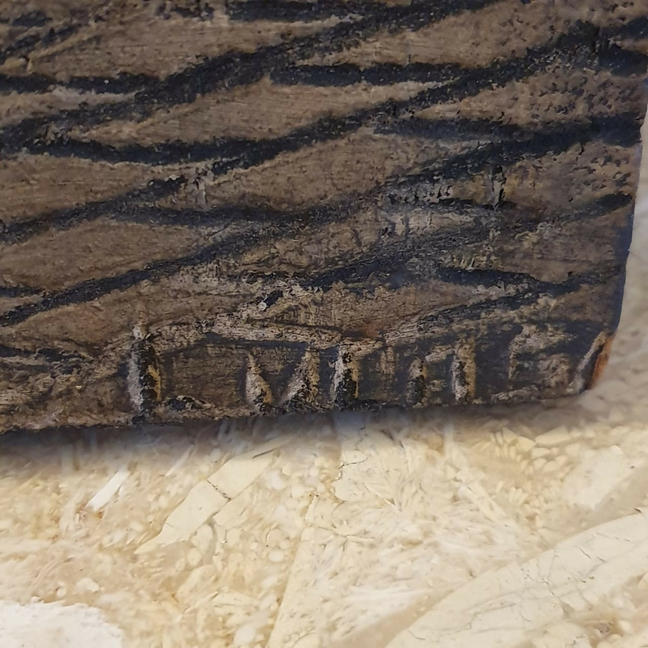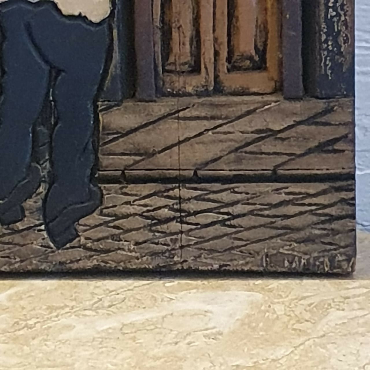 Incrível placa em madeira entalhada ricamente decorada. Linda policromia. Assinada.