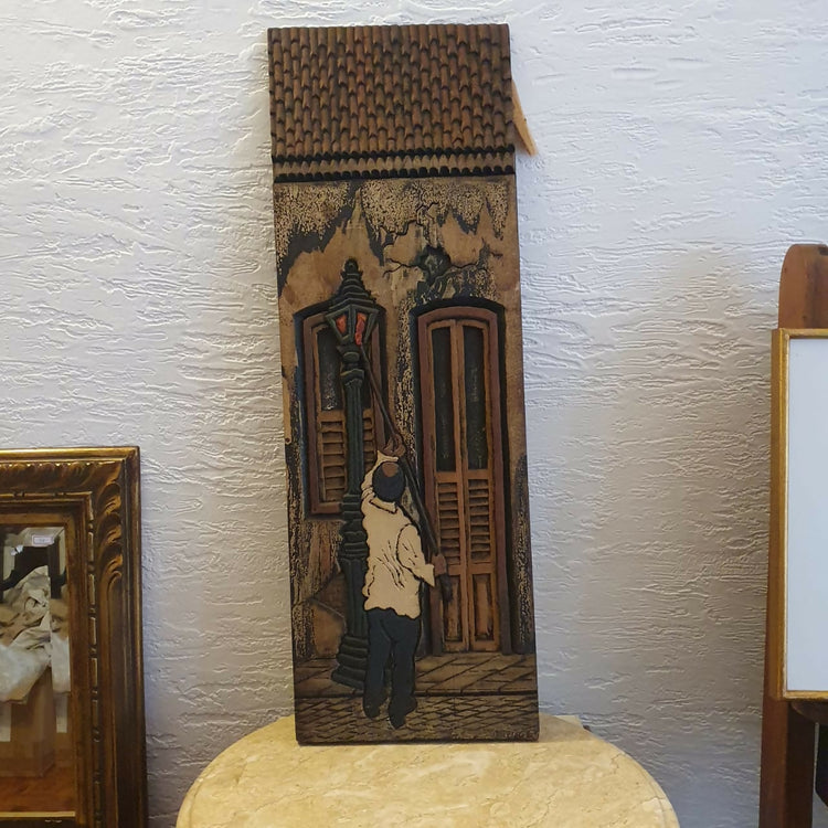 Incrível placa em madeira entalhada ricamente decorada. Linda.