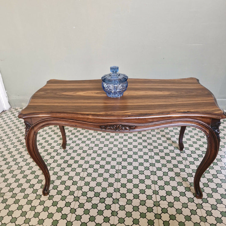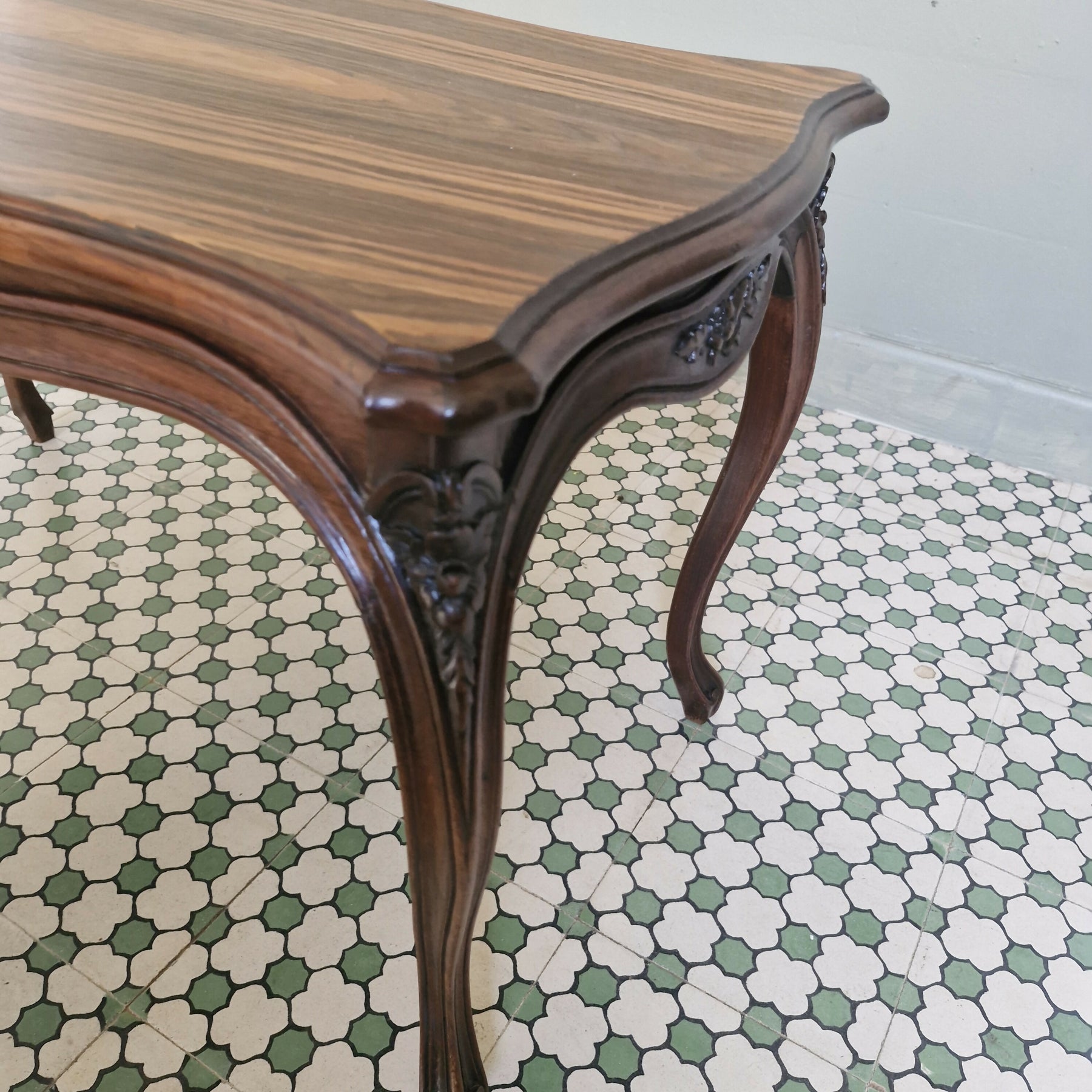 Belíssima mesa de centro estilo chipandelle commlindos entalhes nas bordas e pés, tampo com lamina de Jacaranda peça restaurada para pronta entrega.