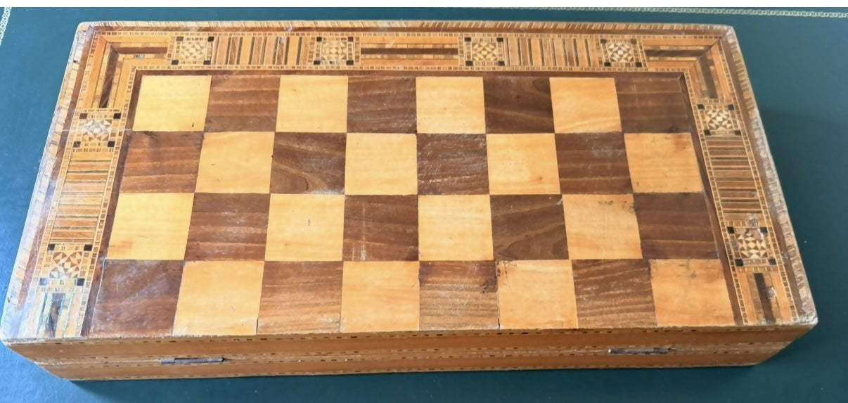 Caixa de xadrez e gamão toda em marchetaria