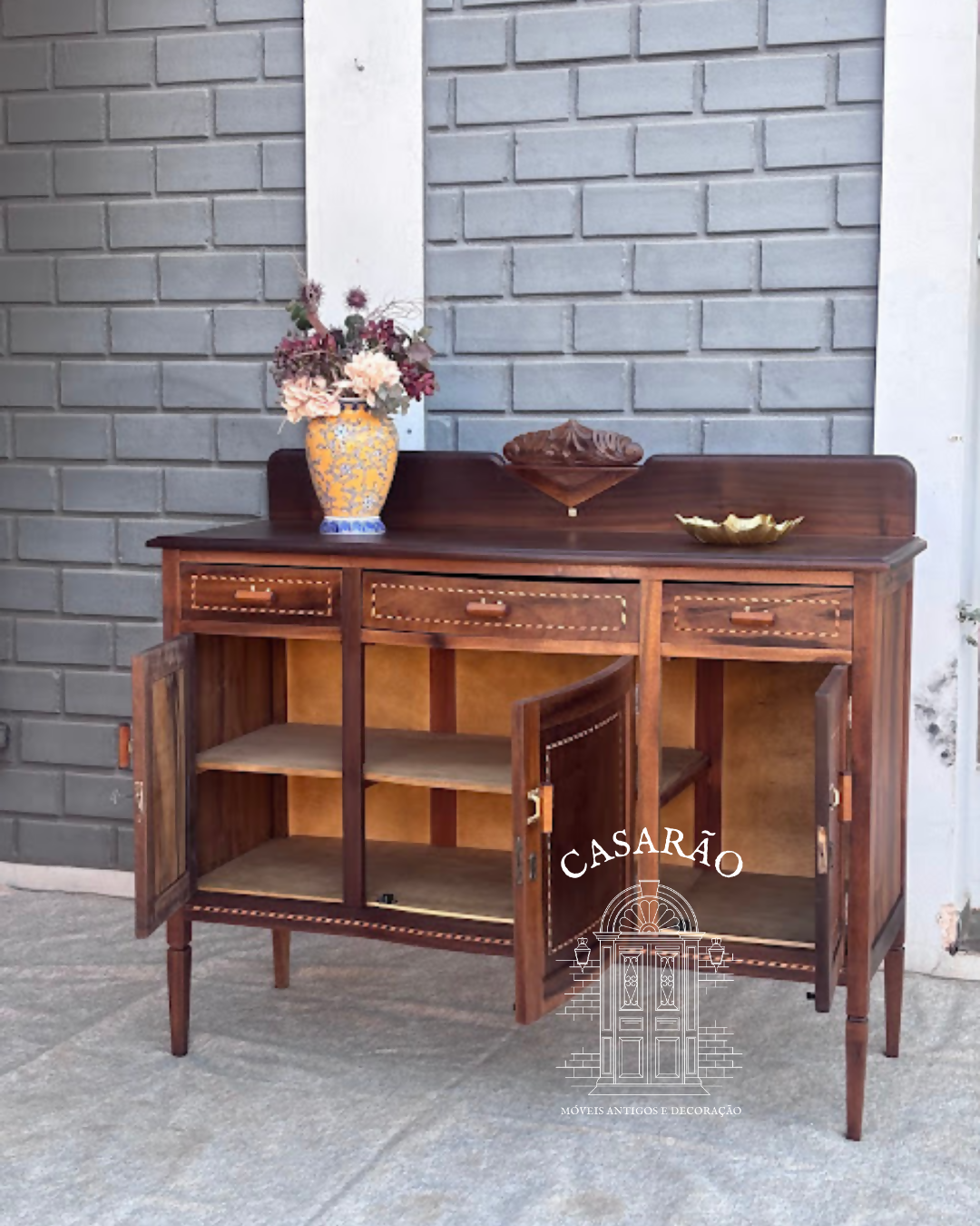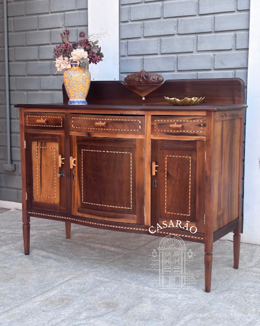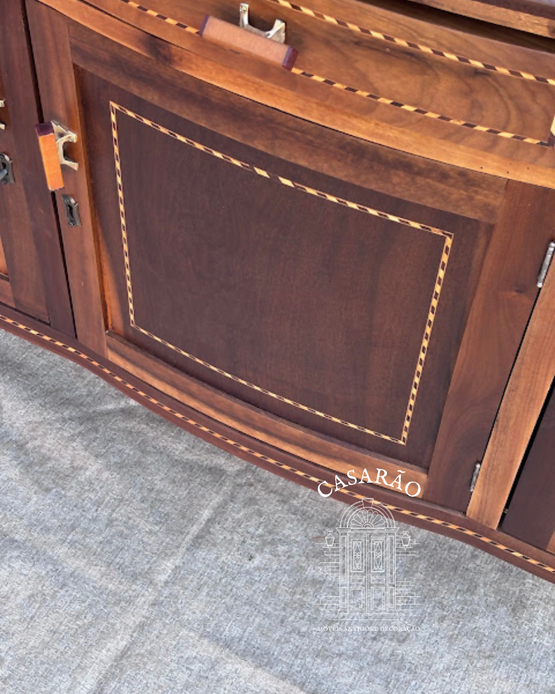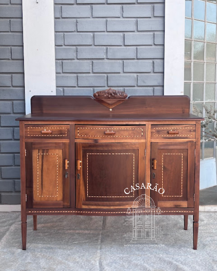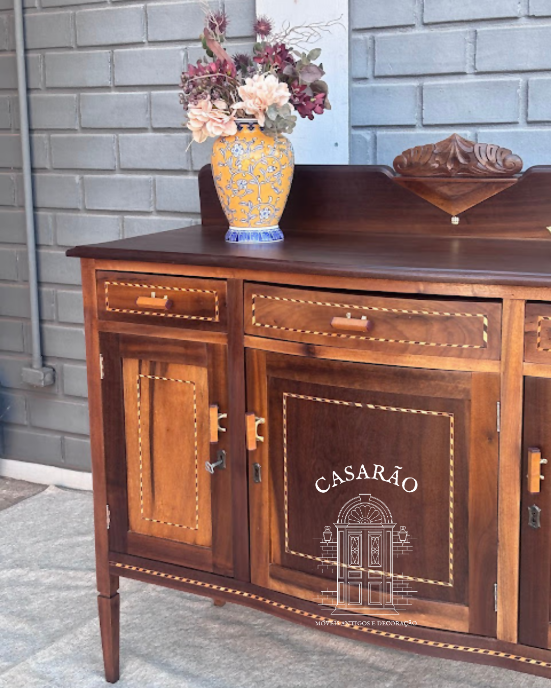 Buffet/ balcão/ aparador madeira imbuia maciça detalhes marchetaria, puxadores original, restaurado envernizado acetinado