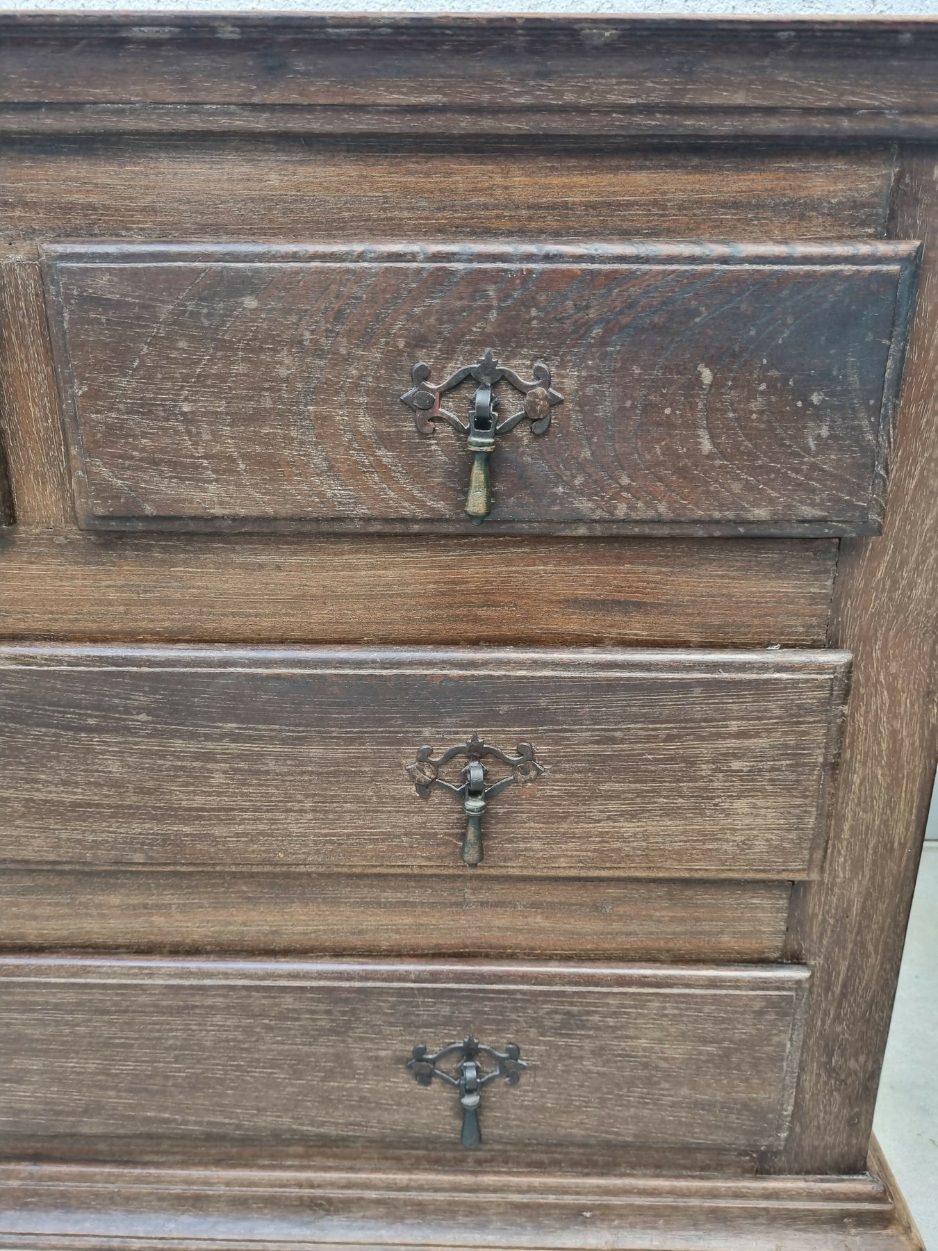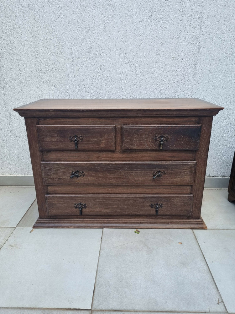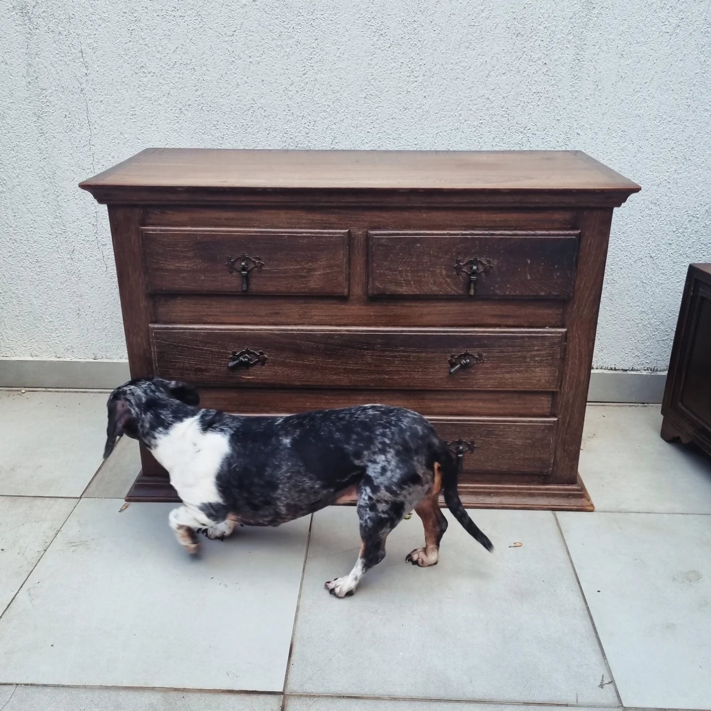 Cômoda em madeira maciça, larga e baixa, ideal para mesas de apoio ou cabeceira.