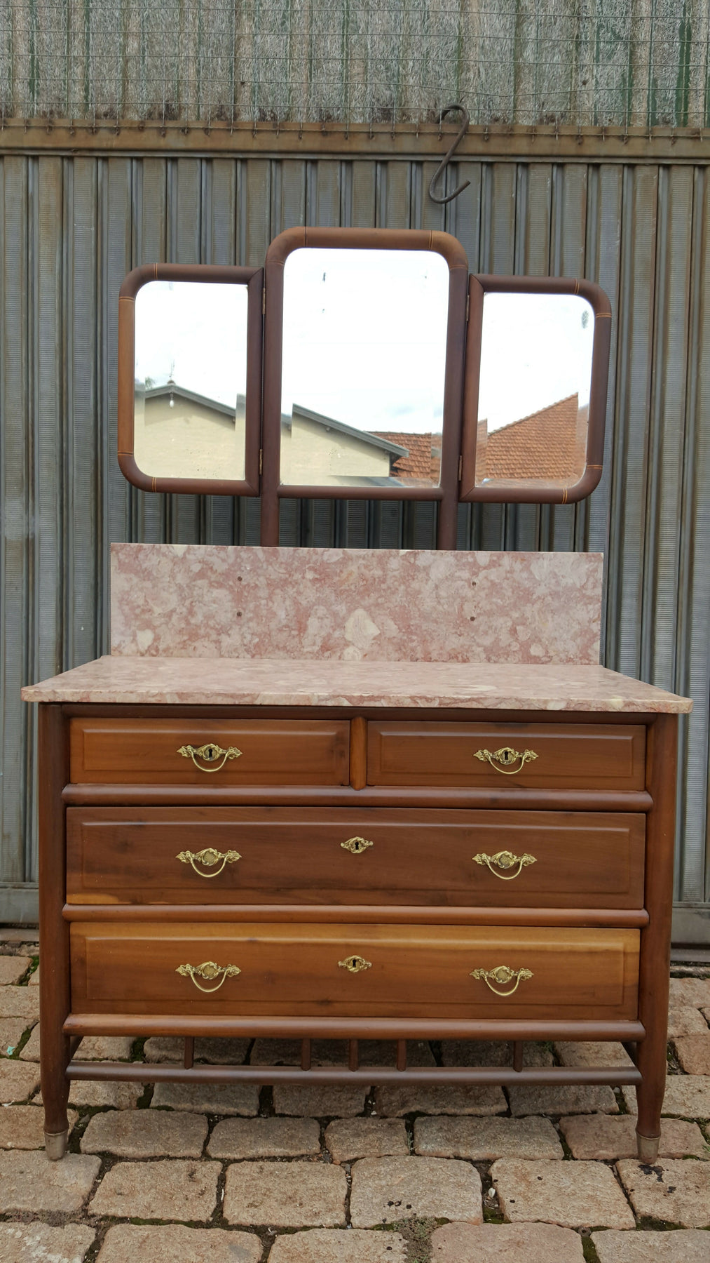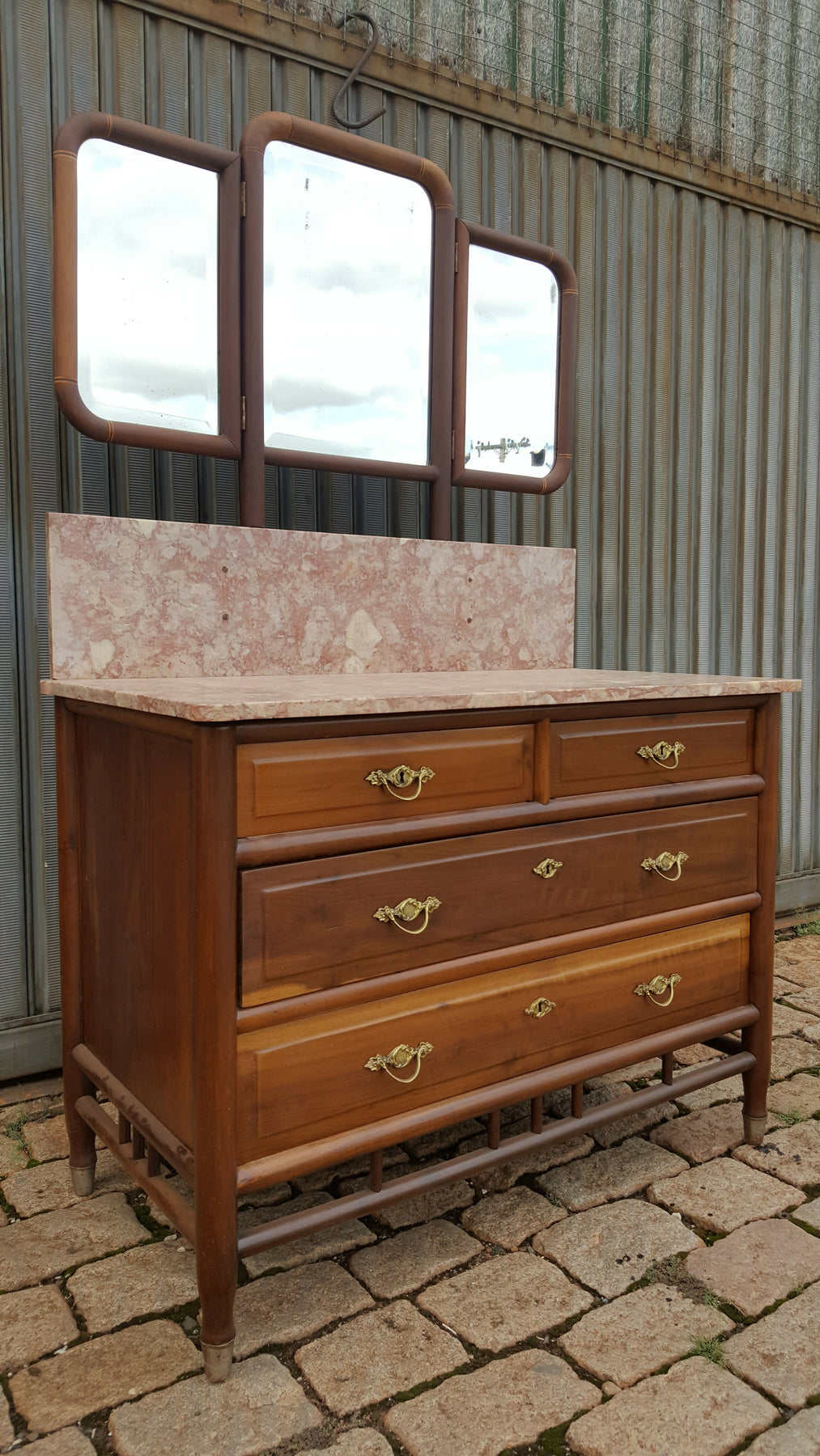 Raríssimo lavatório da móveis patente início Séc XX, puxadores em bronze com chave original, tampo de mármore Carrara rosa e espelho bisotê. Peça de museu, impecável estado de conservação. Disponível para venda!