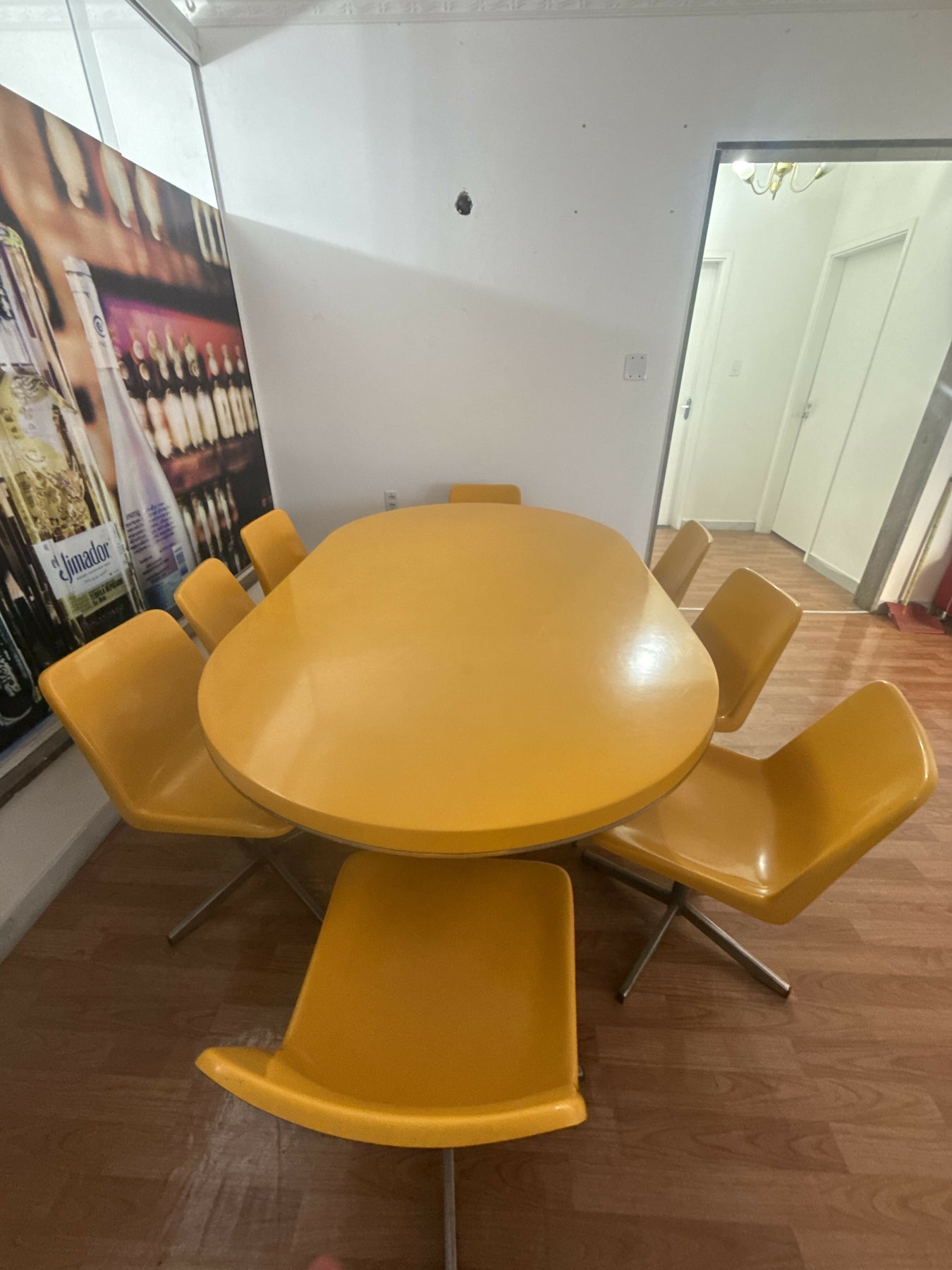 Conjunto Vintage Anos 70 – Mesa de Fibra + 8 Cadeiras – Móveis Gyotoku – RARÍSSIMO