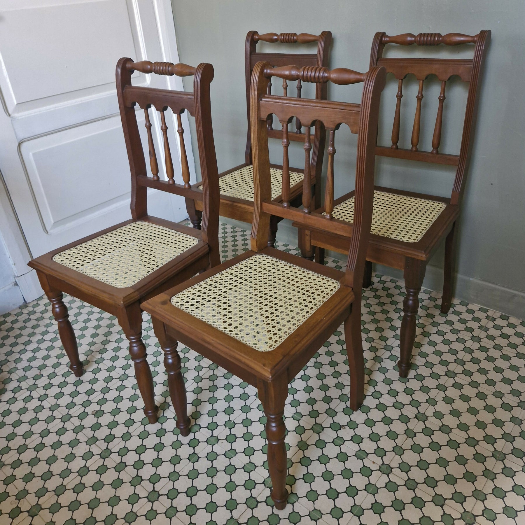 Belíssimo jogo com 4 cadeiras modelo colonial assento em palhinha sintética restauradas pasdara pronta entrega.
