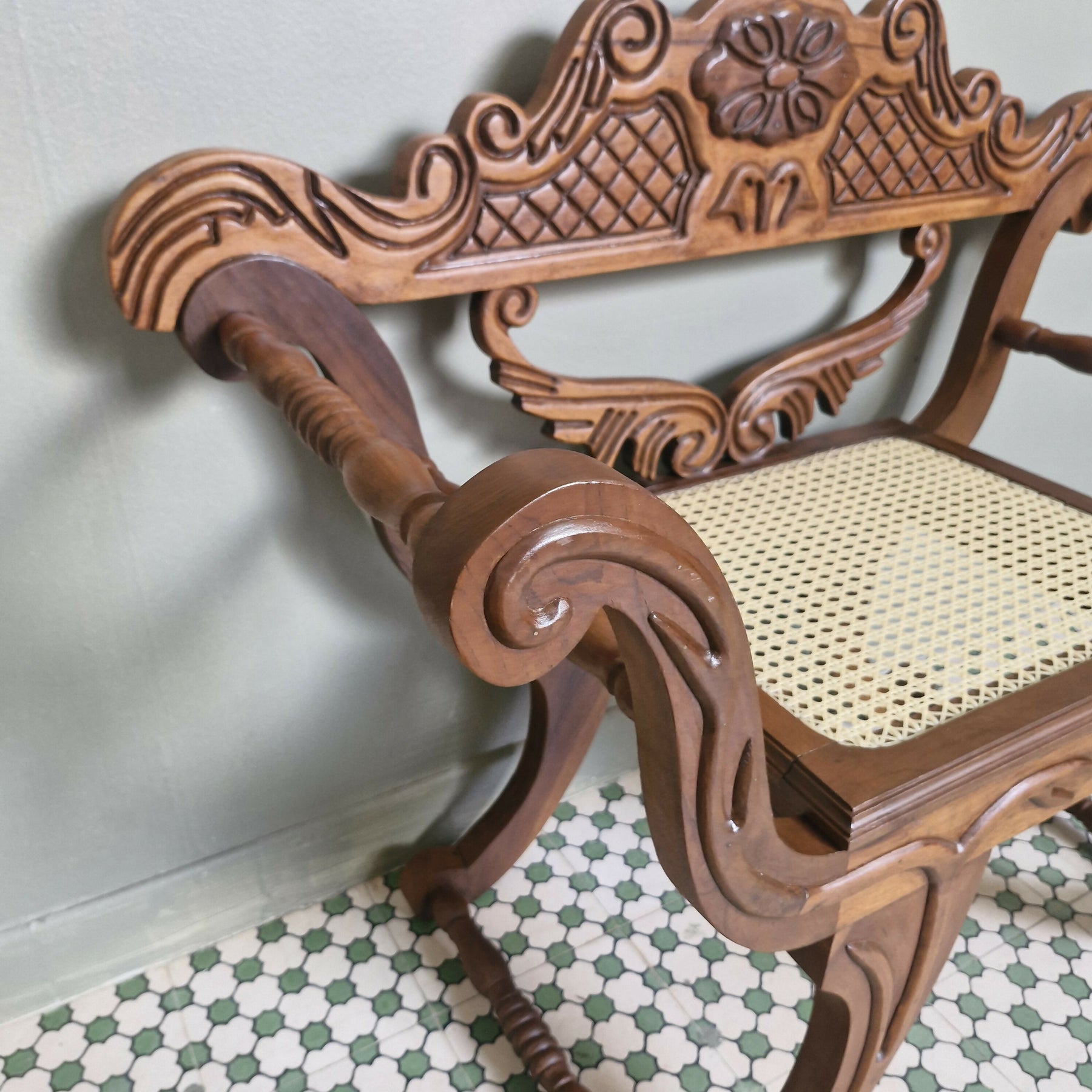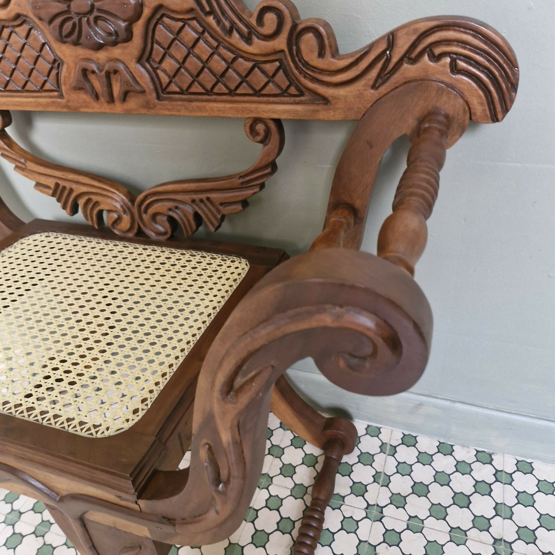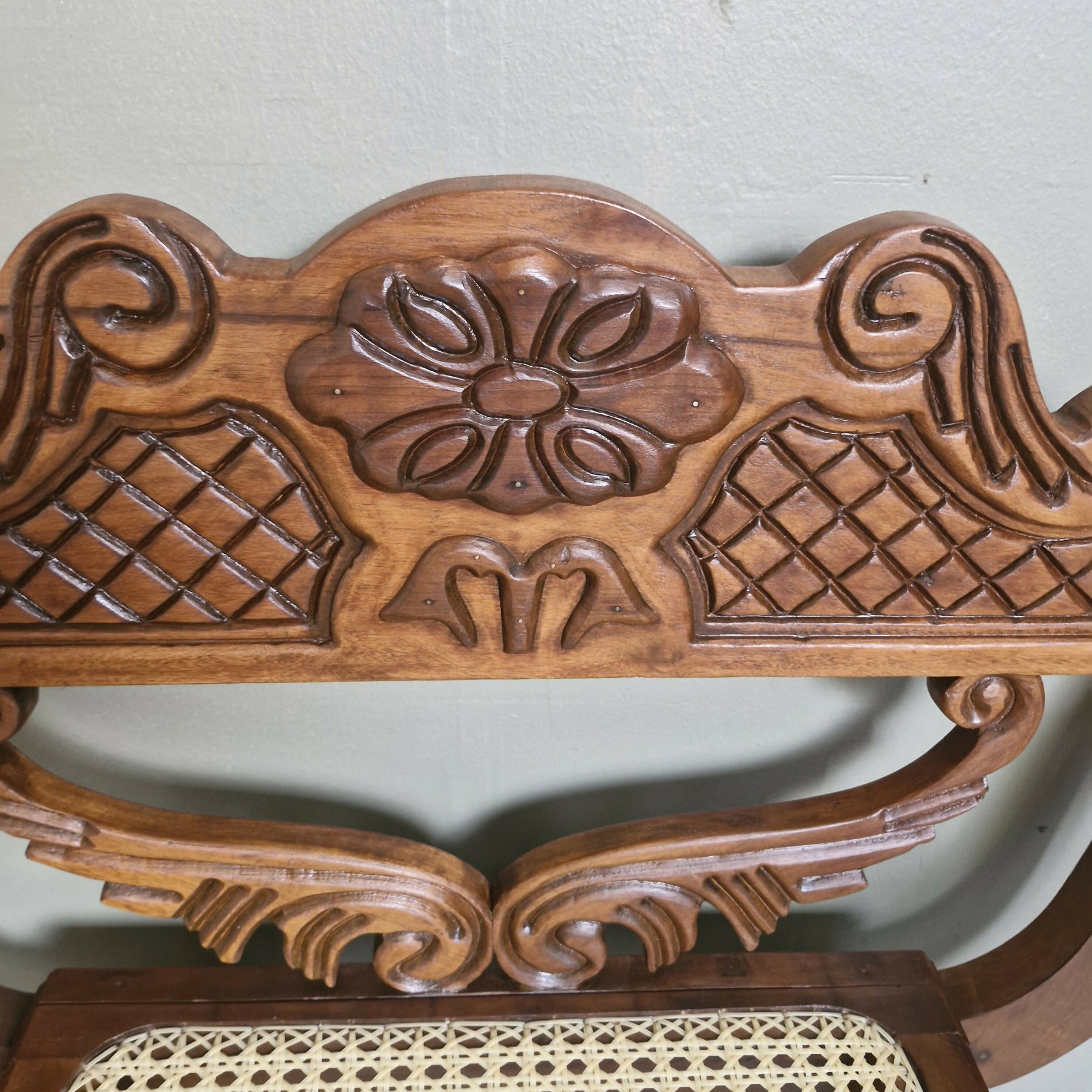 Maravilhosa Marquesa entalhada com palhinha (restaurada)
