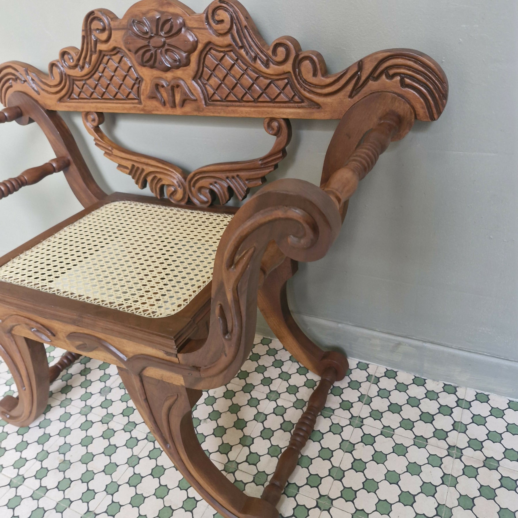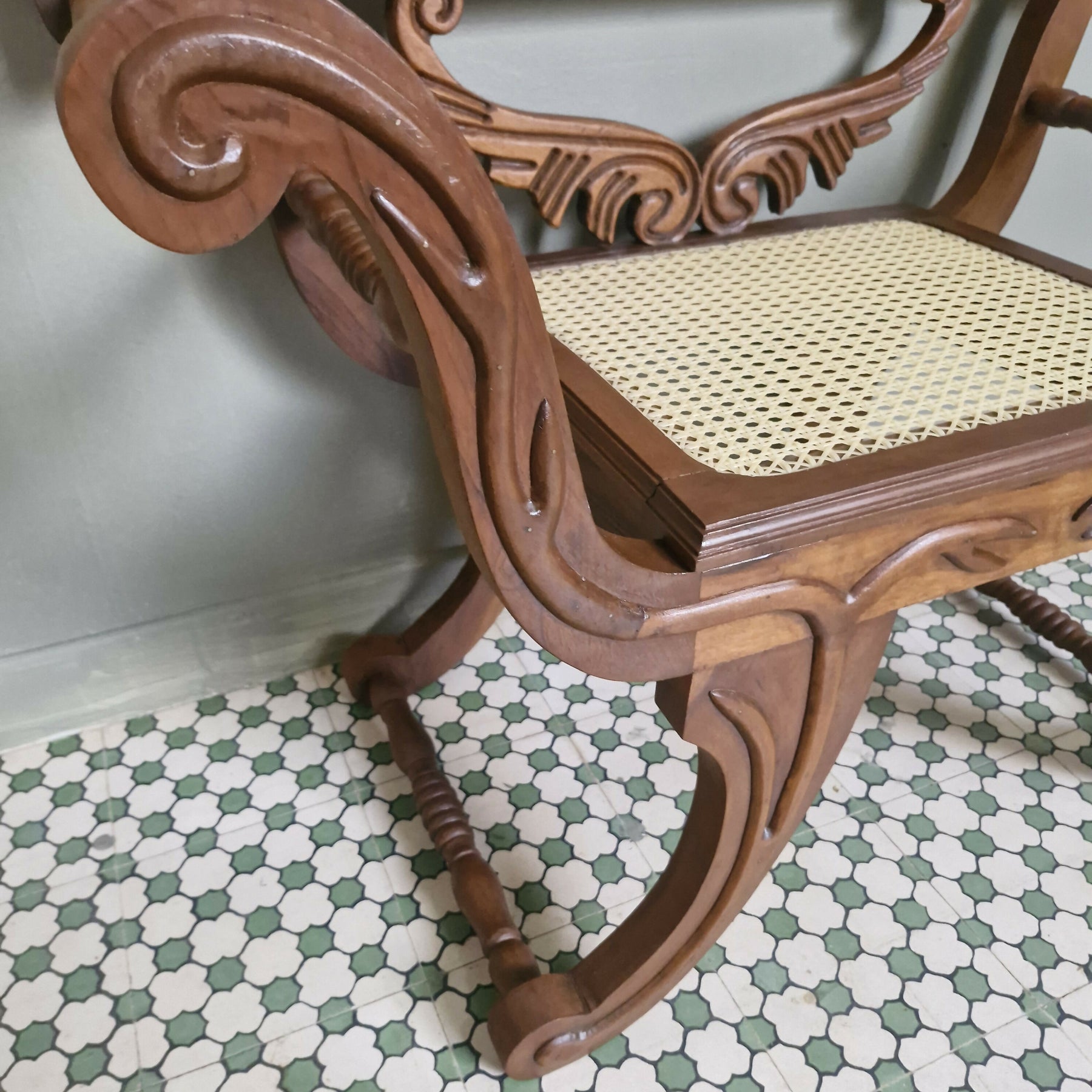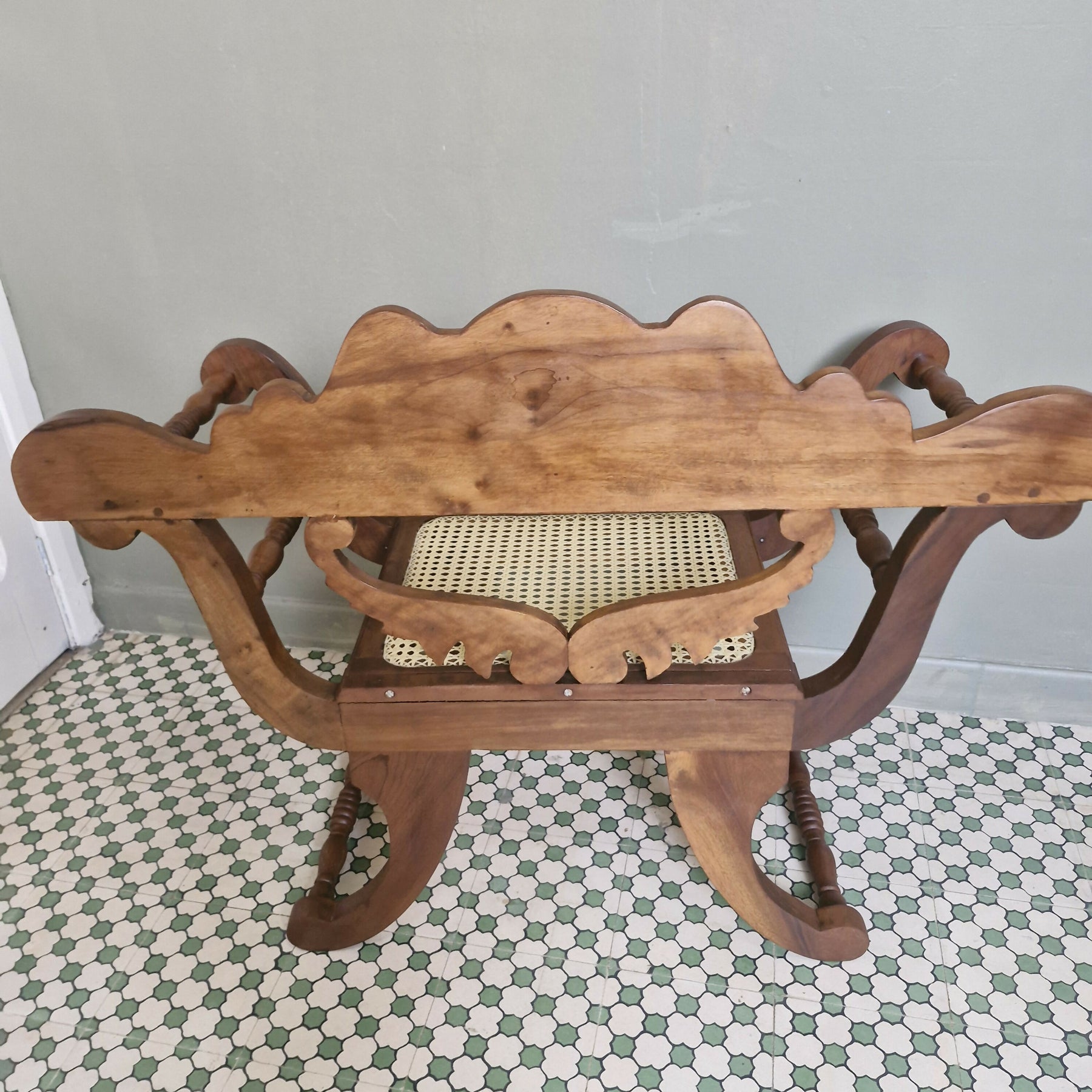 Maravilhosa Marquesa entalhada com palhinha (restaurada)