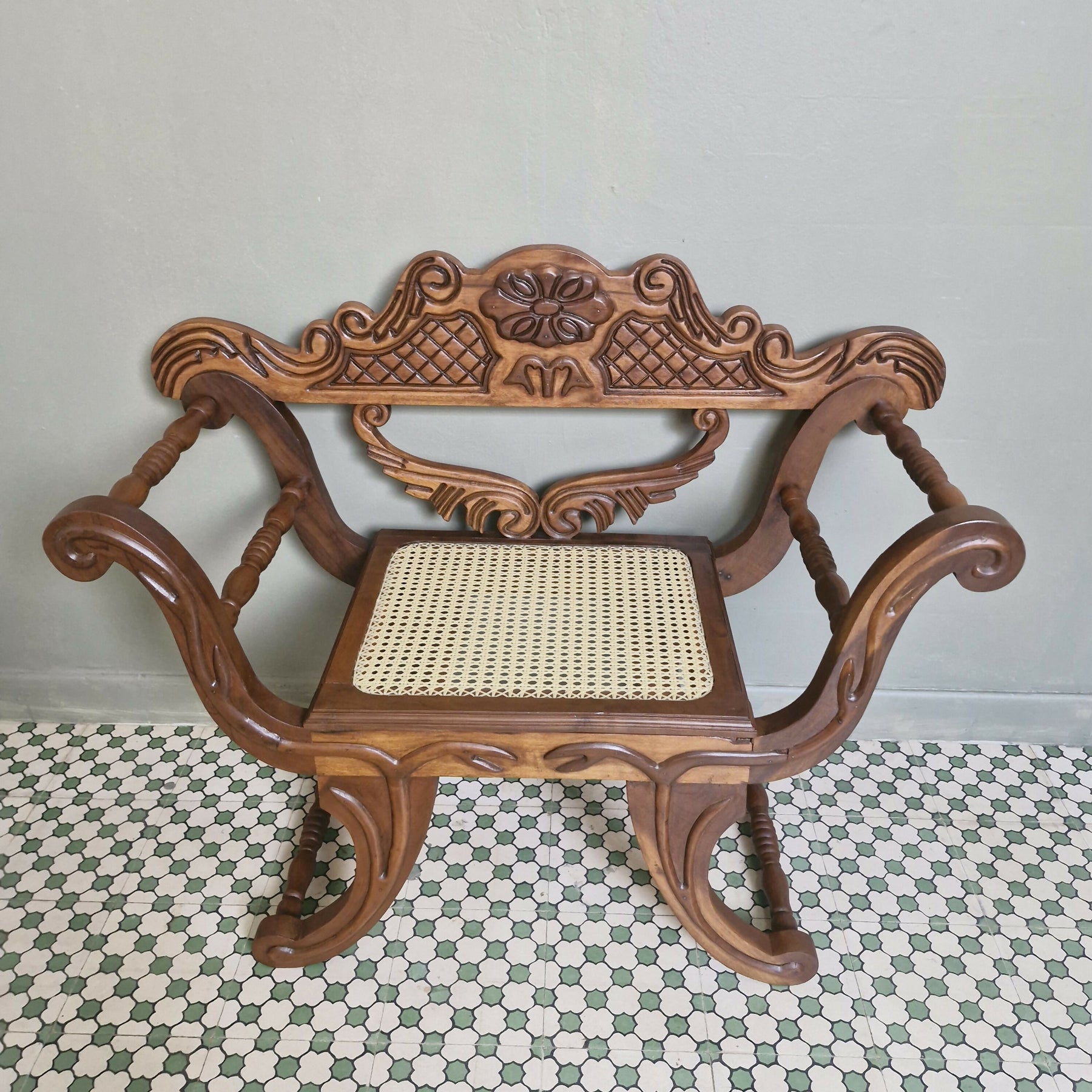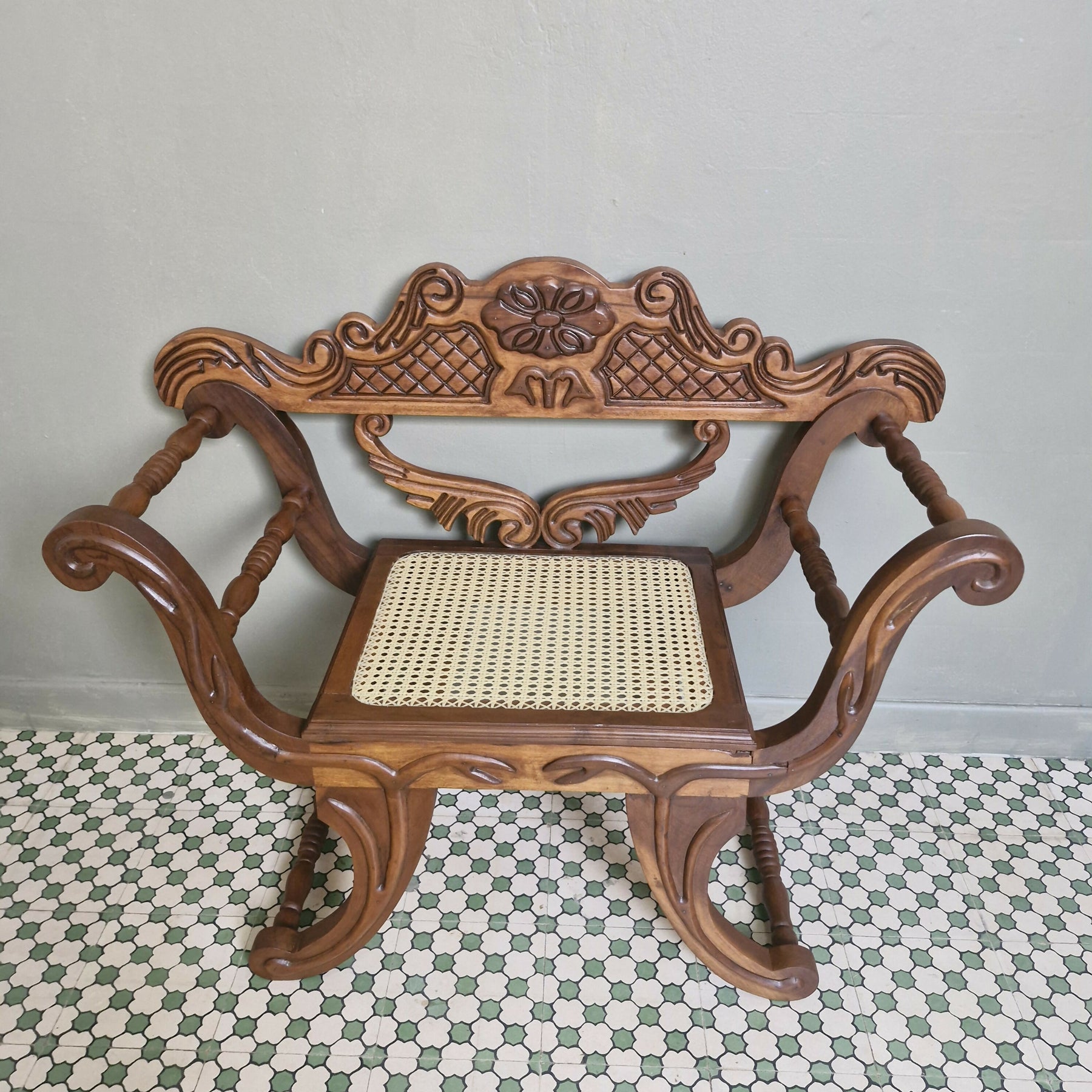 Belíssima peça marquesa / cadeira / banco ricamente entalhada com assento palhinha nova, restaurada para pronta entrega.