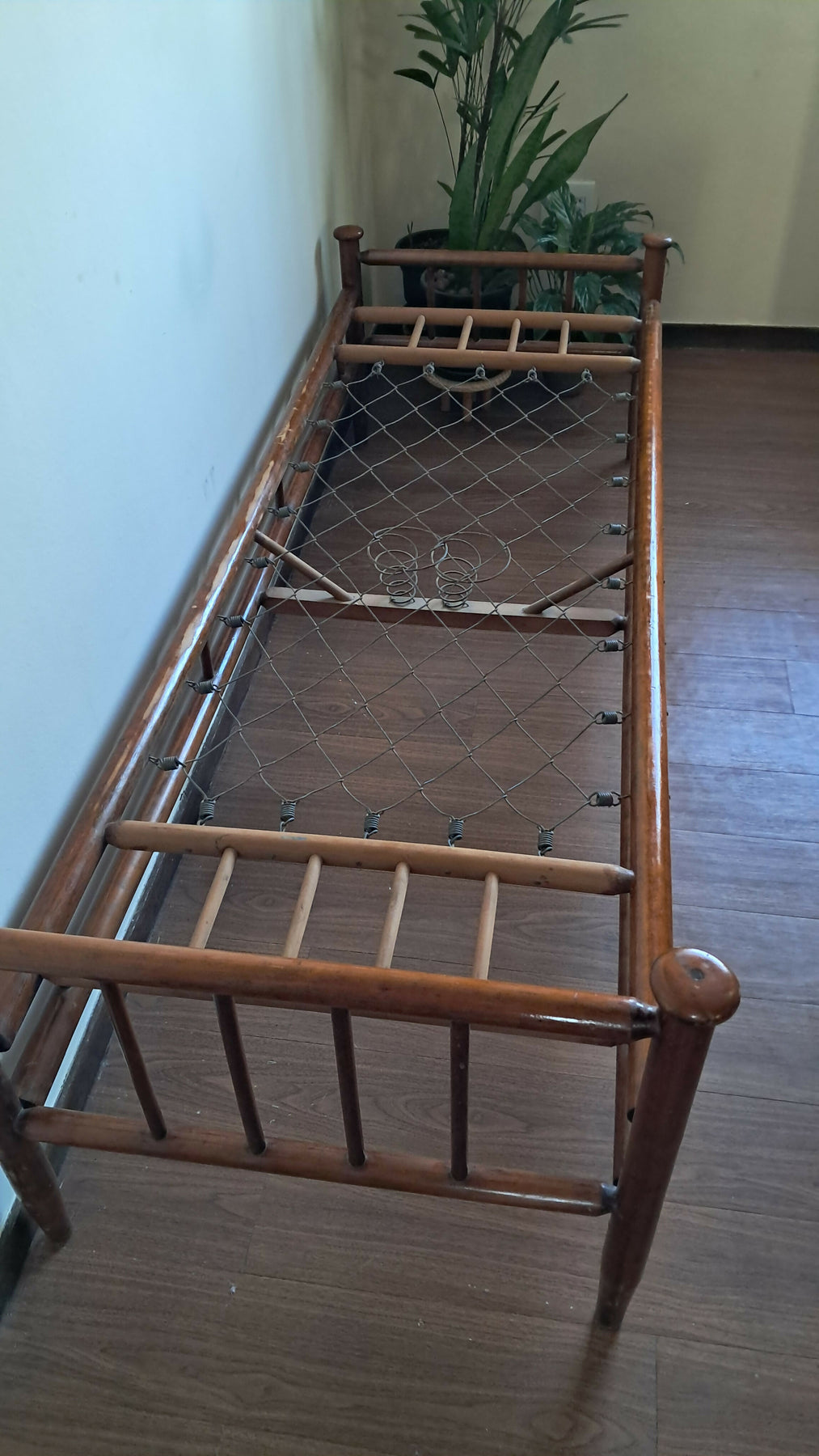 Cama patente adaptada como sofá. Assento e almofadas de encosto incluídos na venda.
