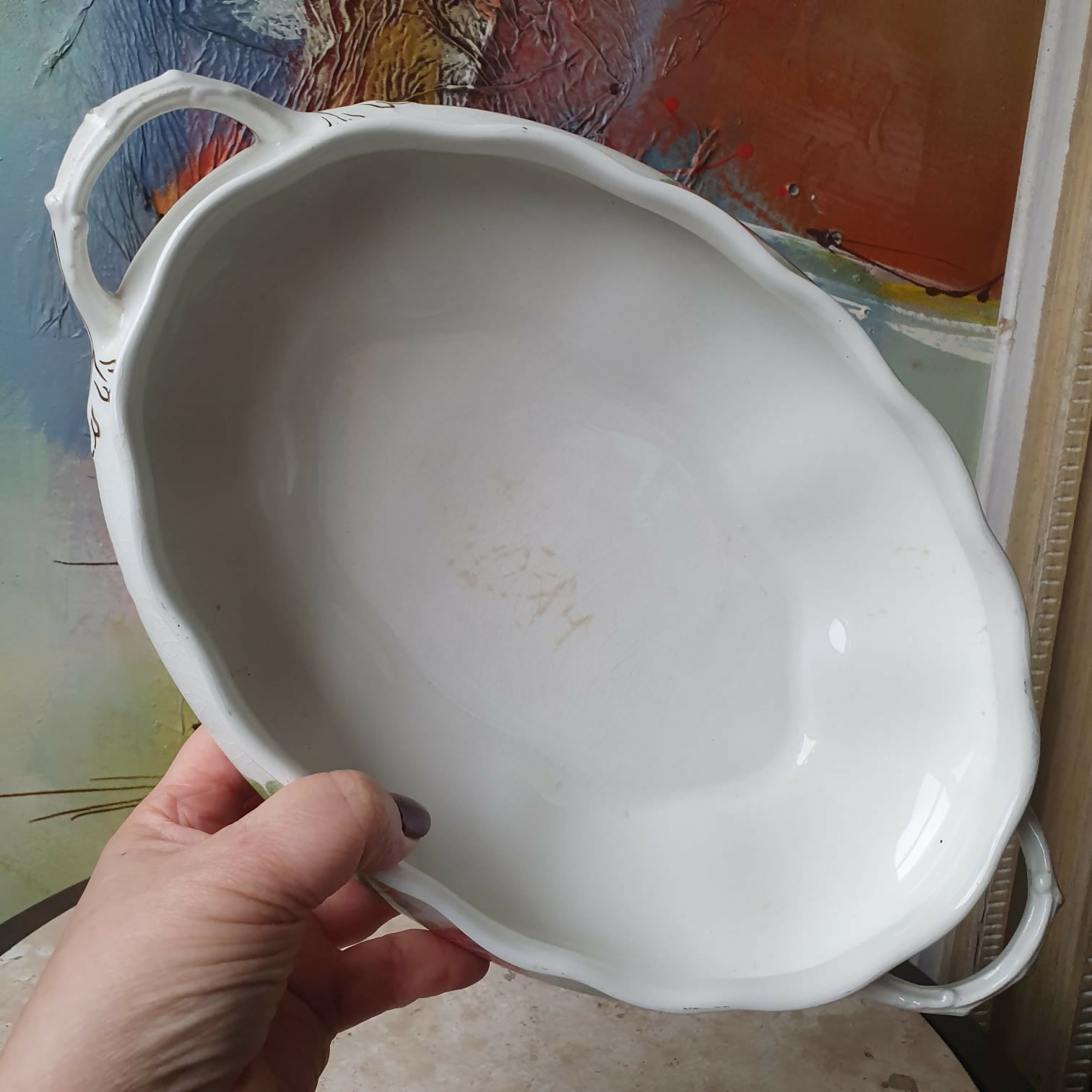 Sopeira inglesa de pé alto, século XIX (cerca de 1890), em faiança John Maddock & Sons Royal Vitreous.