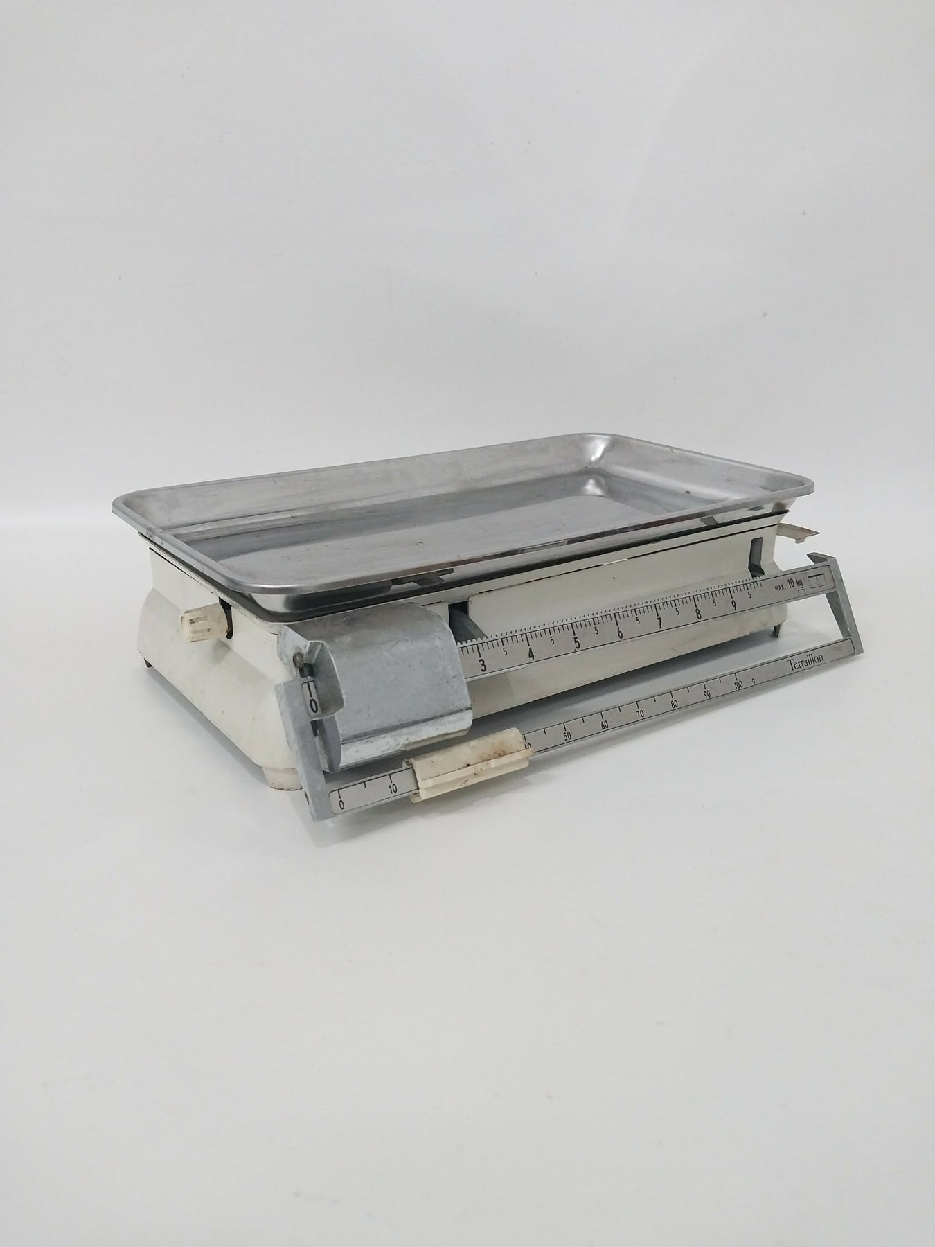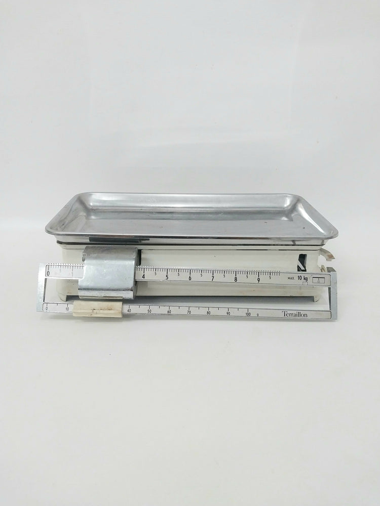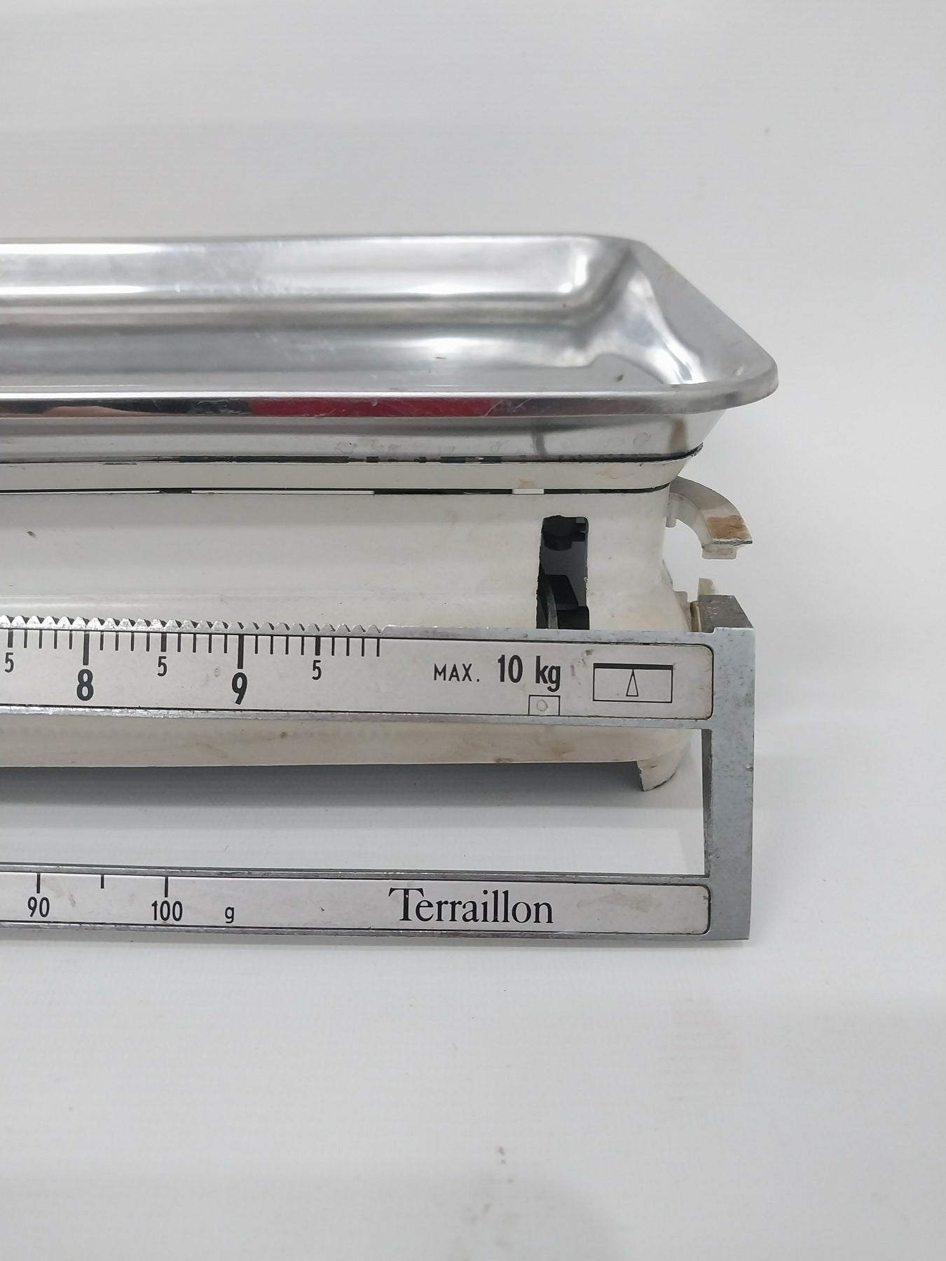 Balança de Cozinha Antiga Terralion Francesa em Ágata, prato em inox, pesa até 2 kg, Charmosas marcas do tempo, preço de desapego.