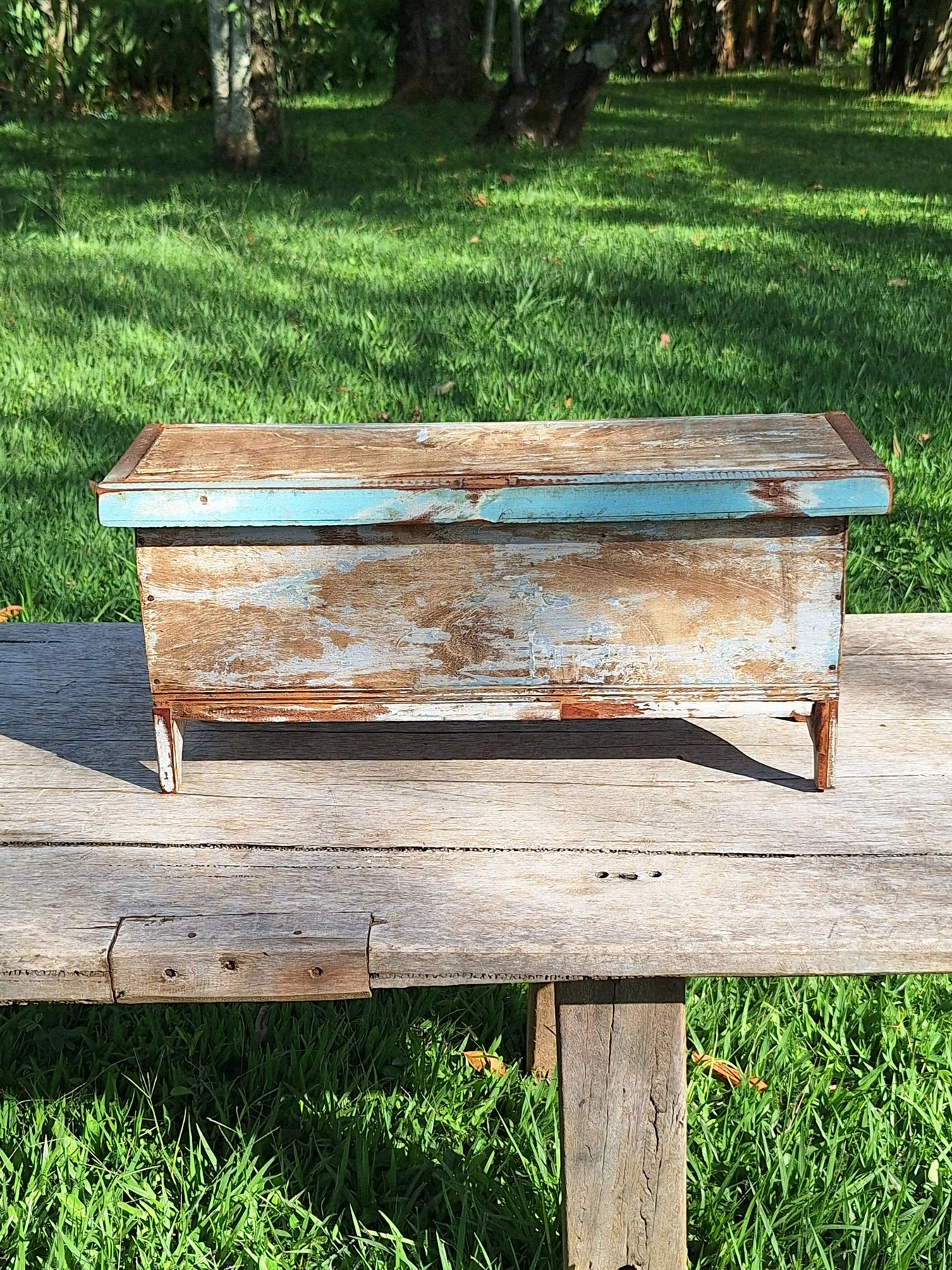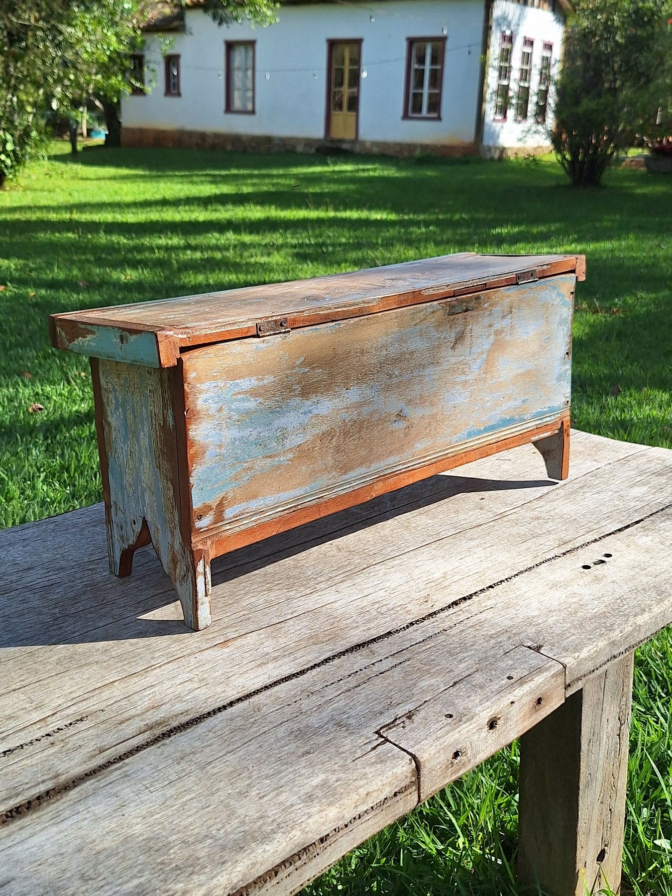 Baú Rústico Tinta Gasta Madeira Maciça Garimpo Mineiro