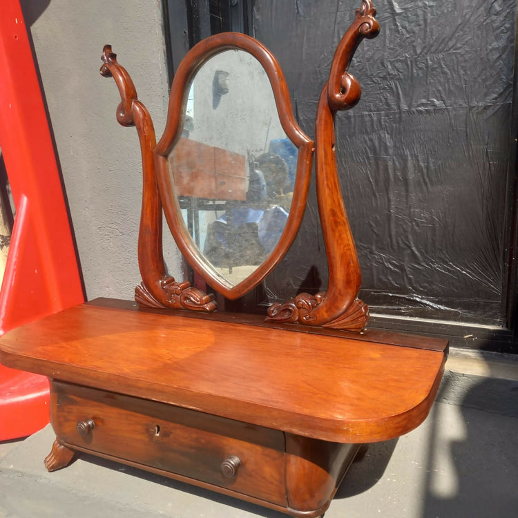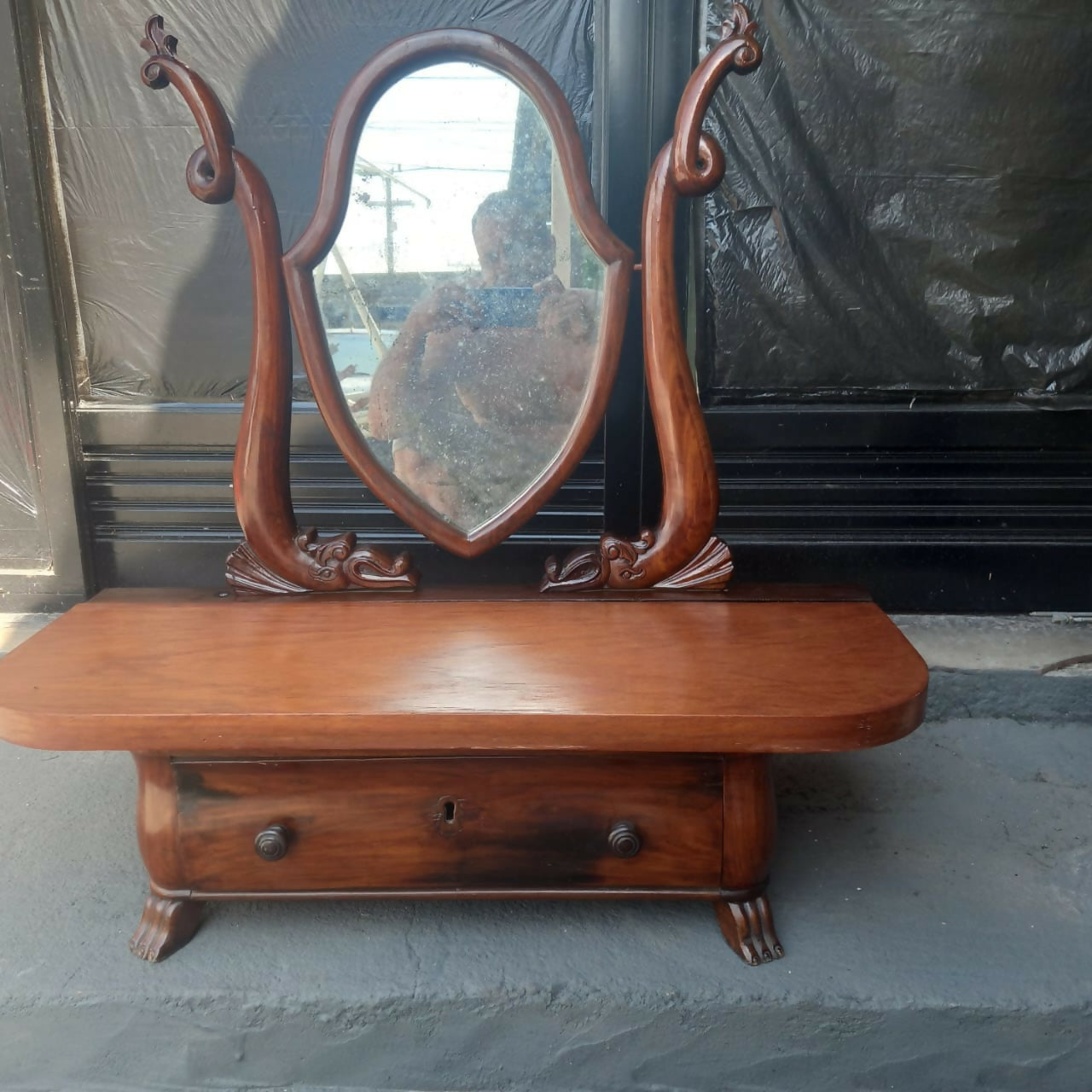Mini penteadeira, tampo provisório, o tampo de mármore quebrou, med 80 cm comp, 32,5 cm profundidade tampo, 78,5 cm altura moldura, 23,5 cm altura tampo