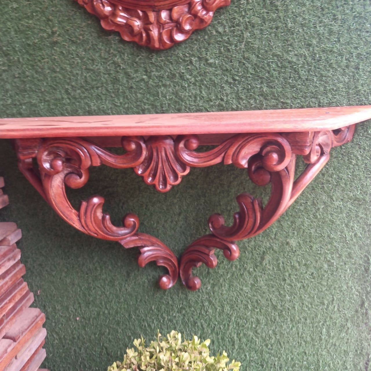 Espelho com moldura entalhada na madeira, Med 1.02 x 57 cm, aparador Med 82 cm Comp, 21cm  profundidade, 38cm altura, com detalhes de uso
