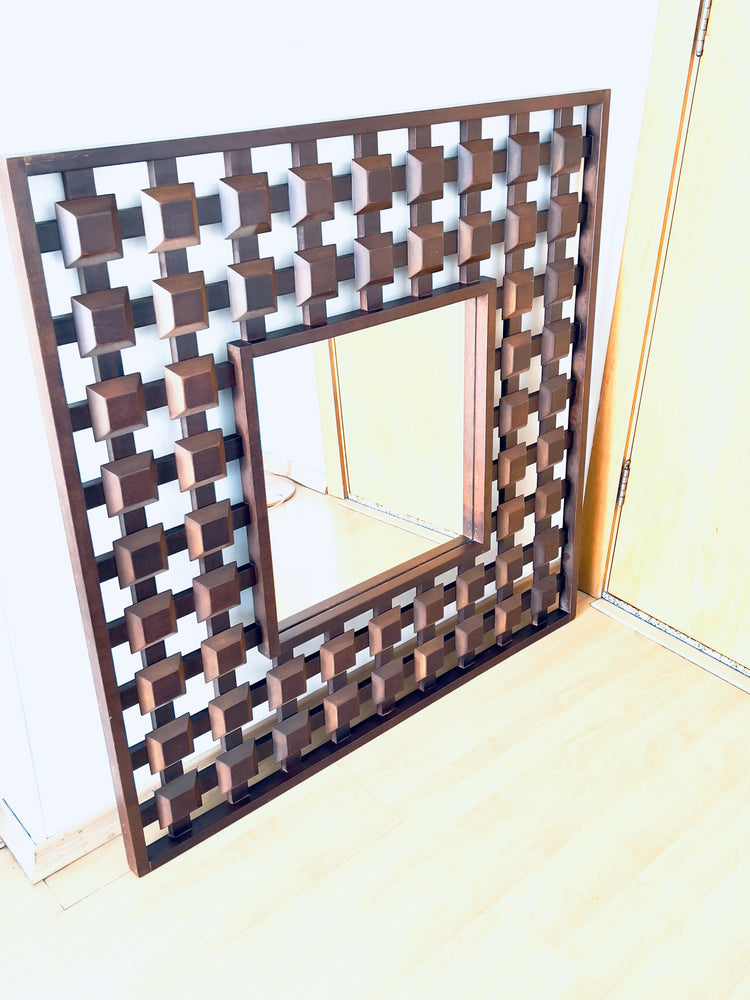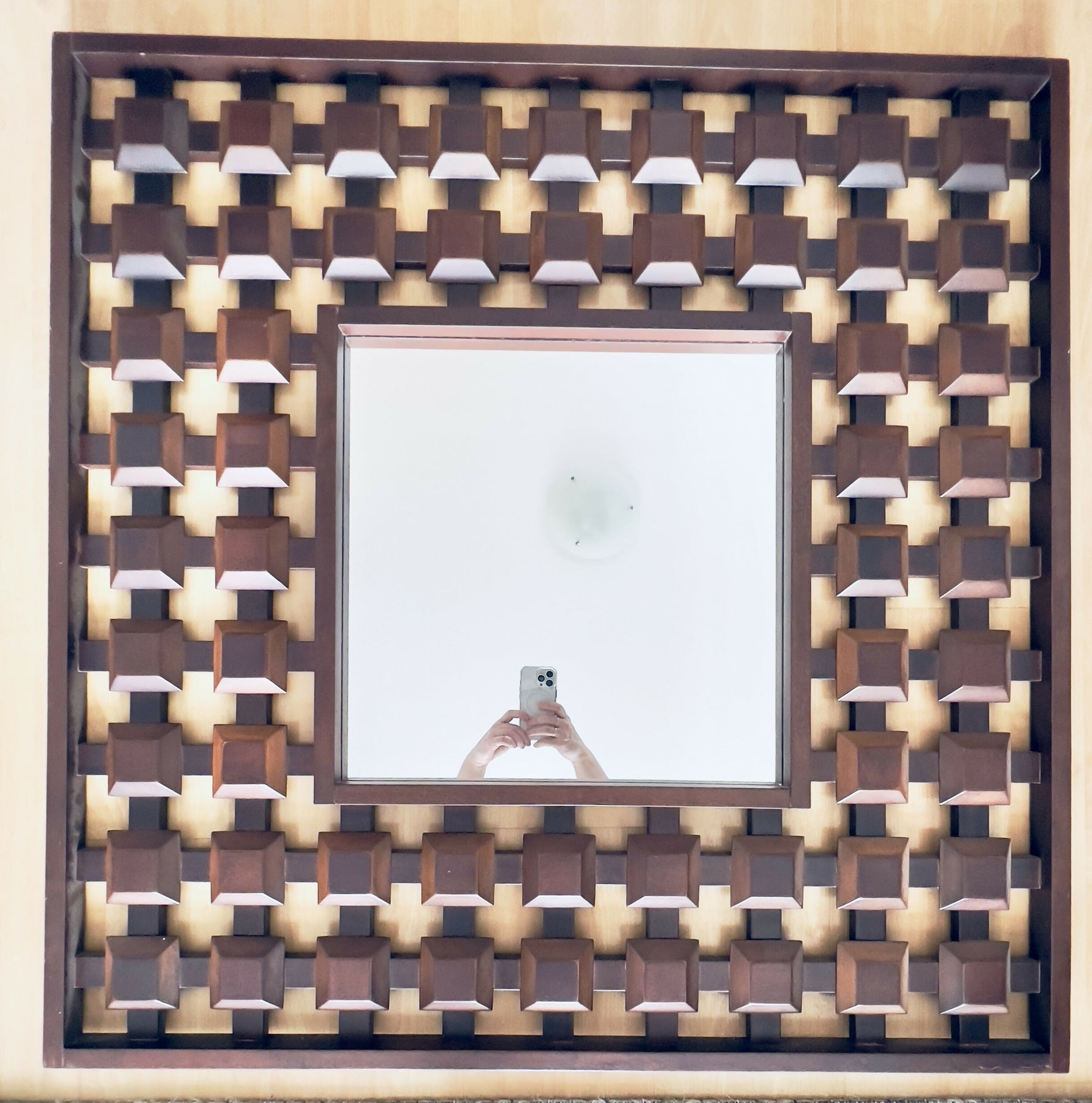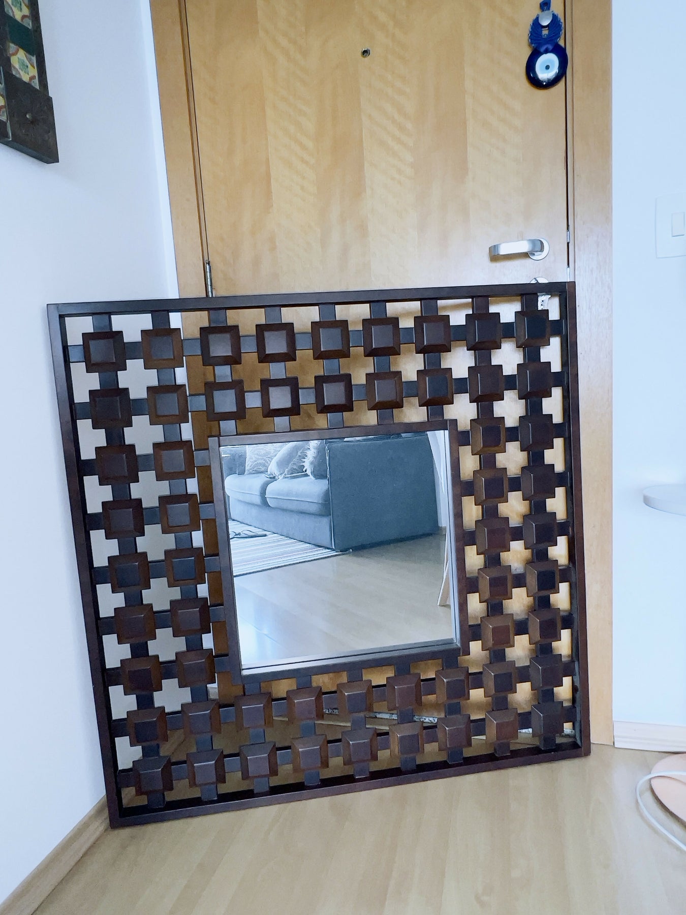 Espelho em madeira mogno lindíssimo 1m X 1m