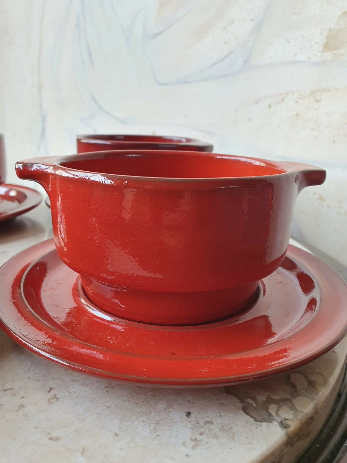 Conjunto de 4 consomês alemães em cerâmica vitrificada Waku. Lindas!