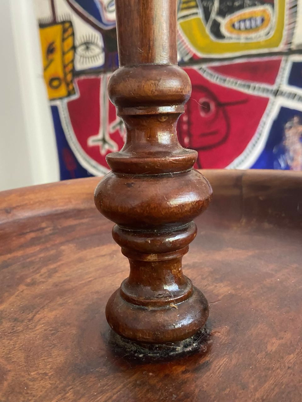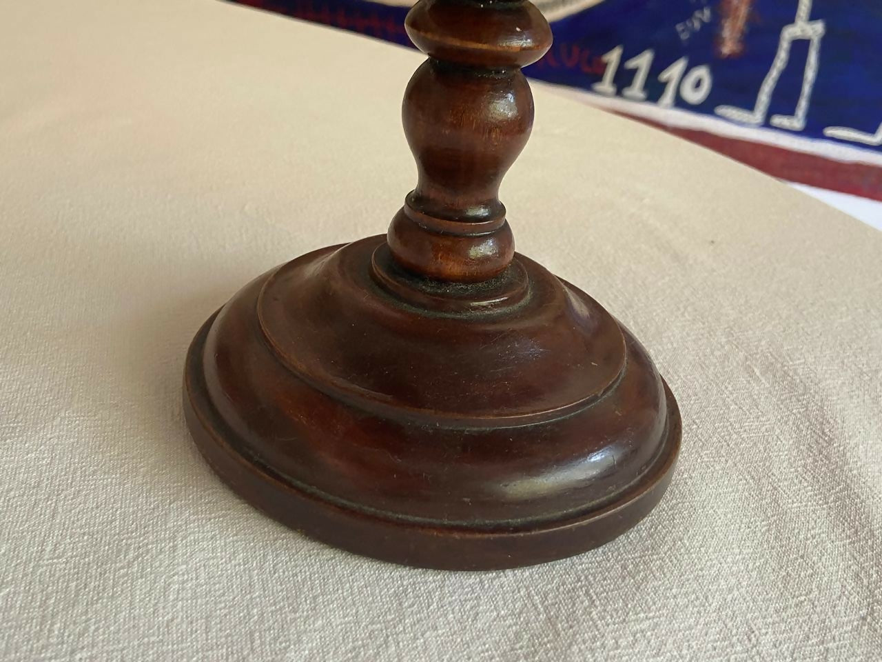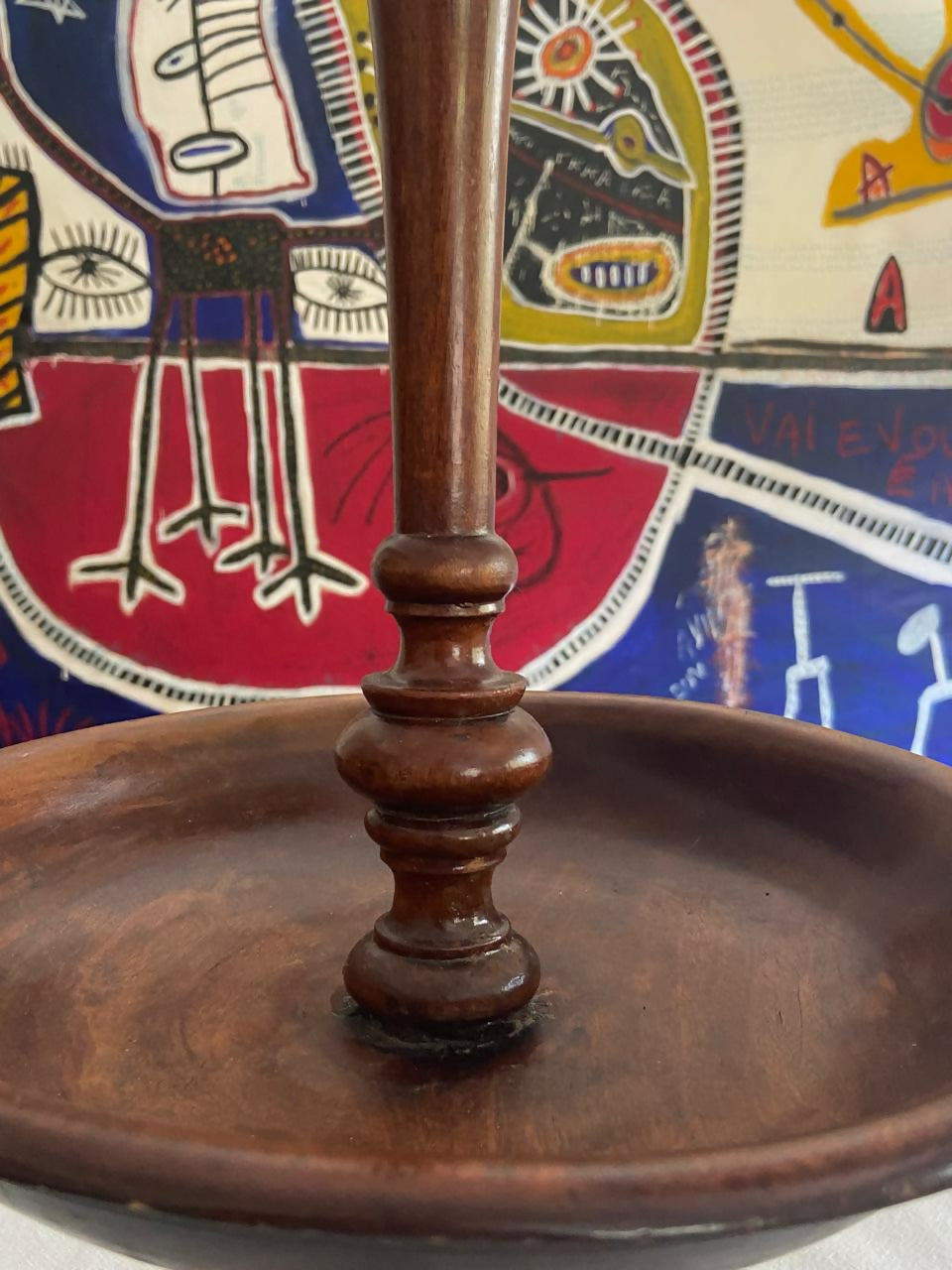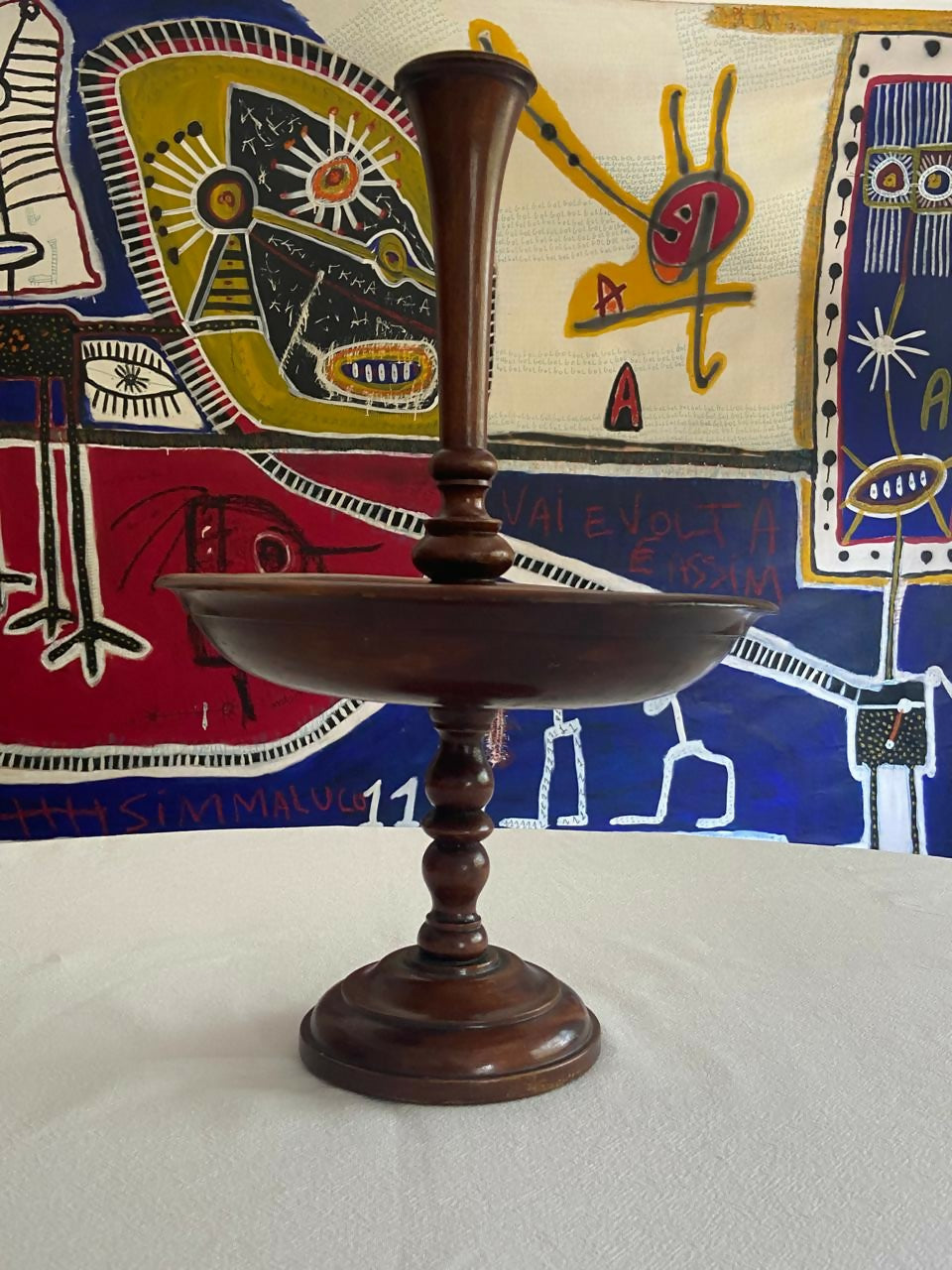 Peça de autor não identificado, datada dos anos 60, em madeira torneada com desenho de linhas elegantes. A base robusta sustenta uma haste esguia e a ampla abertura superior, criando uma presença escultórica que une função e expressão.