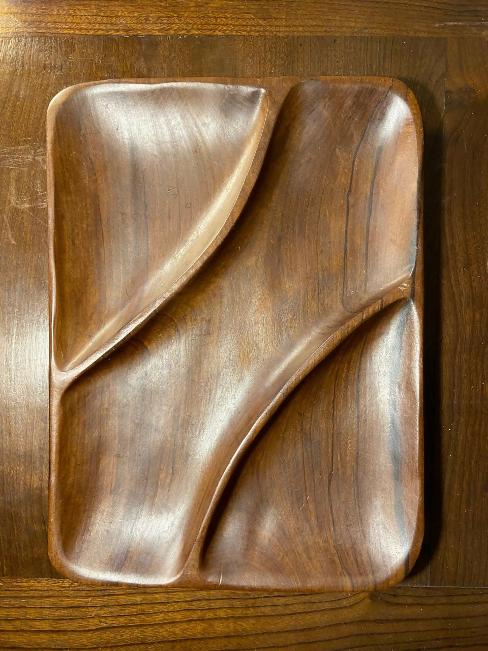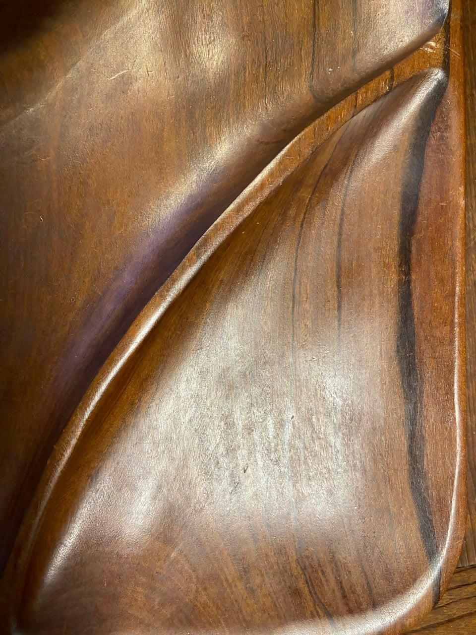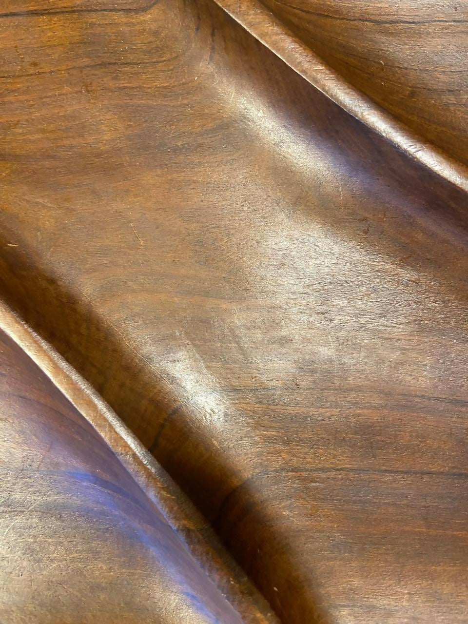 A luz destaca os veios e as nuances da belíssima Caviúna, transformando o que seria apenas utilitário em objeto de admiração sensorial.