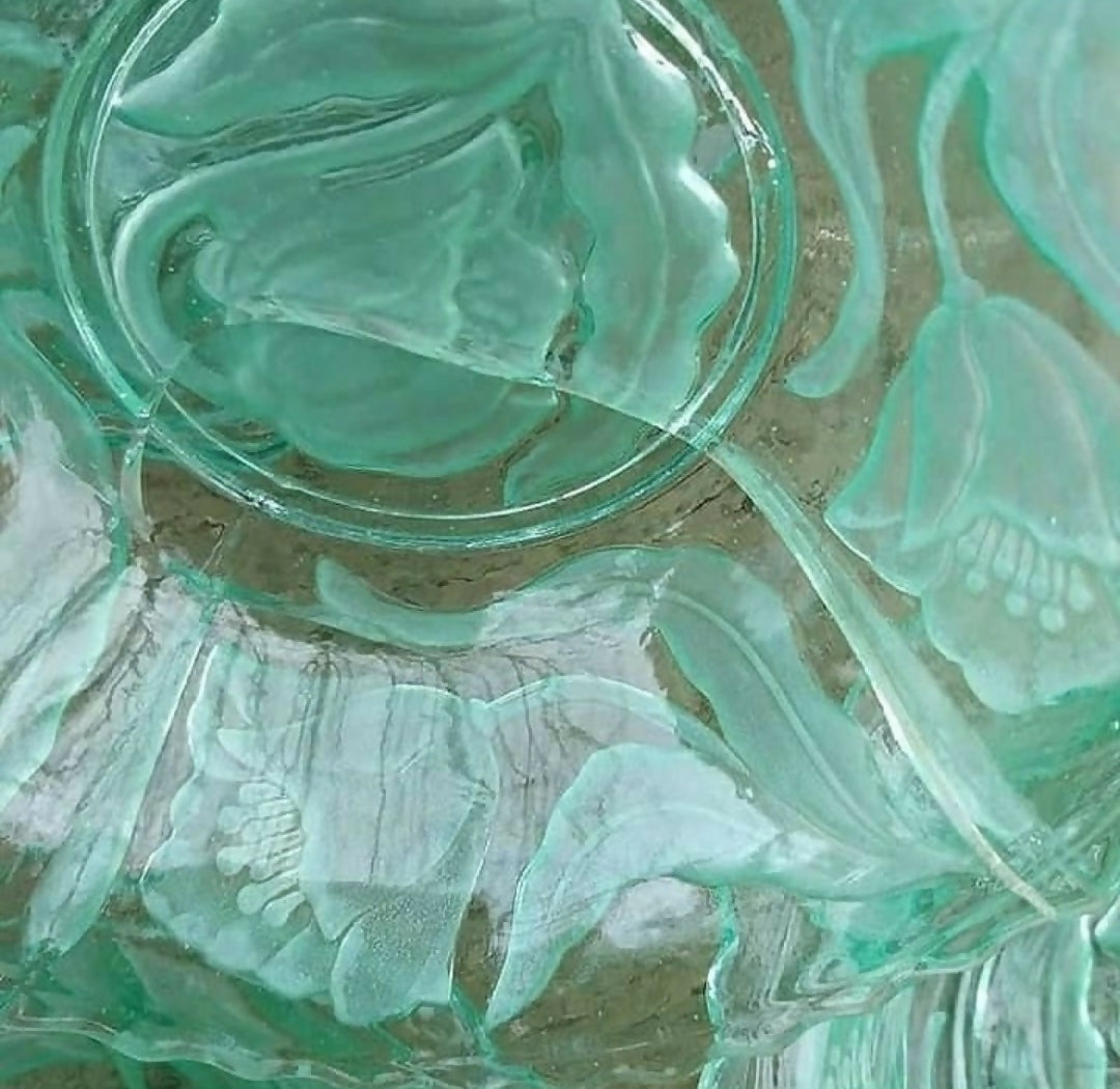 Conjunto de sobremesa com 6 tigelas pequenas de vidro esverdeado (duas com leve defeito conforme imagem).