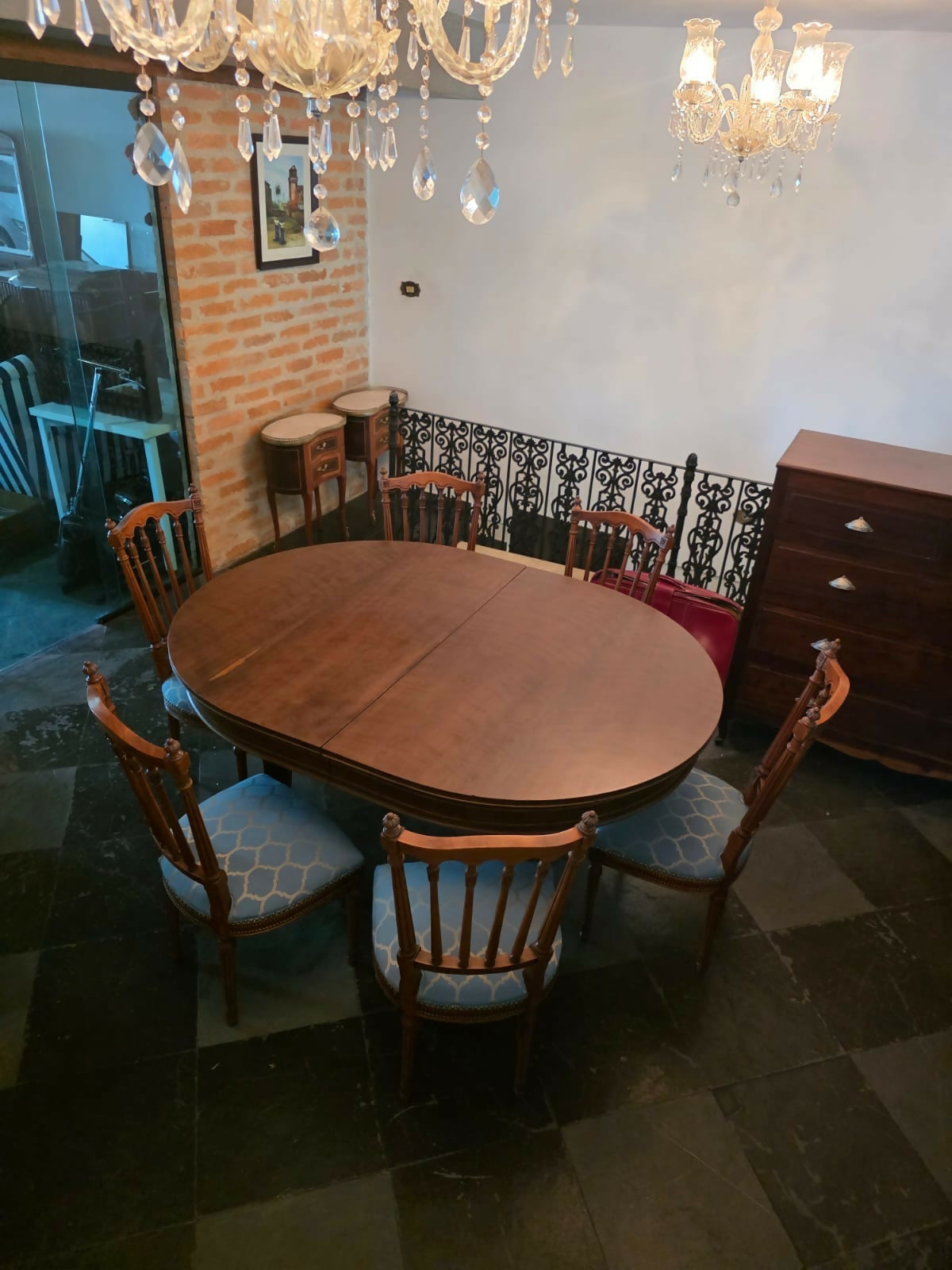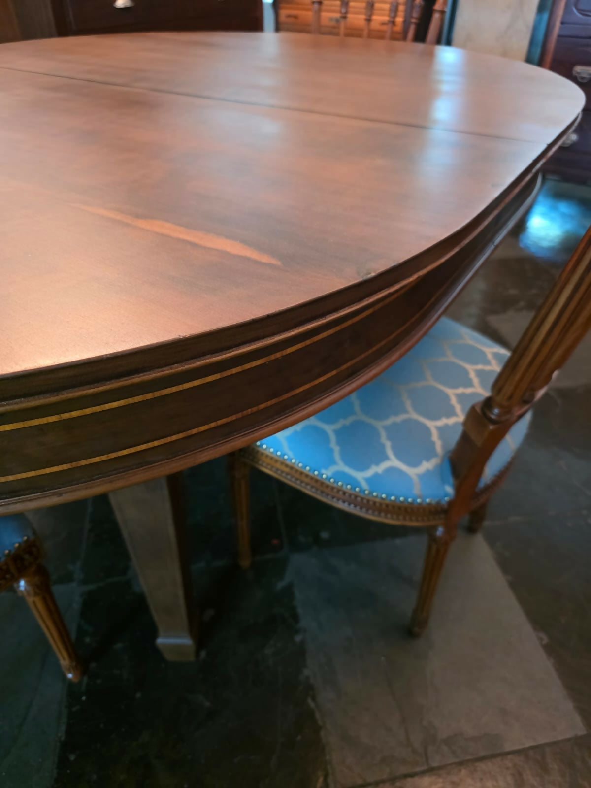 Mesa inglesa, George hepplewhite, com fina marchetaria e madeiras maciças