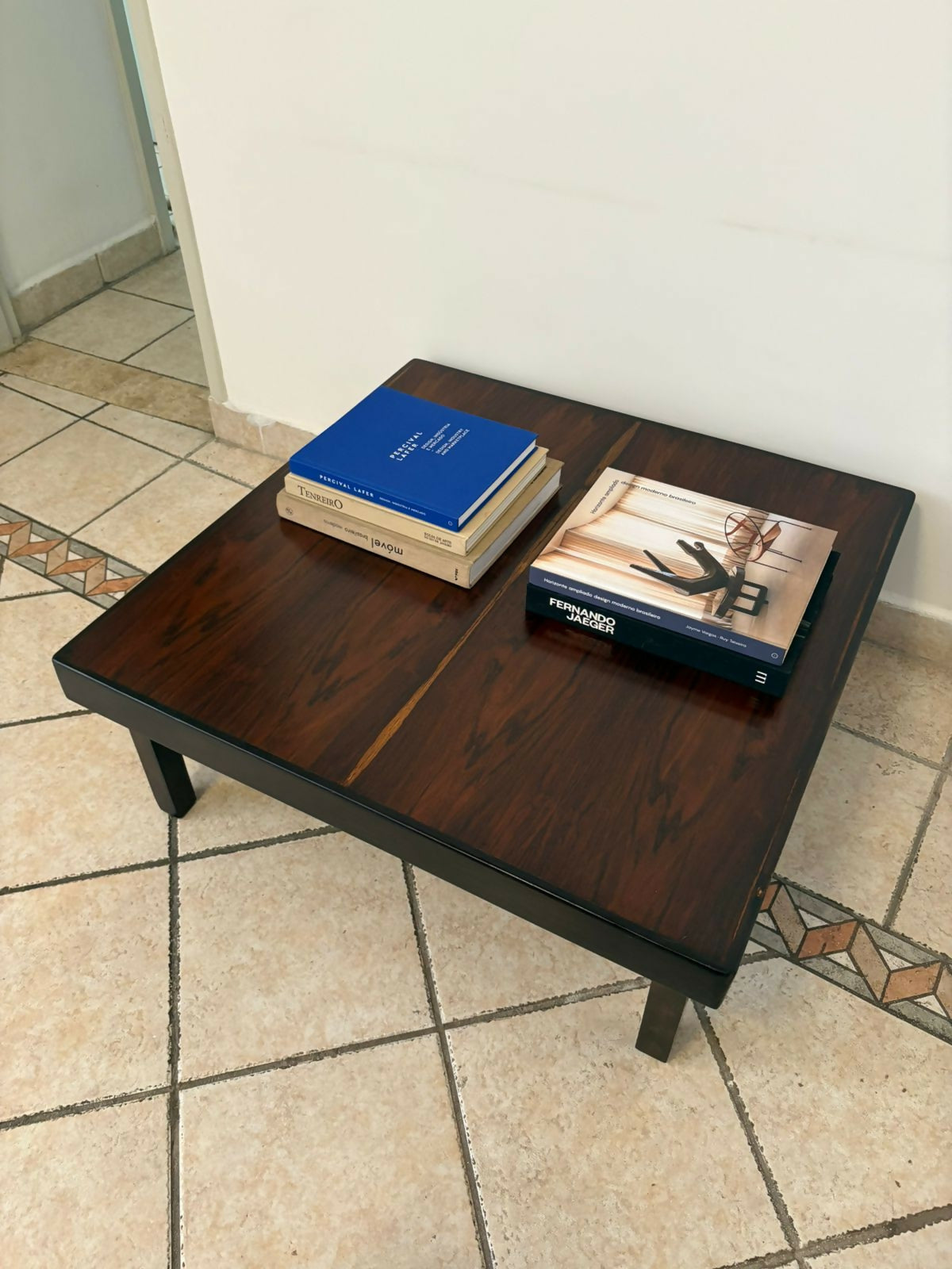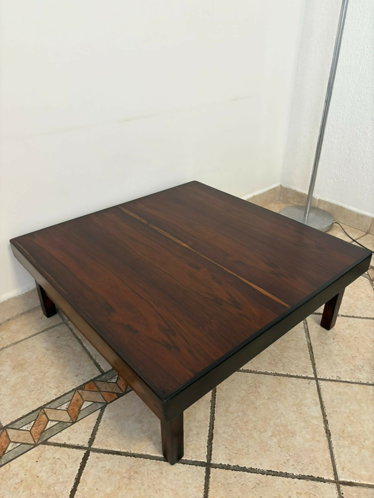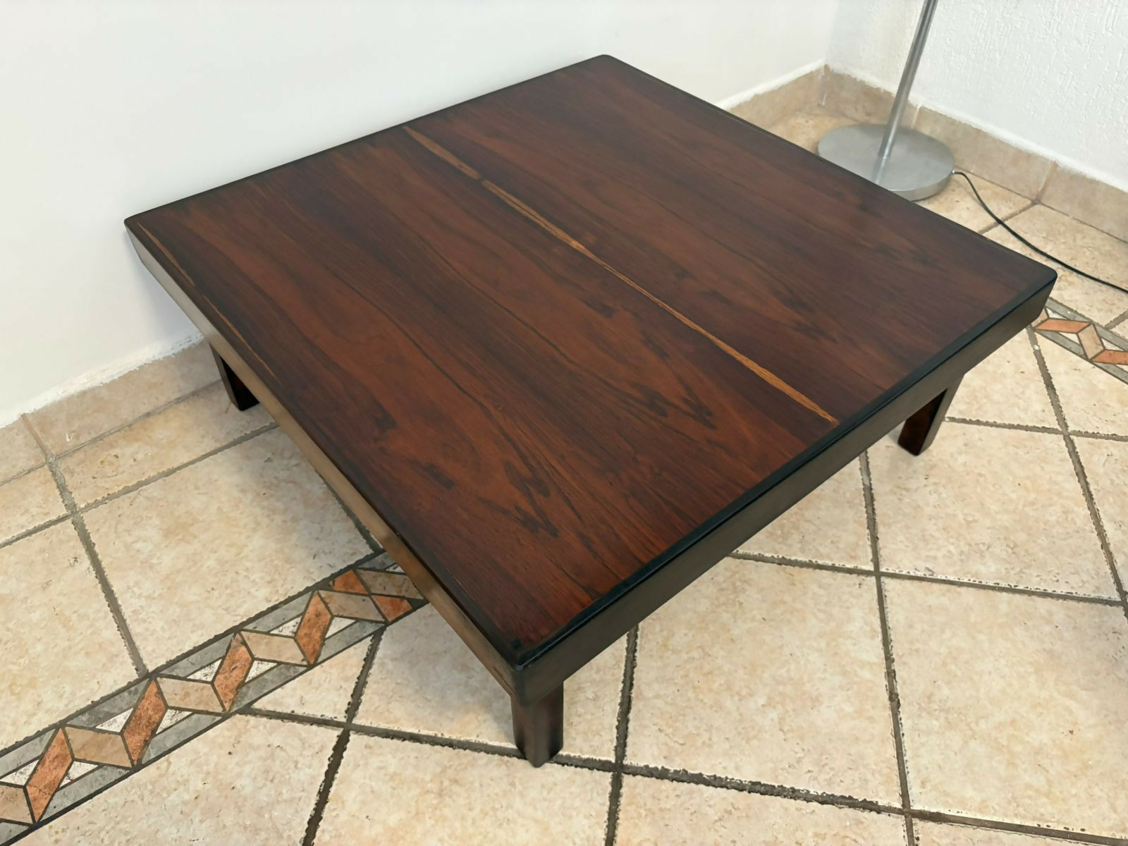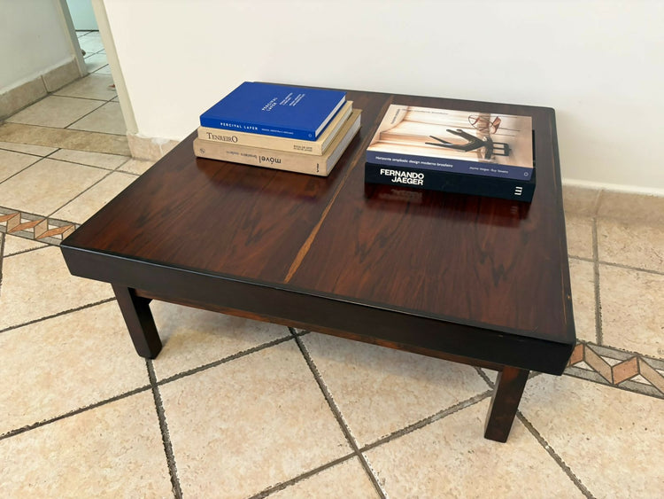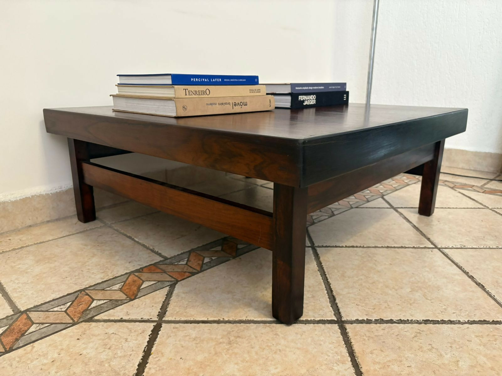 SERGIO RODRIGUES, 1960 - Mesa de centro Vianna autêntica, com garantia de procedência, com estrutura em madeira de jacarandá e tampo em folheado de jacarandá. Medidas: 85cm x 85cm x 33cm H.