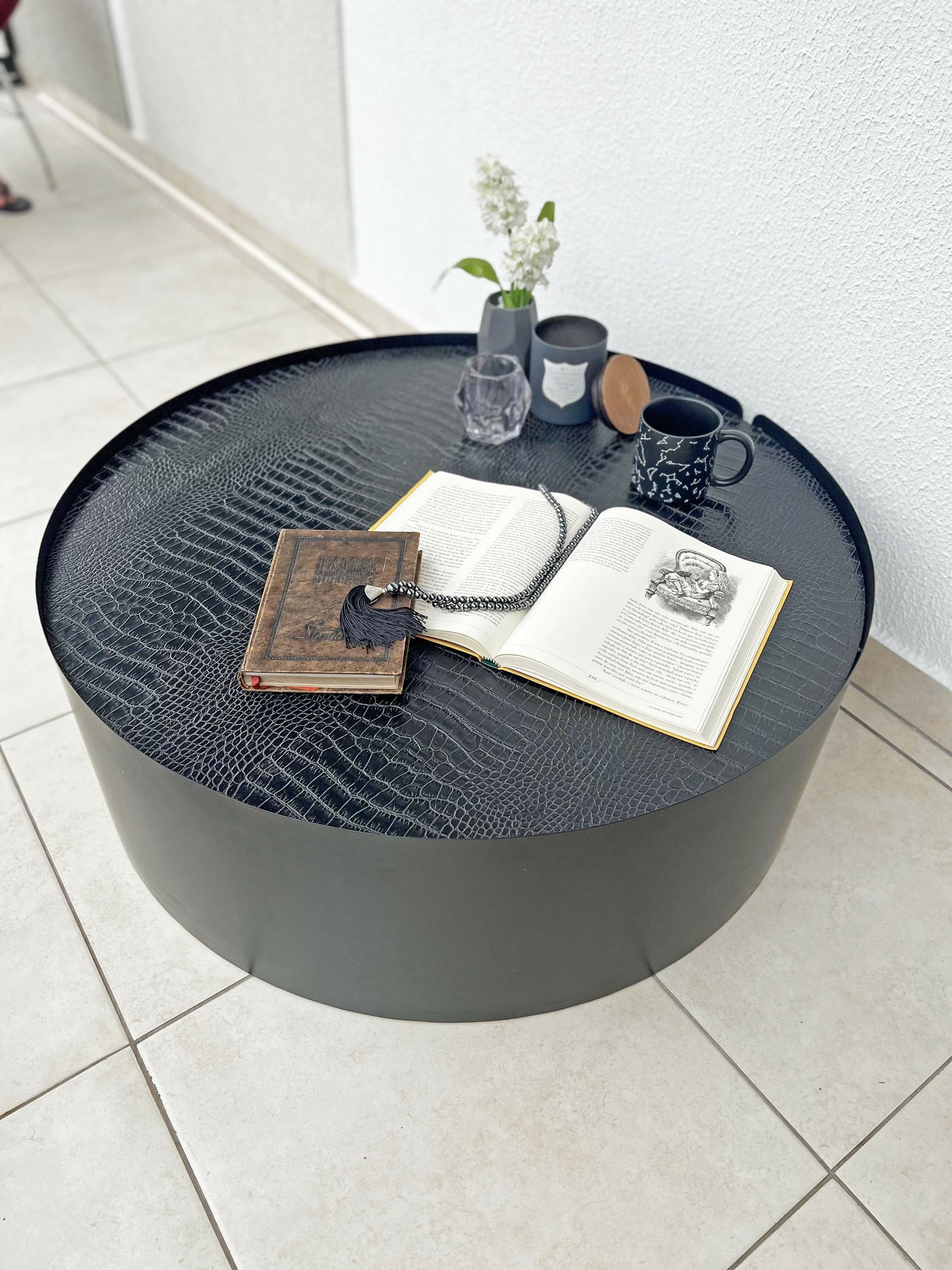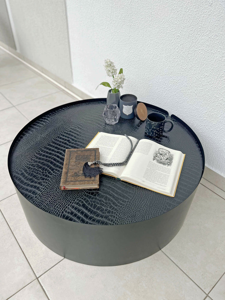 Linda mesa de centro preta, elegante e discreta, design exclusivo