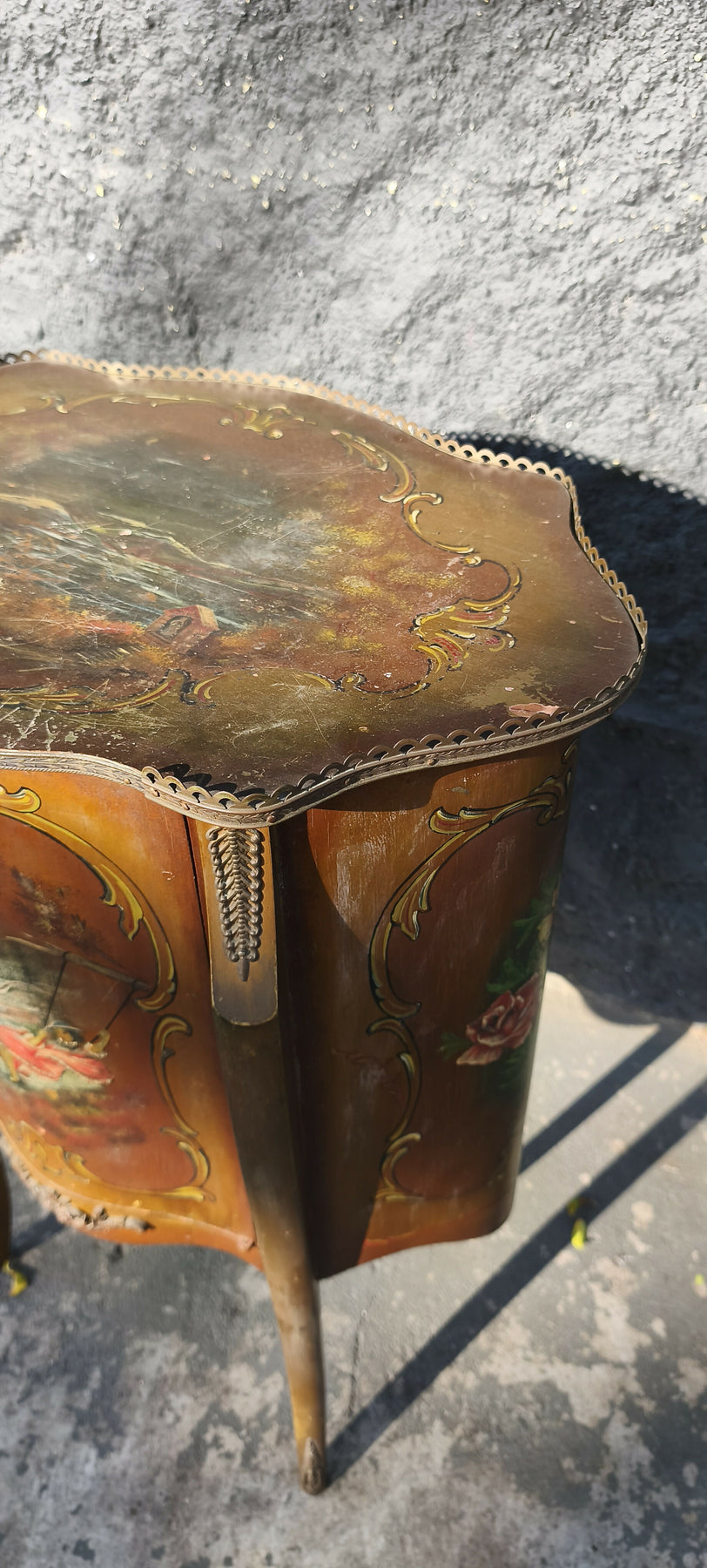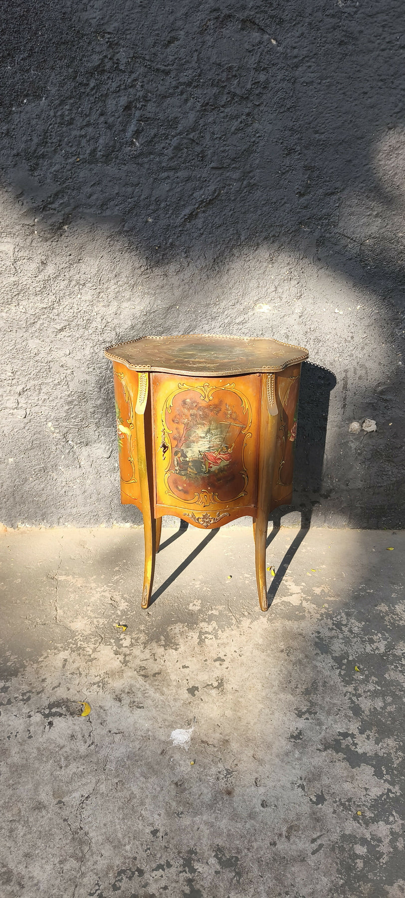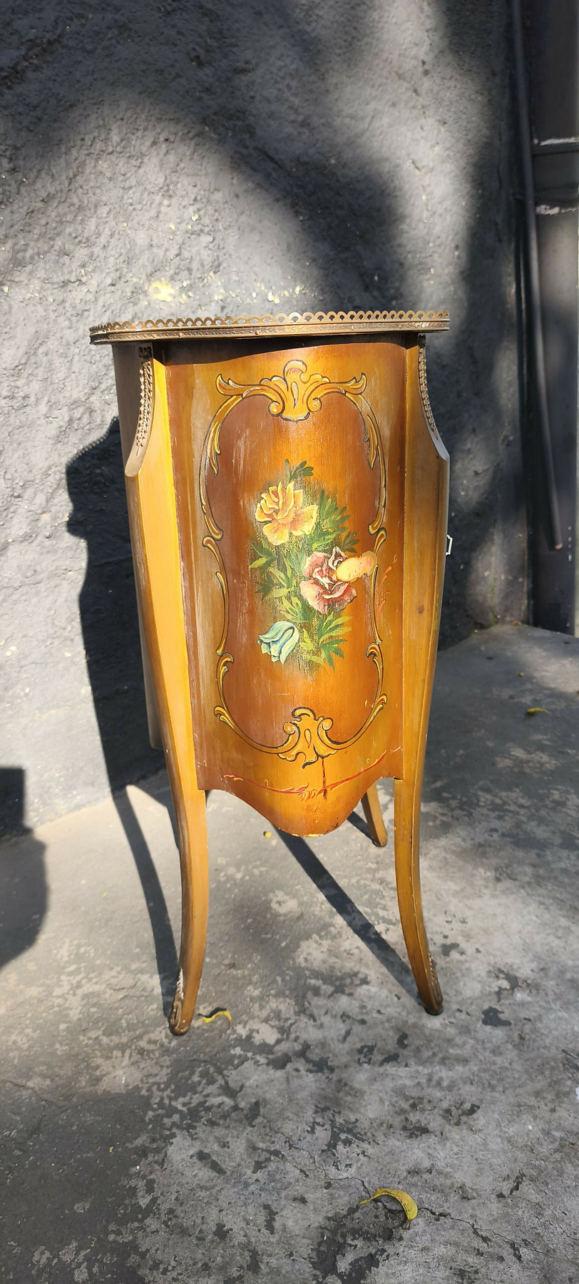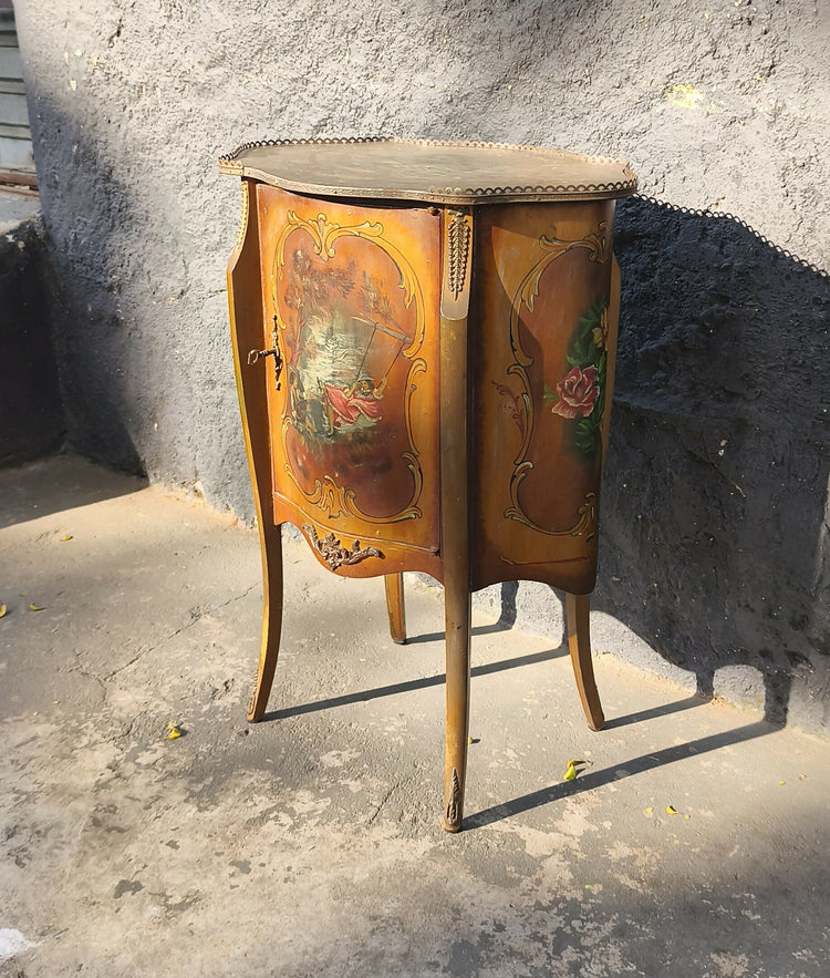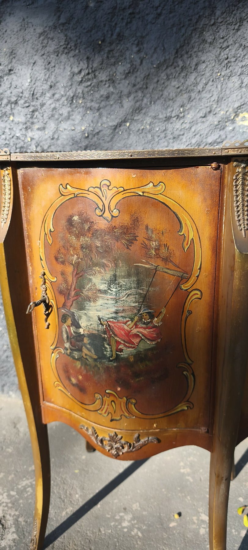 Belíssimo Móvel original Francês do final do Século XIX, com belas pinturas feitas a mão com algumas marcas do tempo e madeira em bom estado, ainda com apliques e ferragens em bronze originais, medindo 74 de altura, 55 de largura e 37 de profundidade.