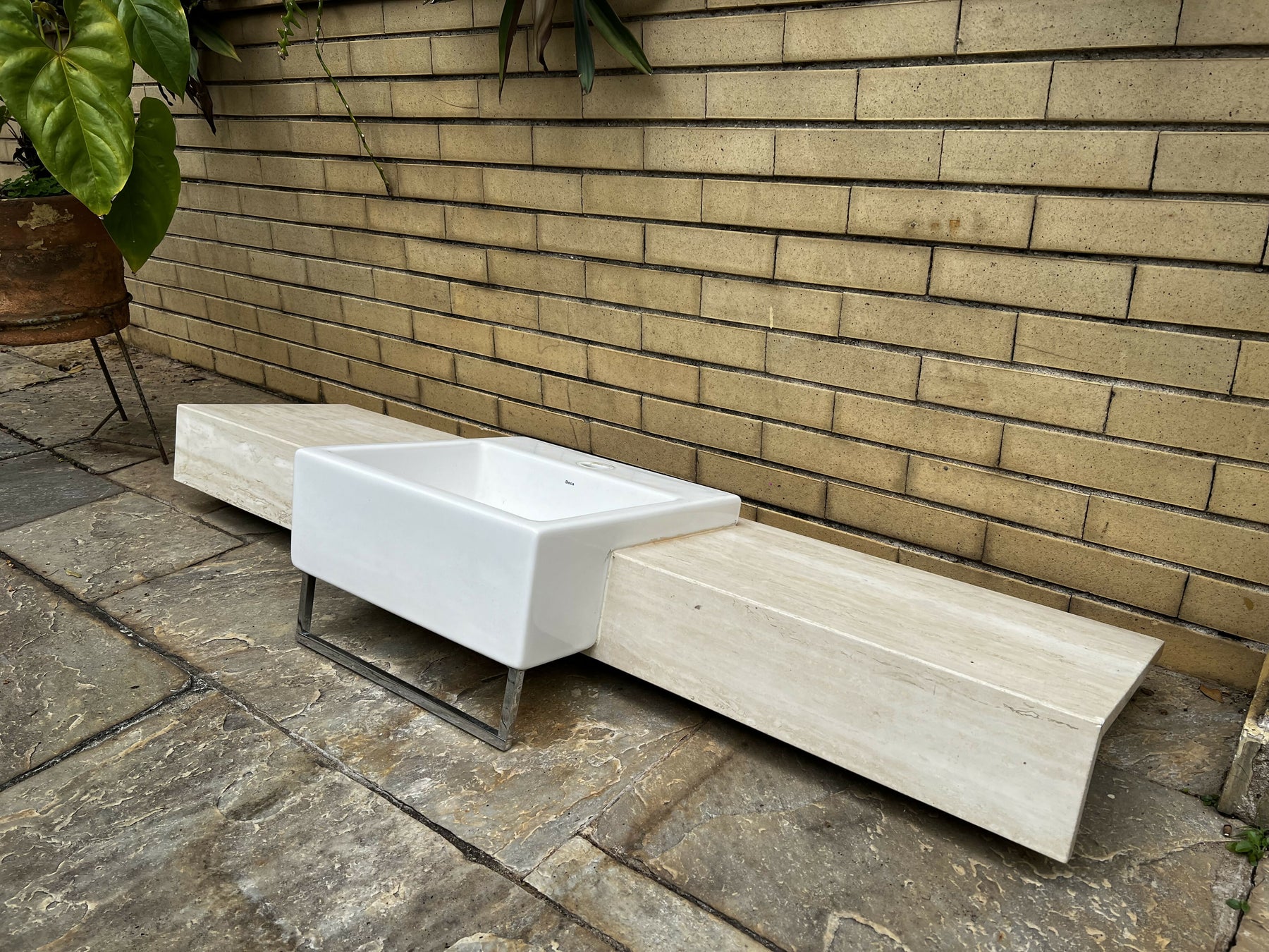 Bancada Travertino Navona com cuba semi-encaixe DECA