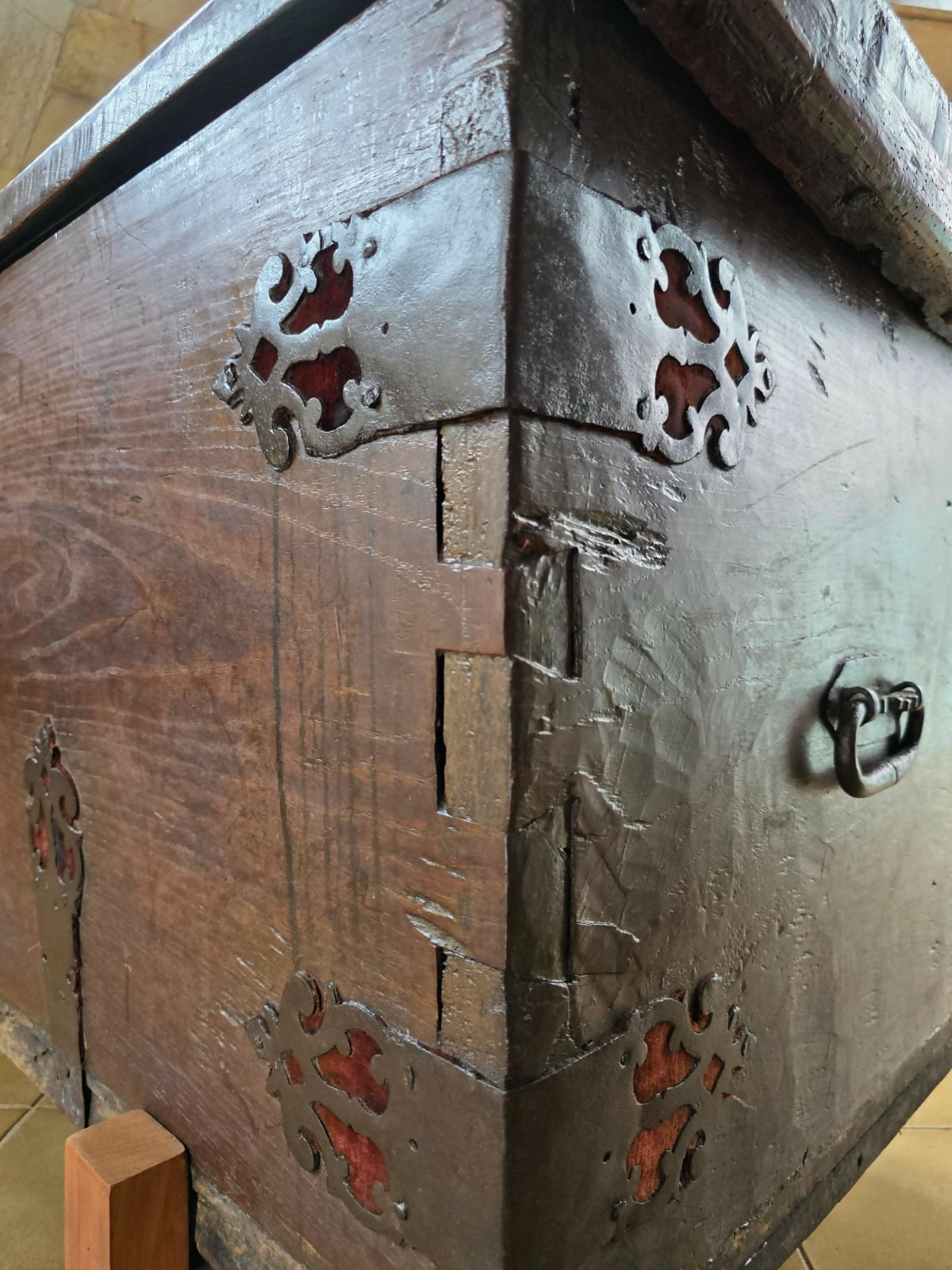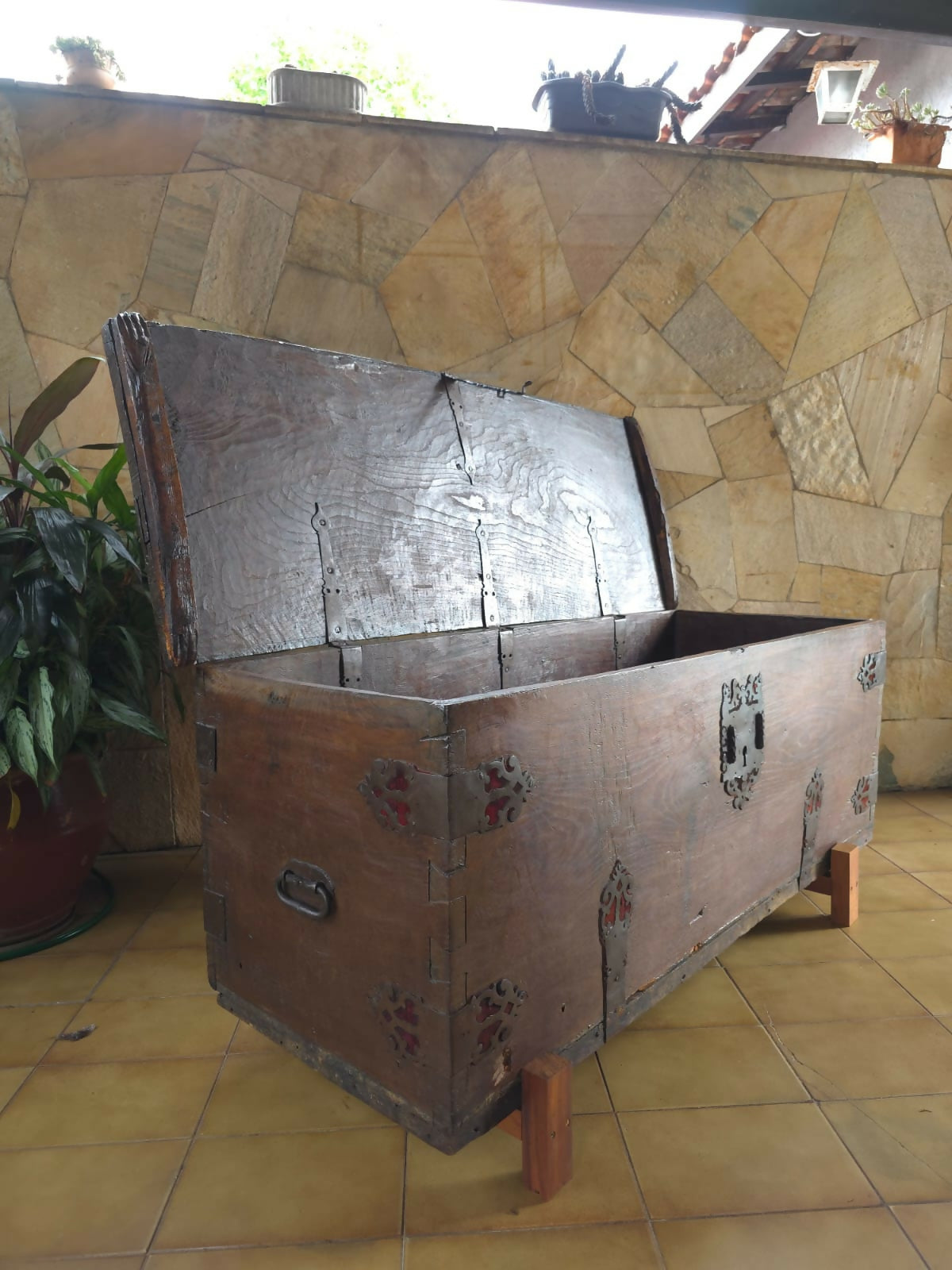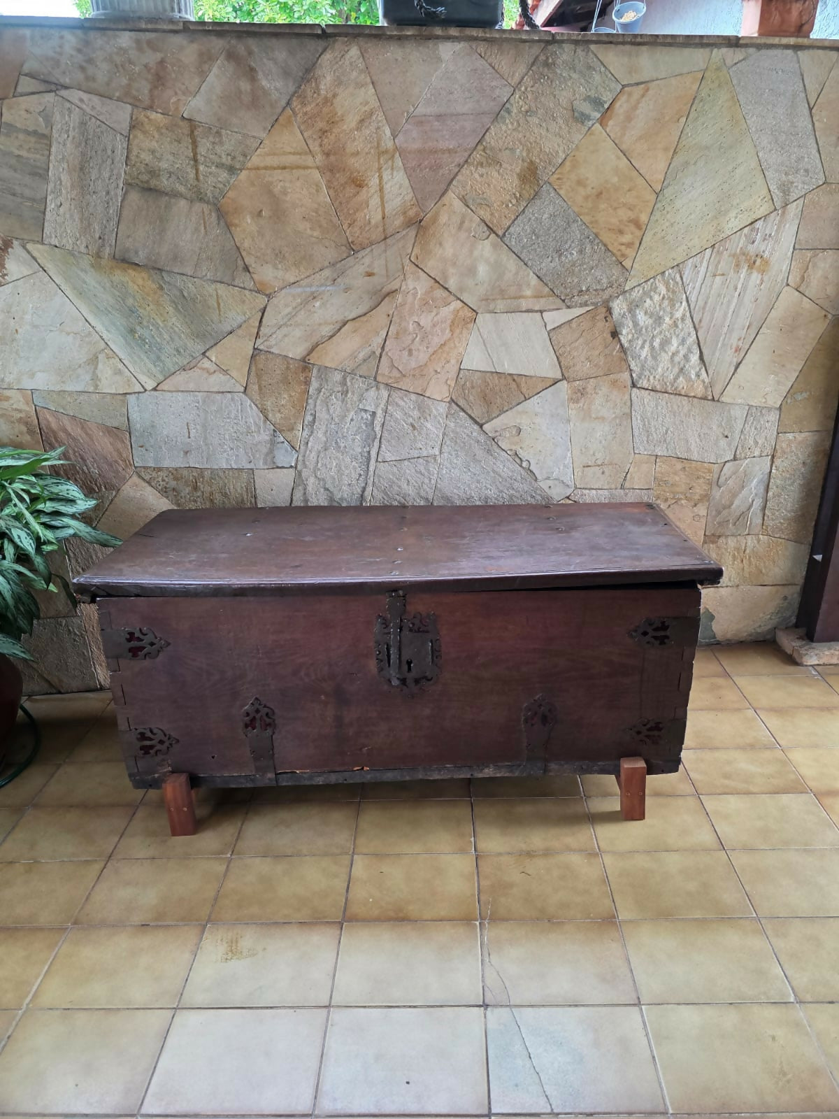 Maletado, com ferragens originais e o charme rústico cuidadosamente preservado. Uma peça histórica, rica em autenticidade, ideal para quem aprecia móveis com alma