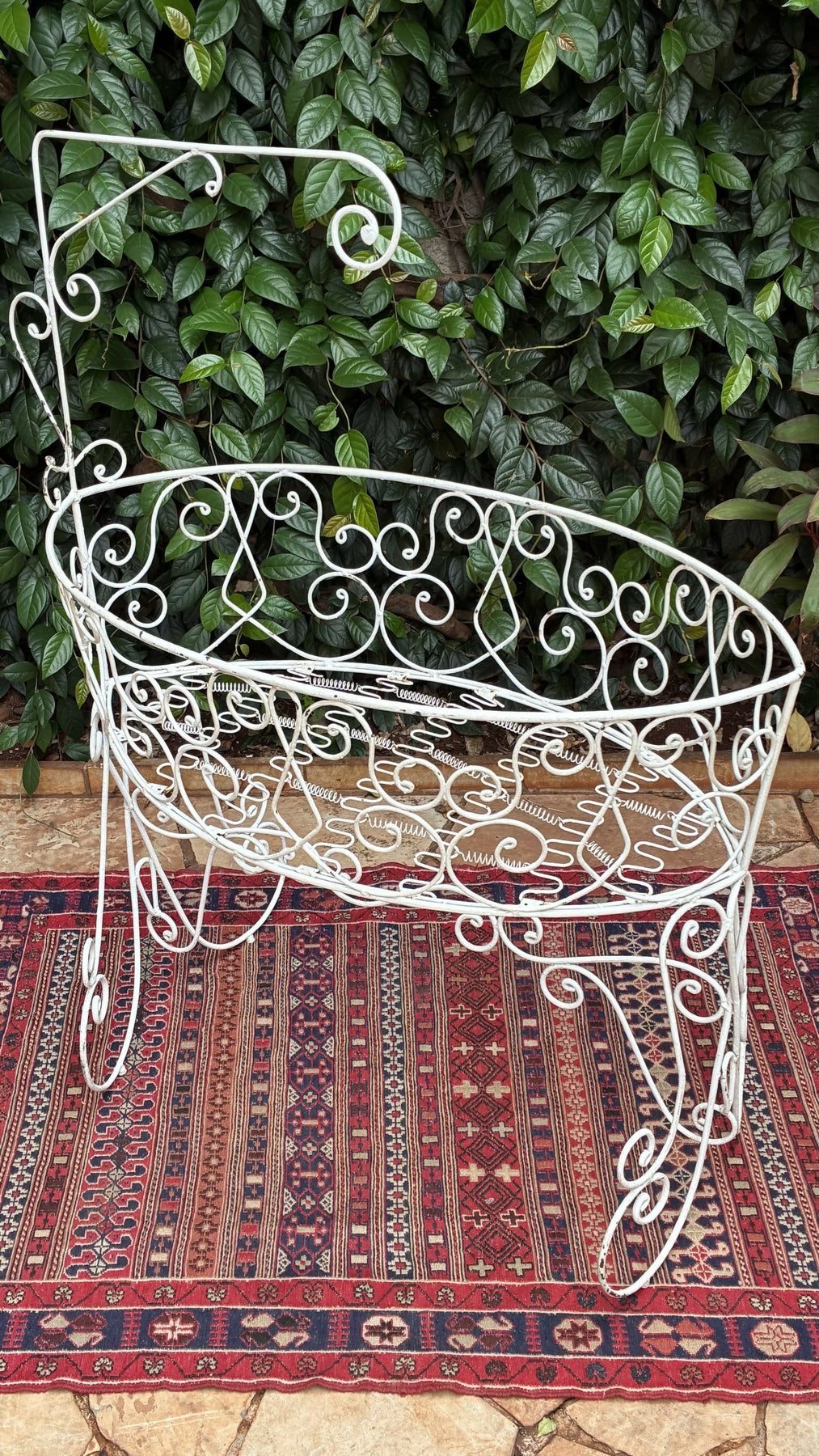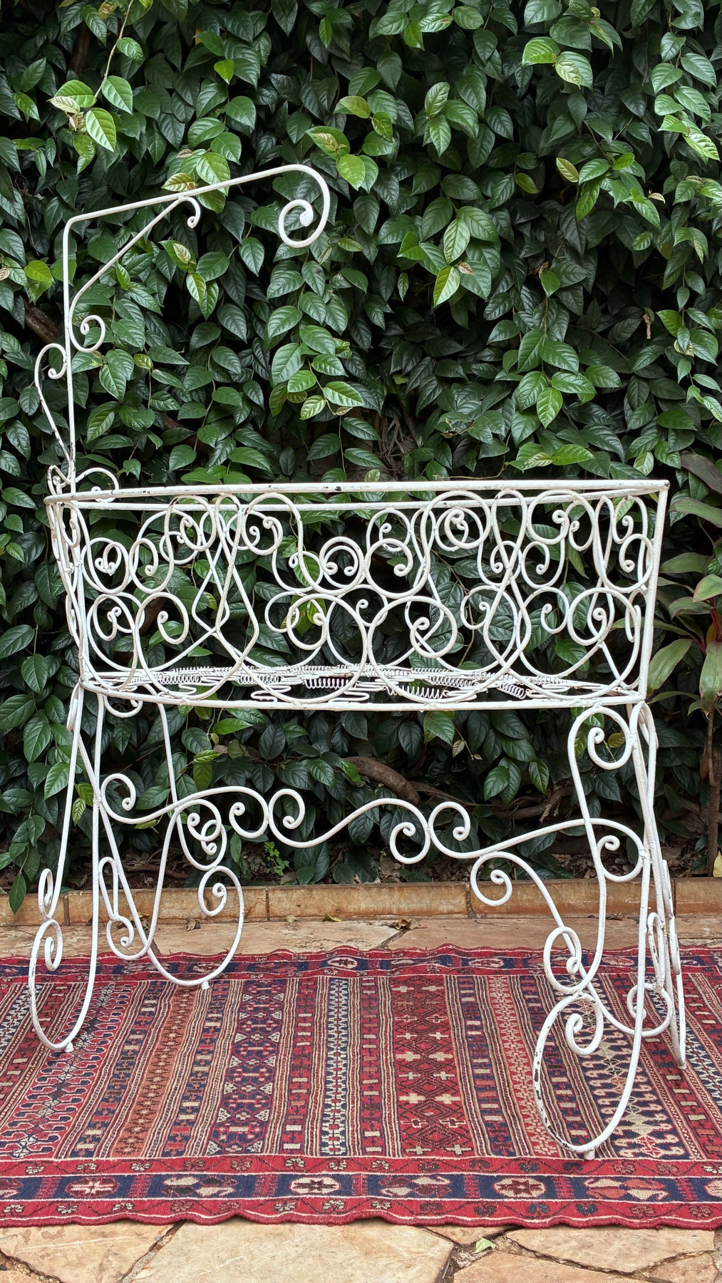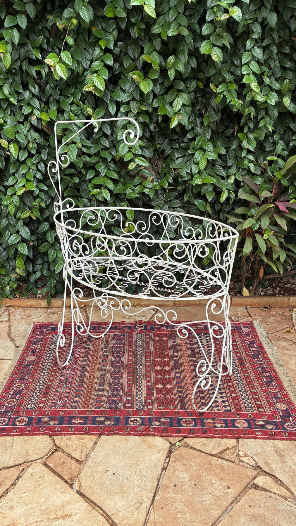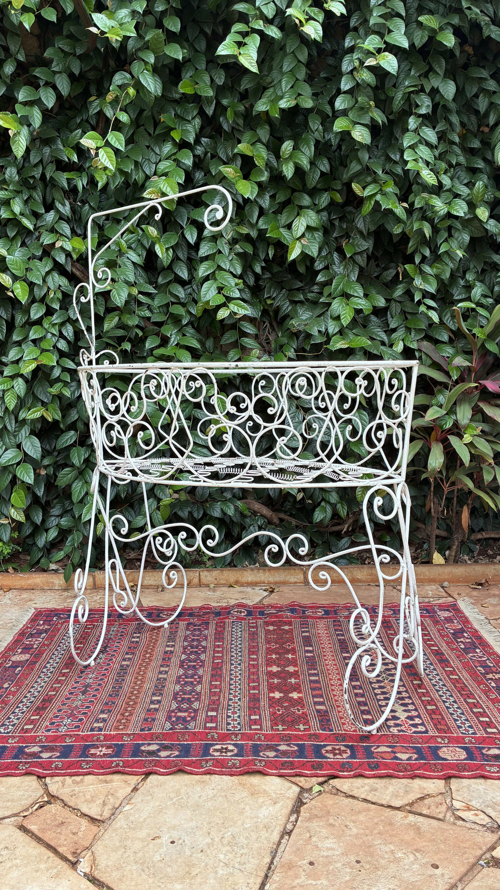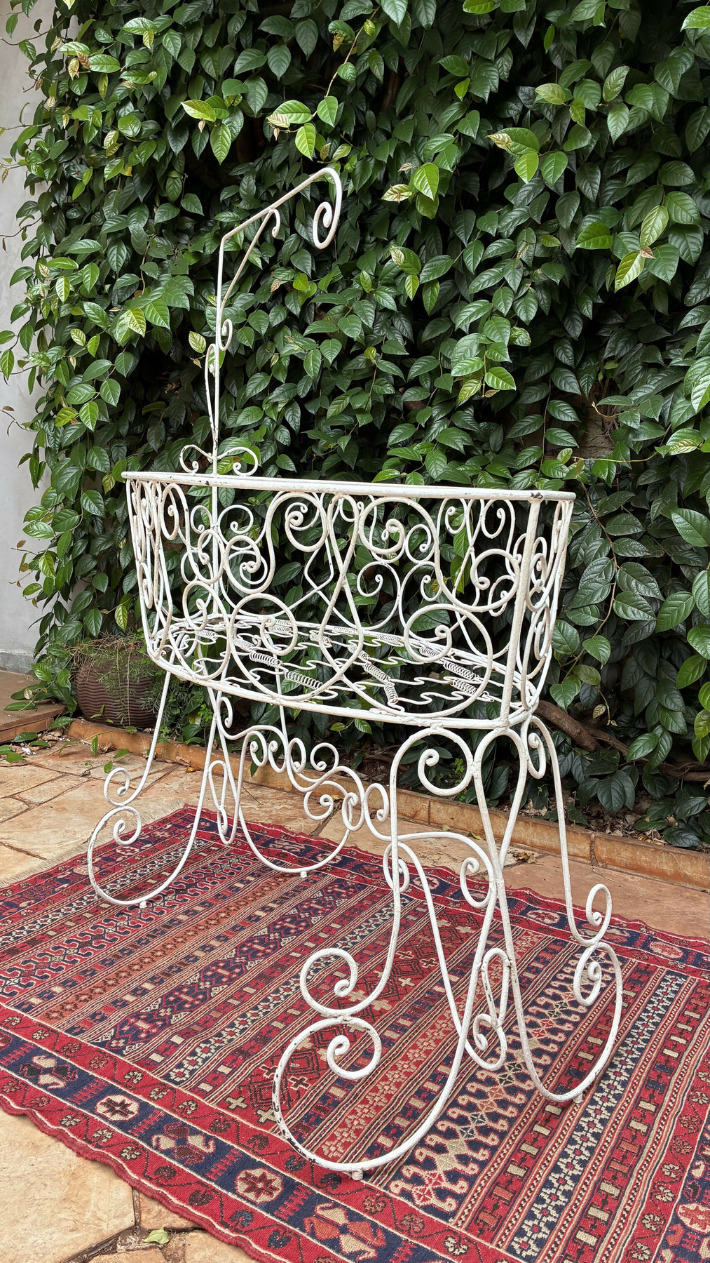 berço em ferro com delicados arabescos. Peça de estilo vintage, ideal para decoração ou uso como floreira. Um toque romântico e elegante para qualquer ambiente.
