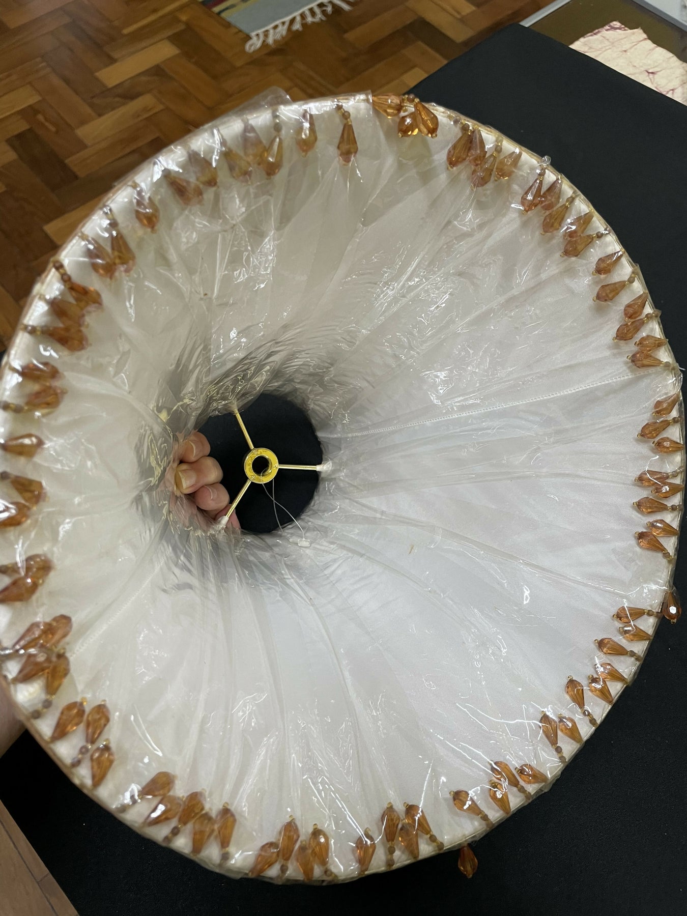 Cúpulas de abajur em tecido com pingentes em tom bege/marrom , Made um Índia