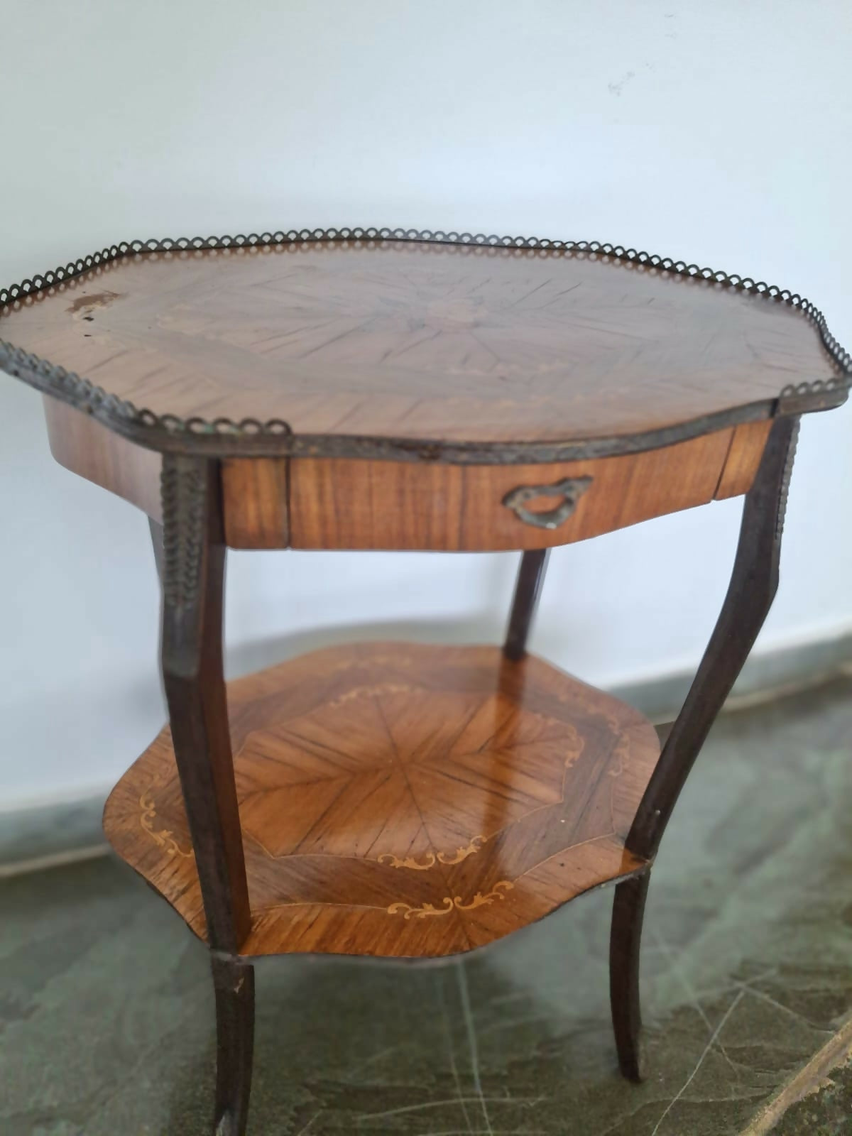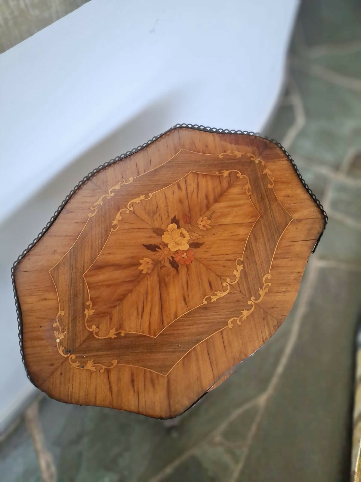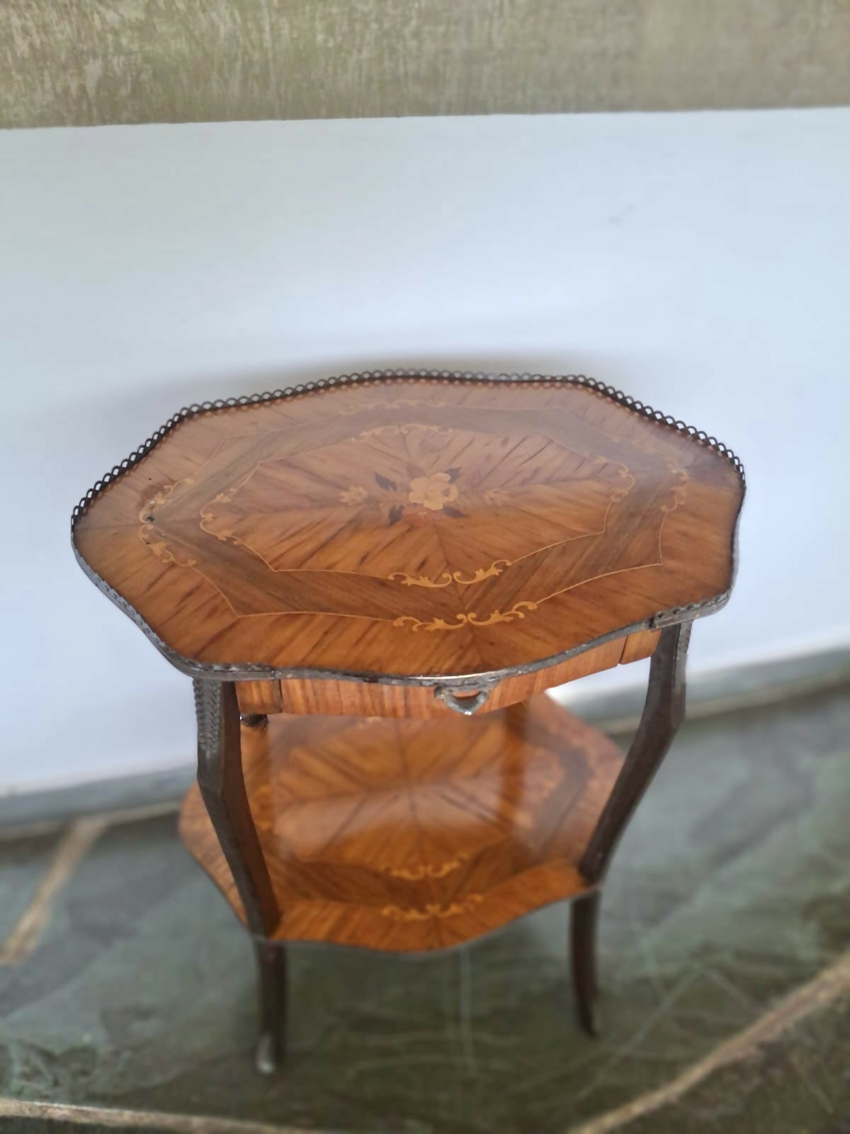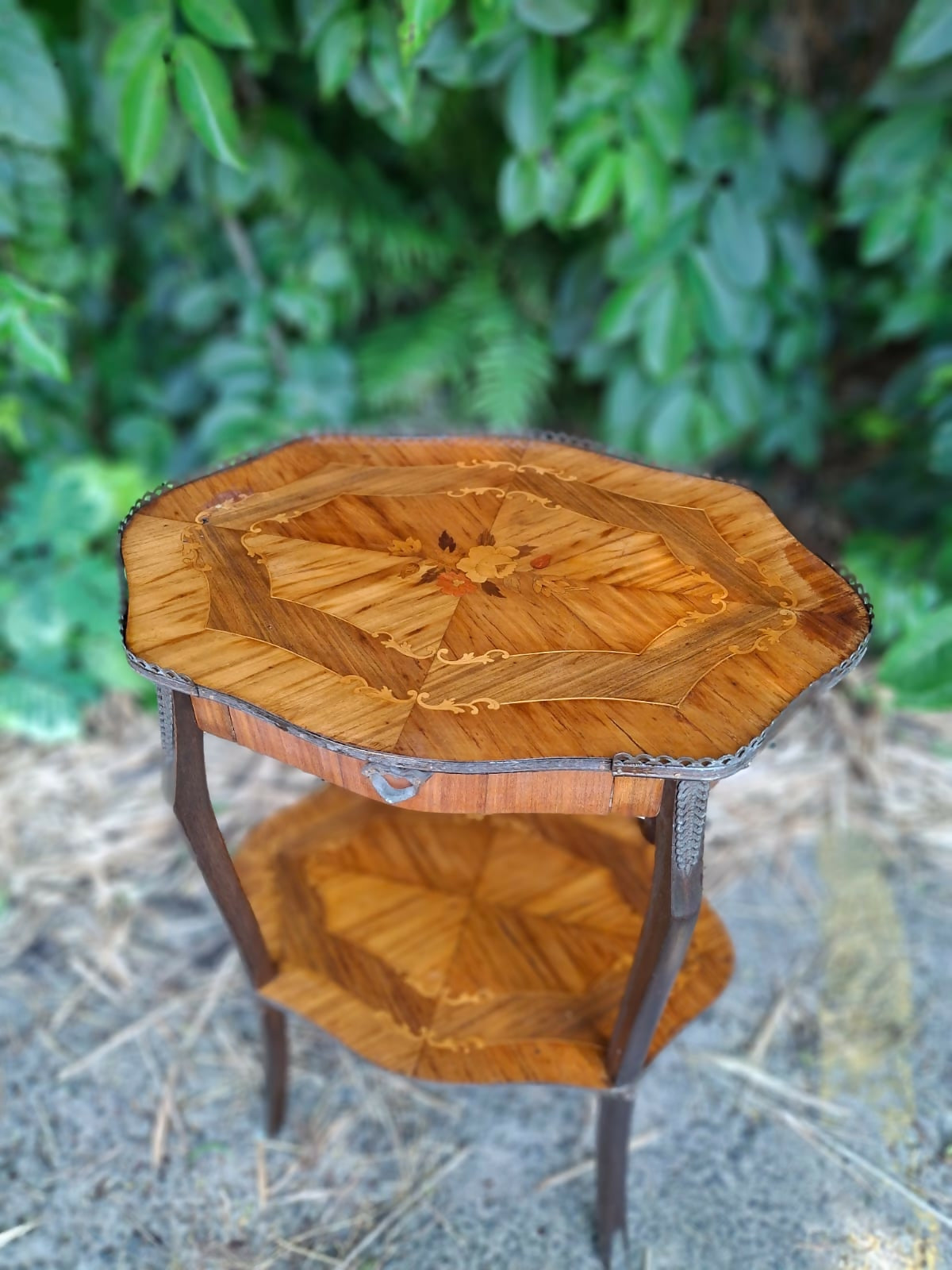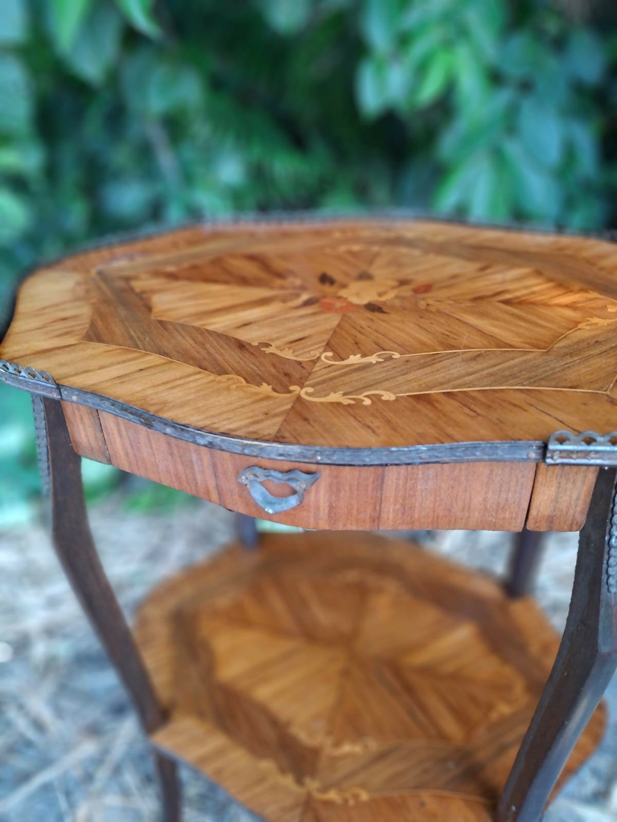 Belíssima mesinha lateral italiana em marchetaria