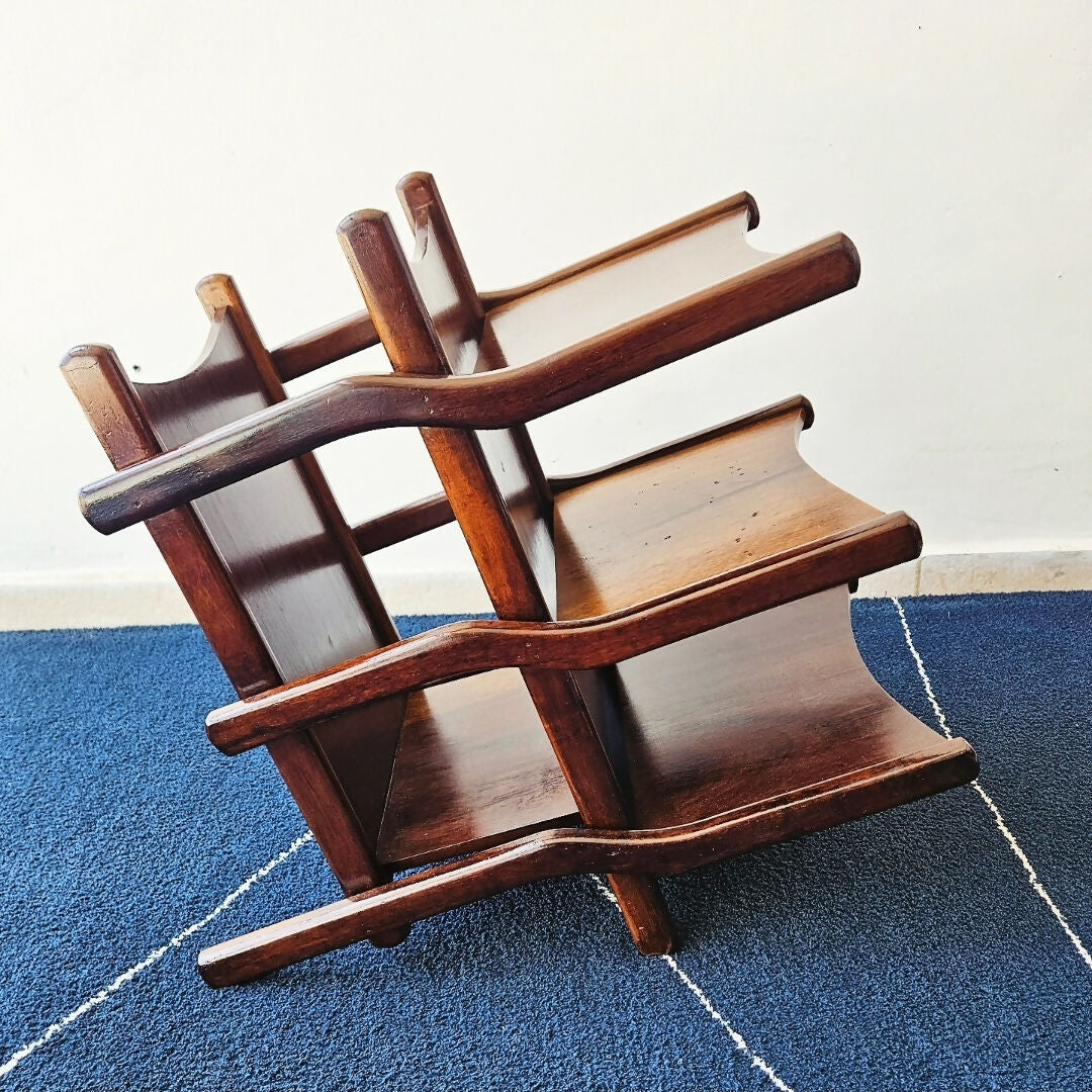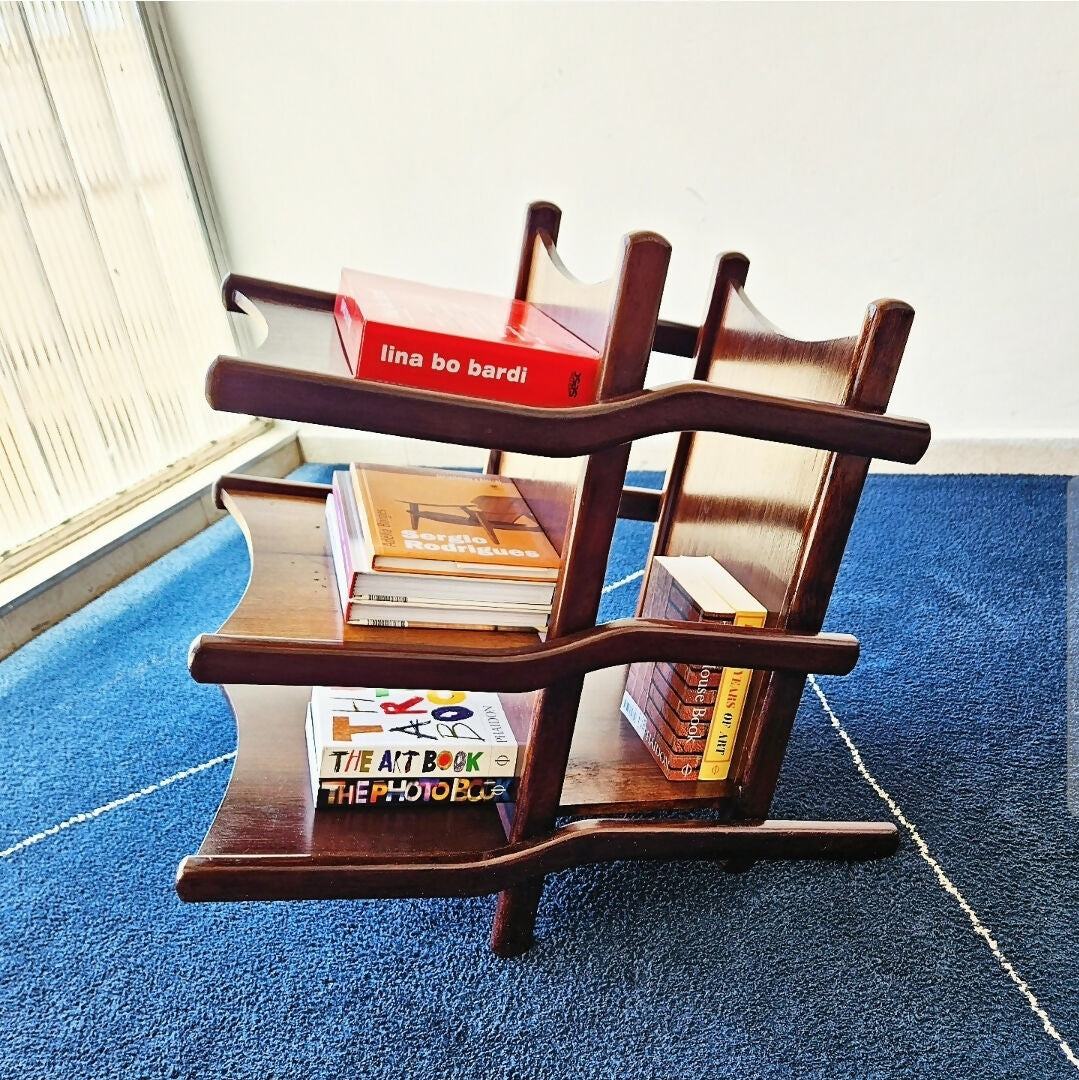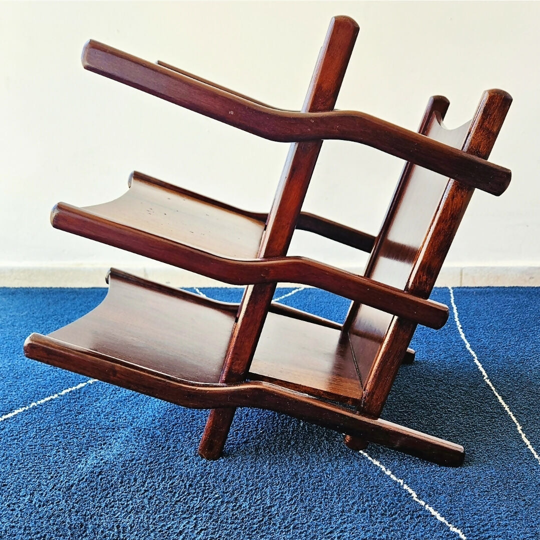 Elegante móvel revisteiro em ímbuia e jacarandá  que reflete o refinamento do mobiliário moderno brasileiro produzido nos anos 60.