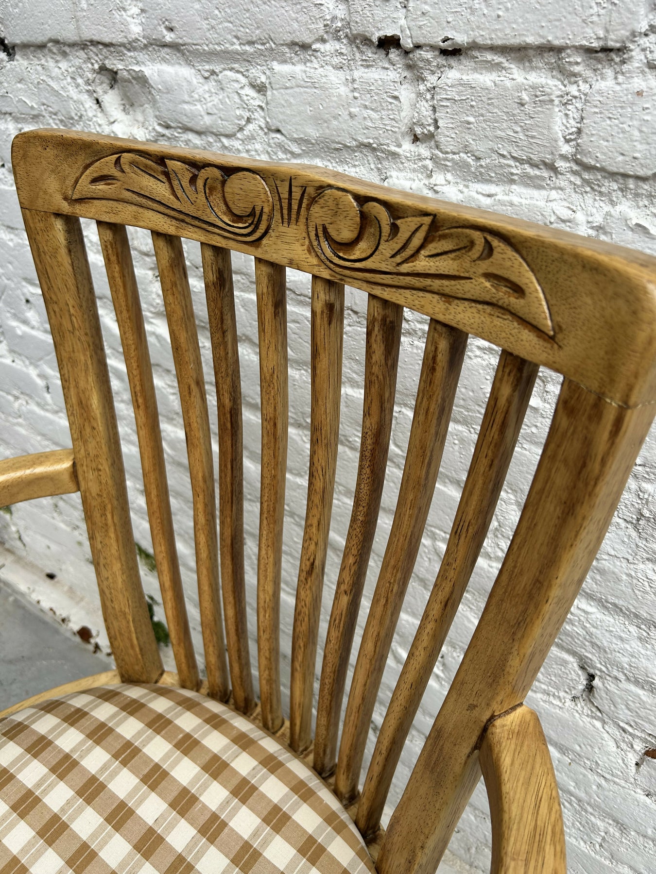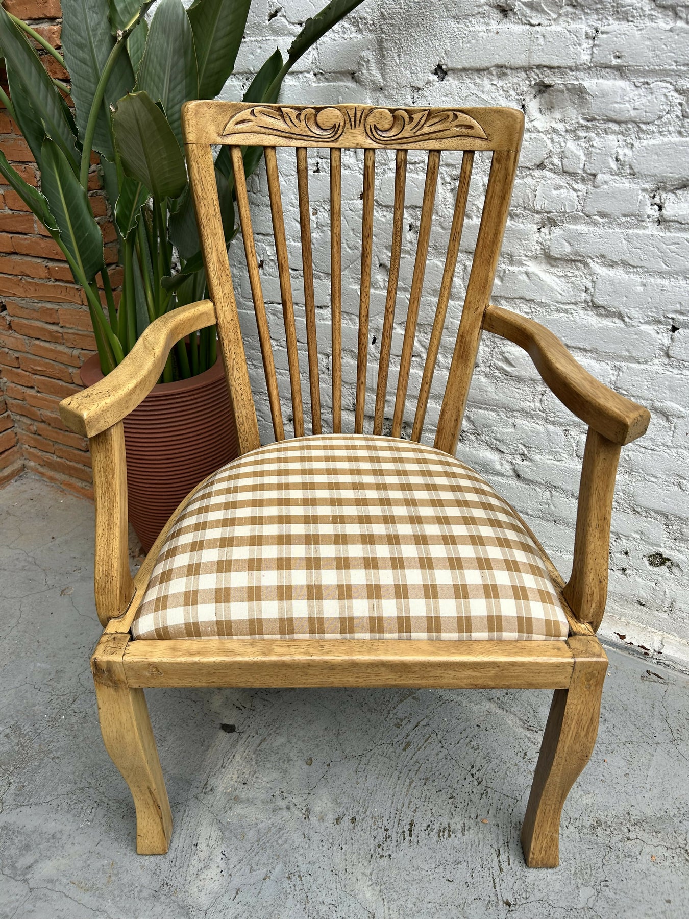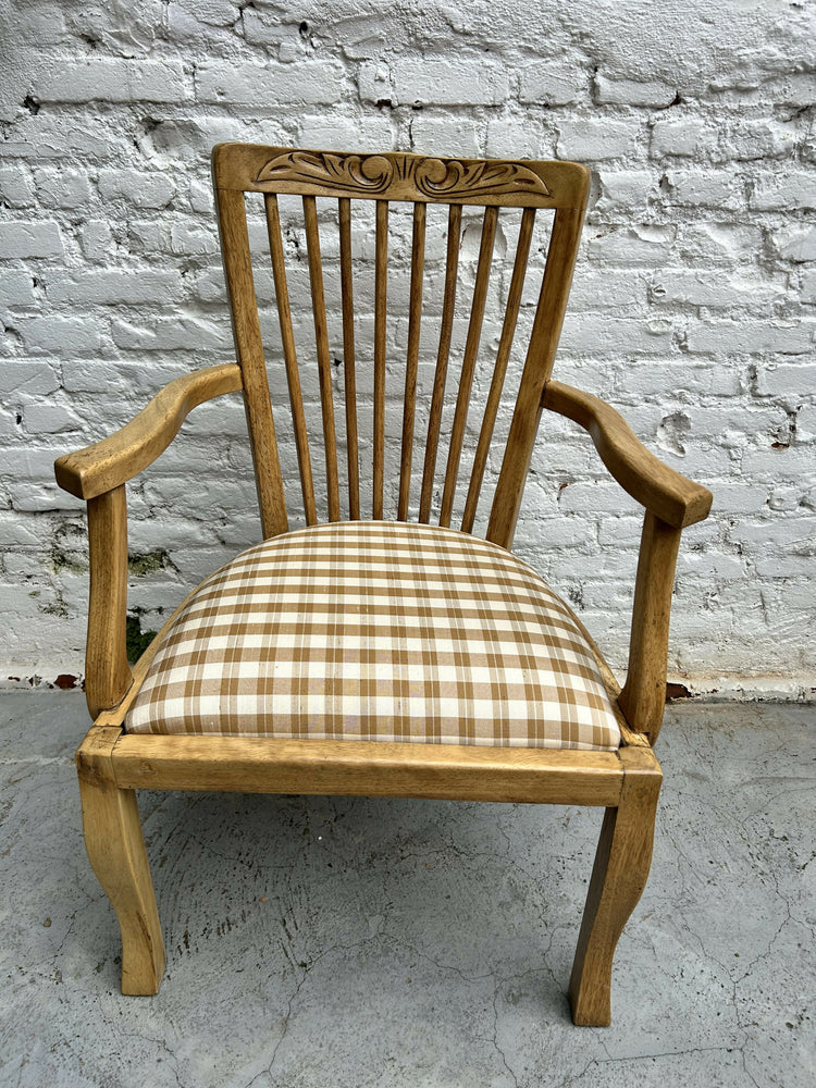 Antiga Cadeira com braço restaurada em madeira e tecido xadrez Donatelli