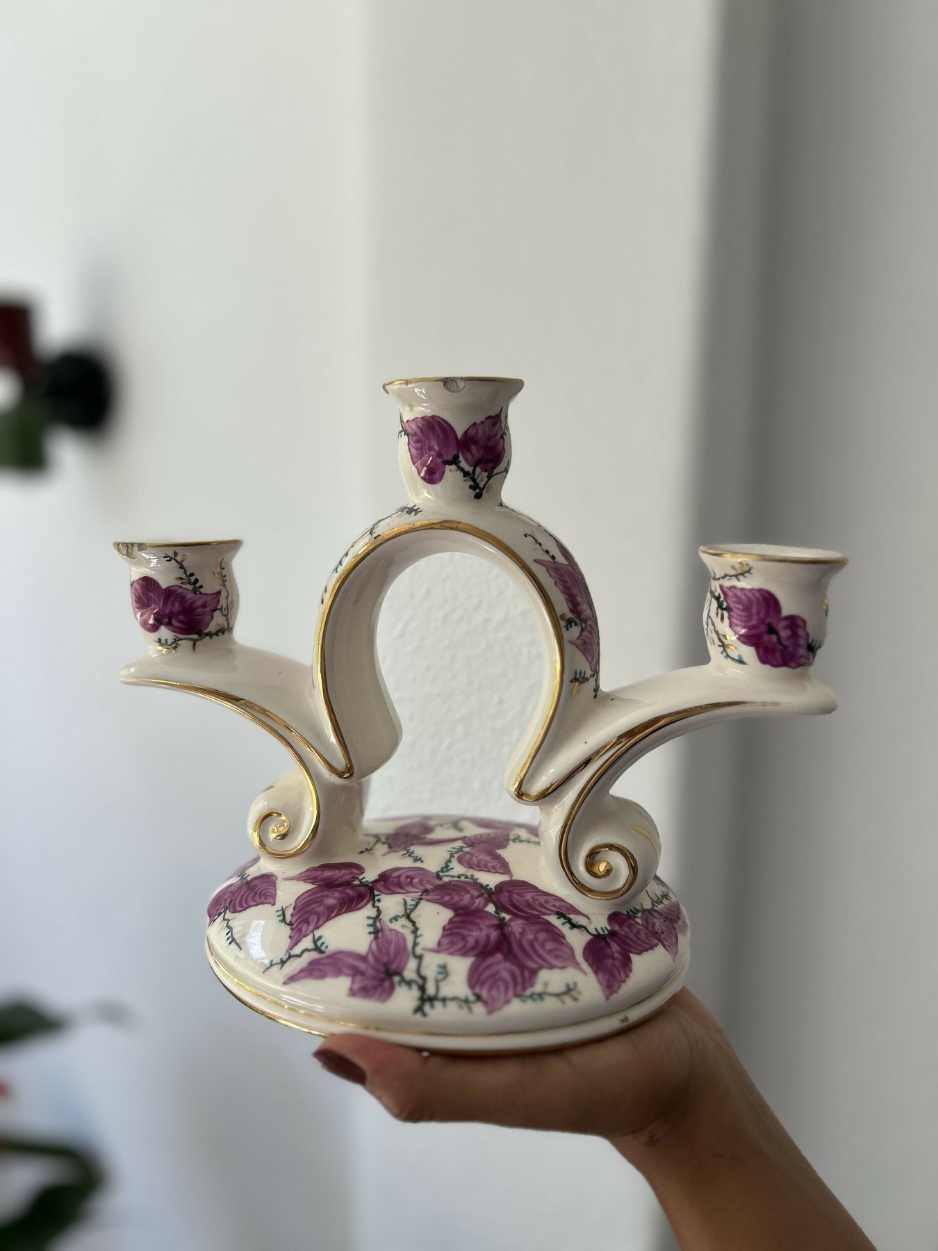 Castiçal Triplo Weiss Pintado à Mão – Uma peça única que une arte e funcionalidade!