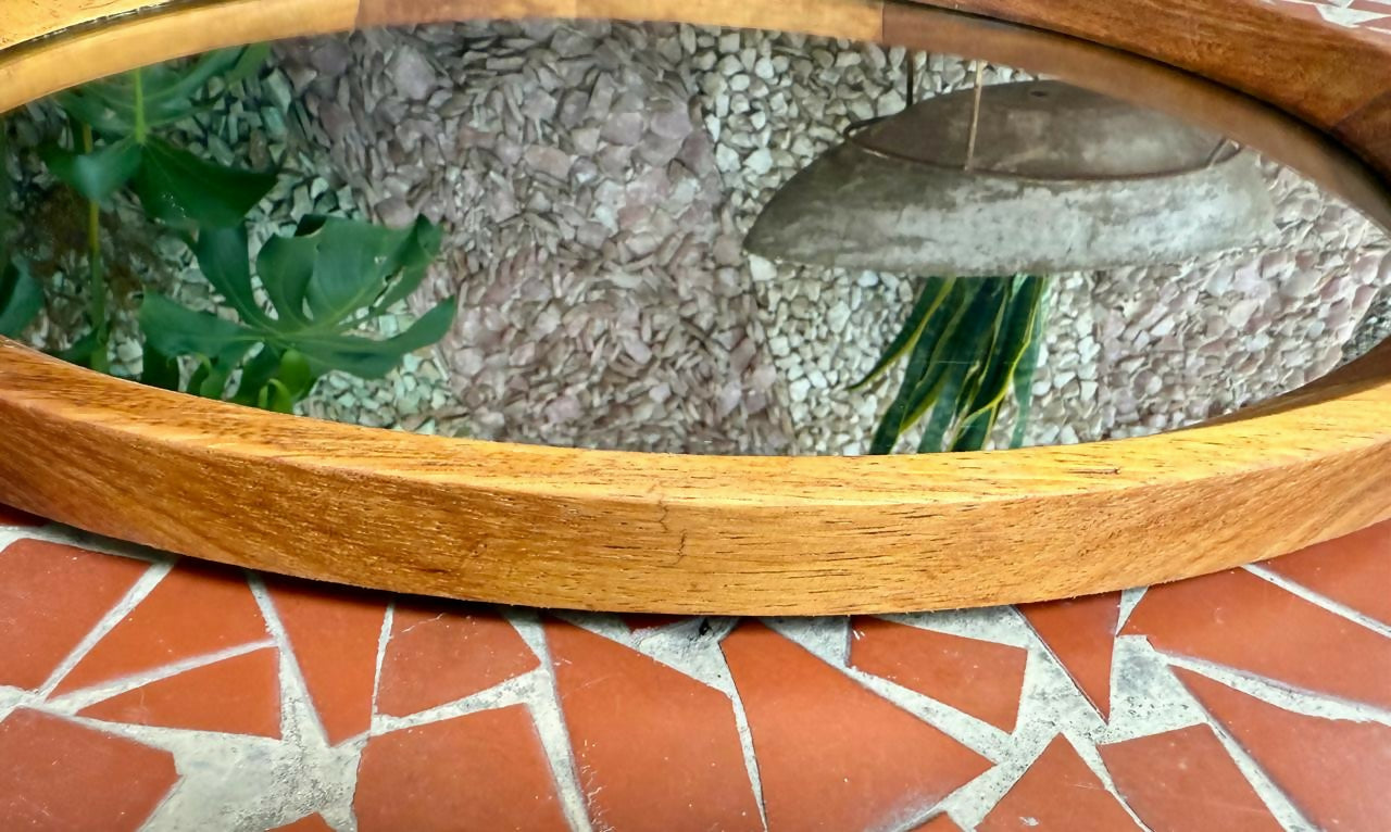 Linda espelho oval em madeira nobre, peça vintage!