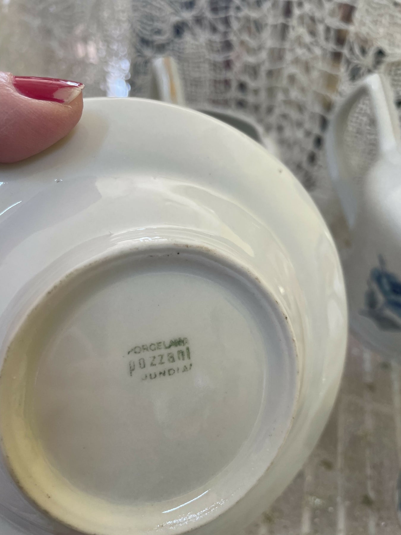 Jogo de chá ou para café Pozzanni Jundiaí, branco com flor azul em perfeito estado de conservação