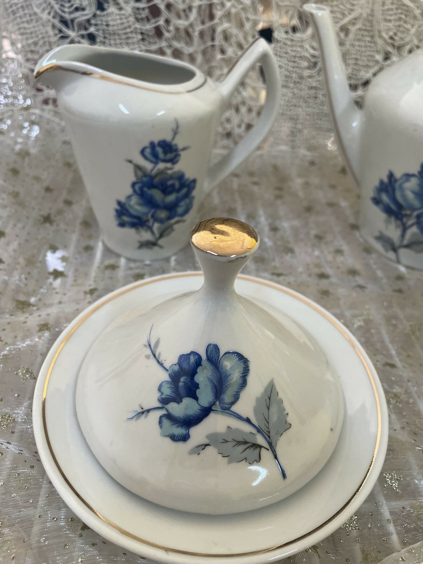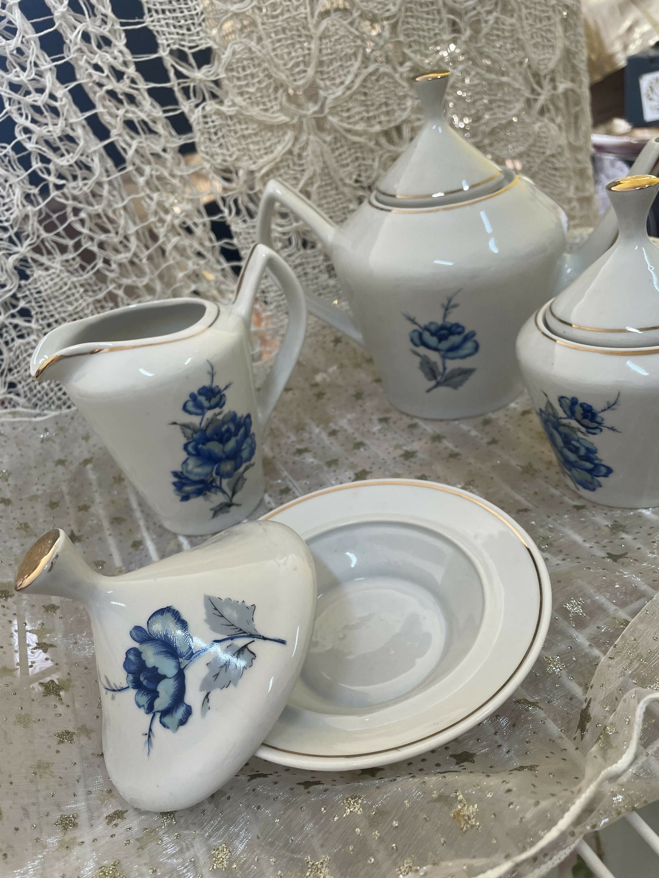 Faz parte : Bule, cremeira, açucareiro e manteigueira.