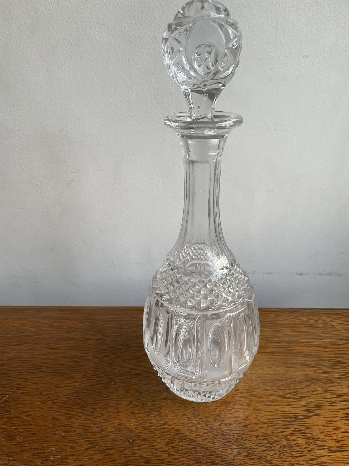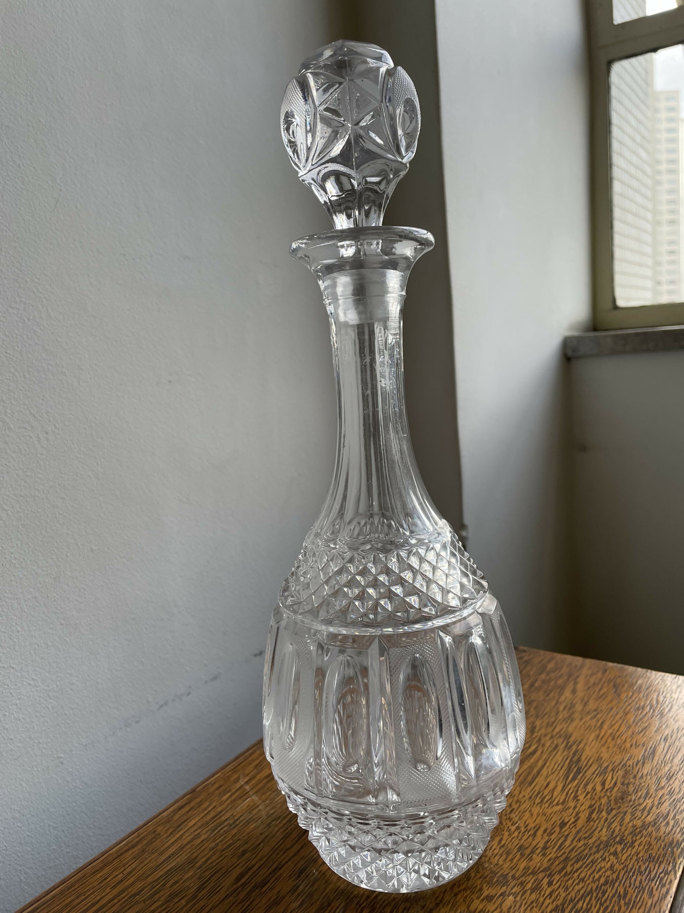 Apresenta um design detalhado, com gargalo esguio e bojo ricamente moldado com formas losangulares e fundo canelado.